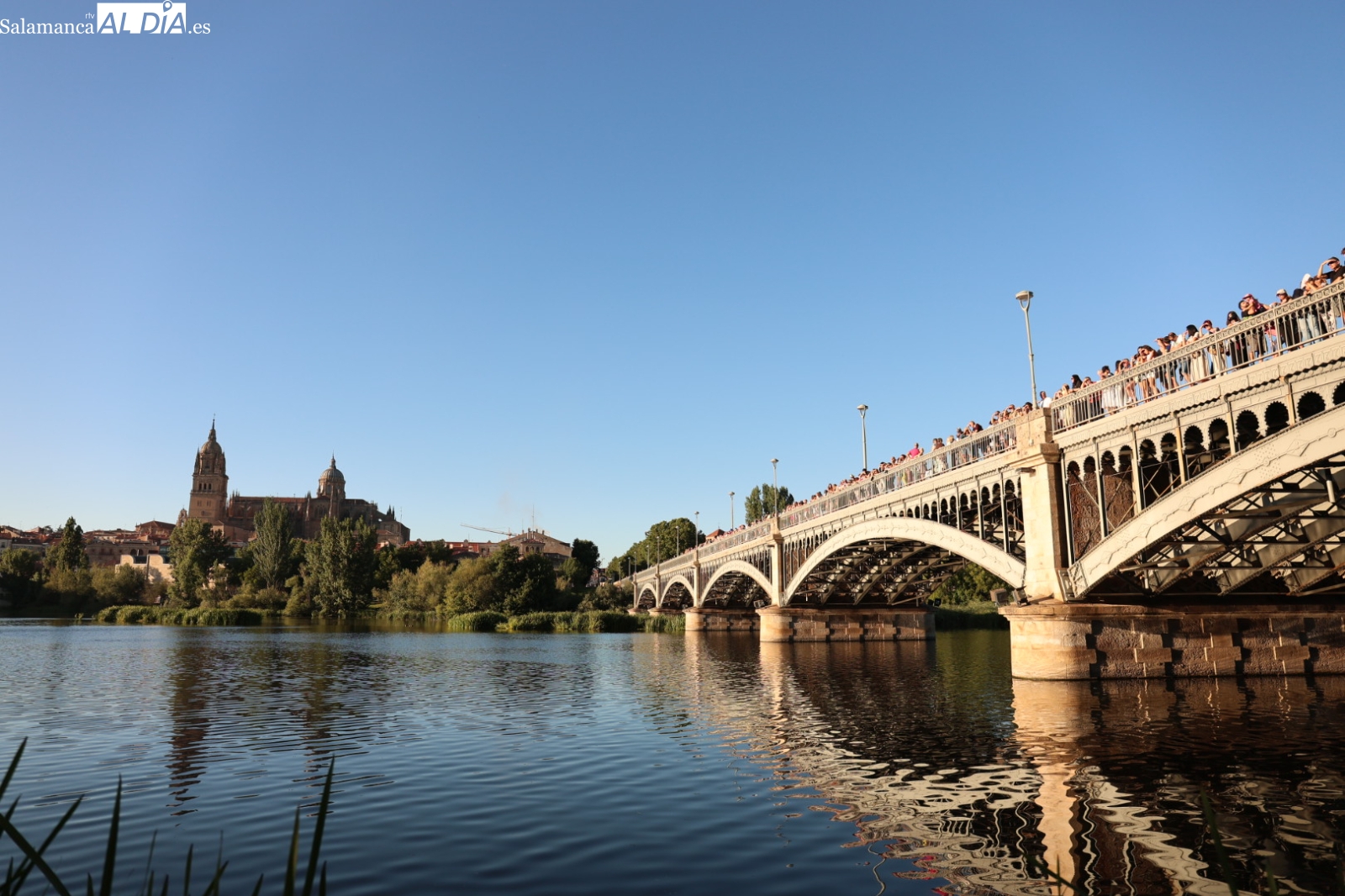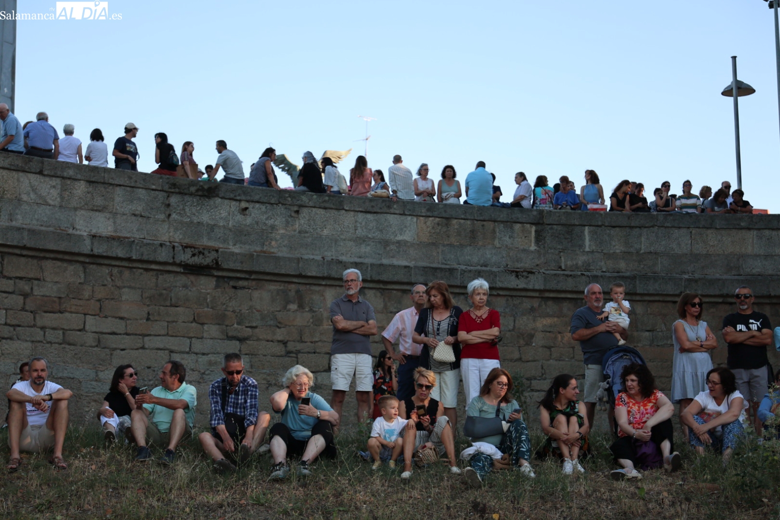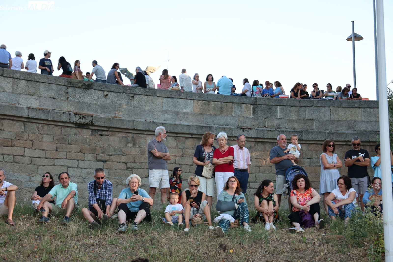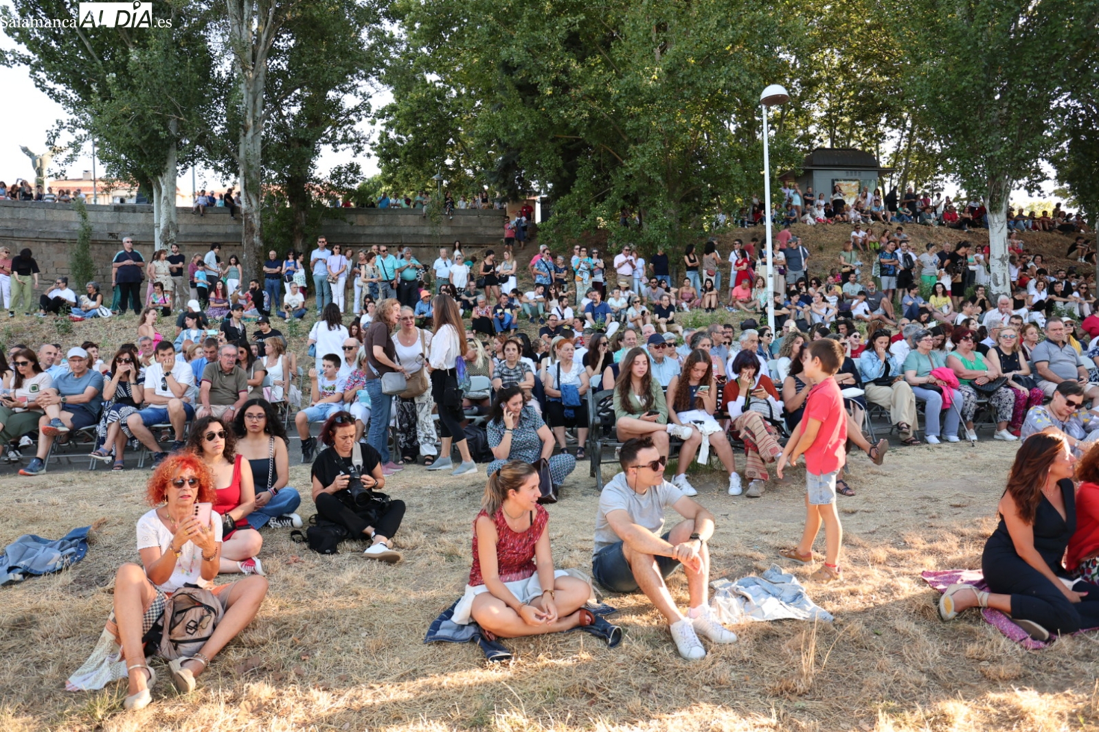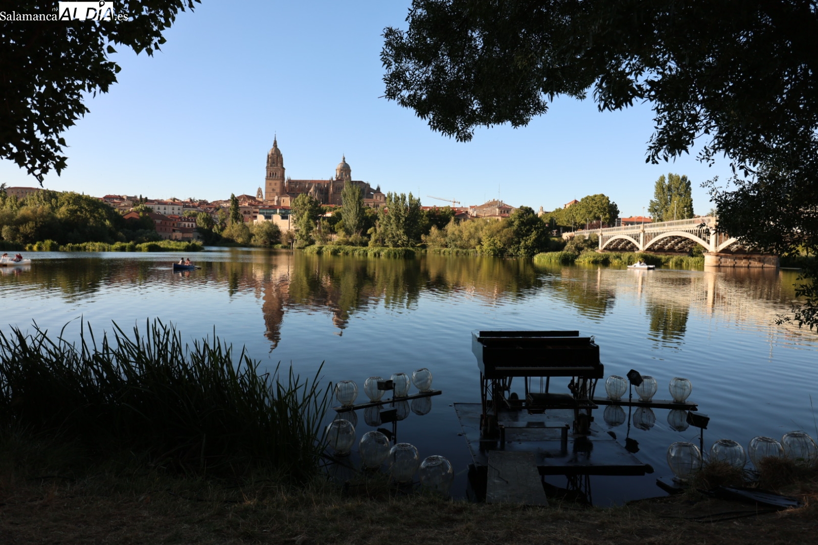 El río Tormes se ha convertido este viernes, 25 de julio, en un escenario mágico con la primera de las dos representaciones del espectáculo ‘Pedalopiano. A fleur d’eau. El Piano Flotante’. Numerosos salmantinos y visitantes se han congregado en las orillas del Paseo del Progreso para presenciar una de las citas de la programación cultural de Salamanca Plazas y Patios.