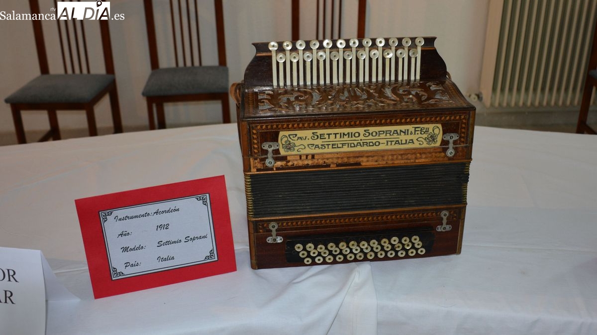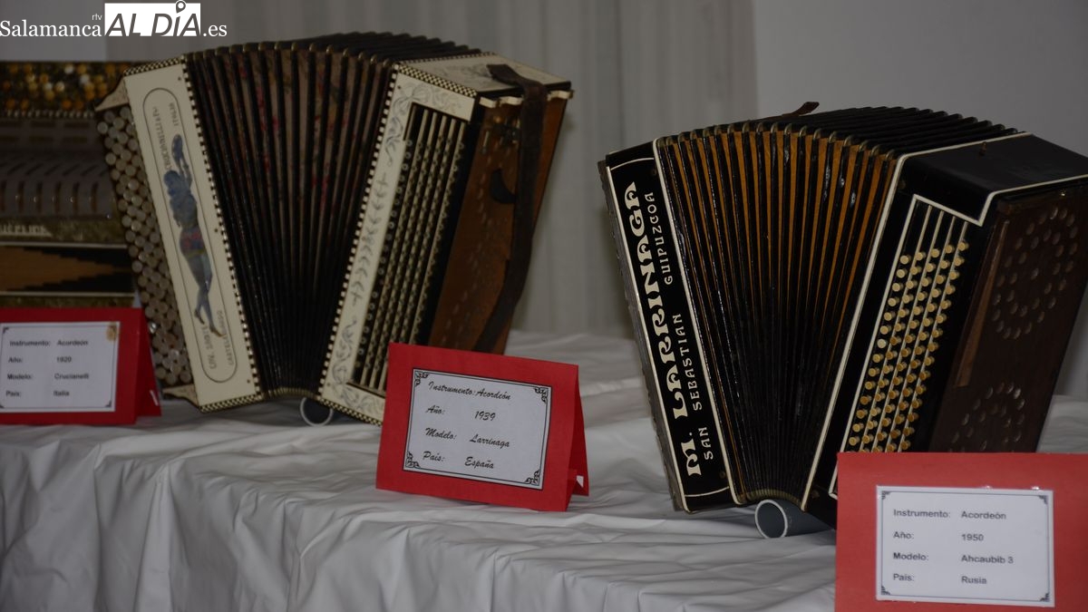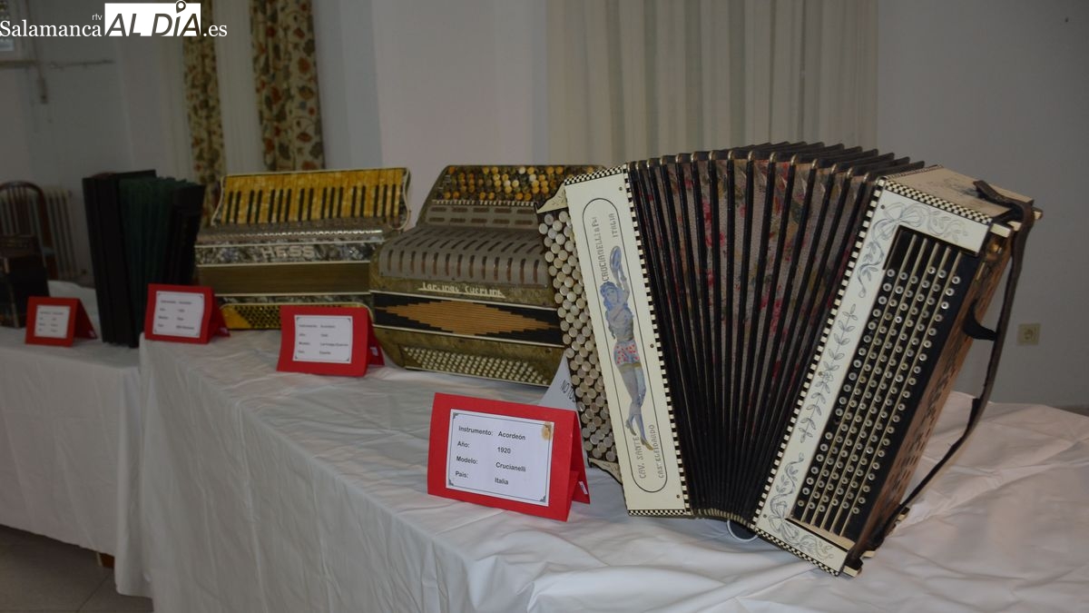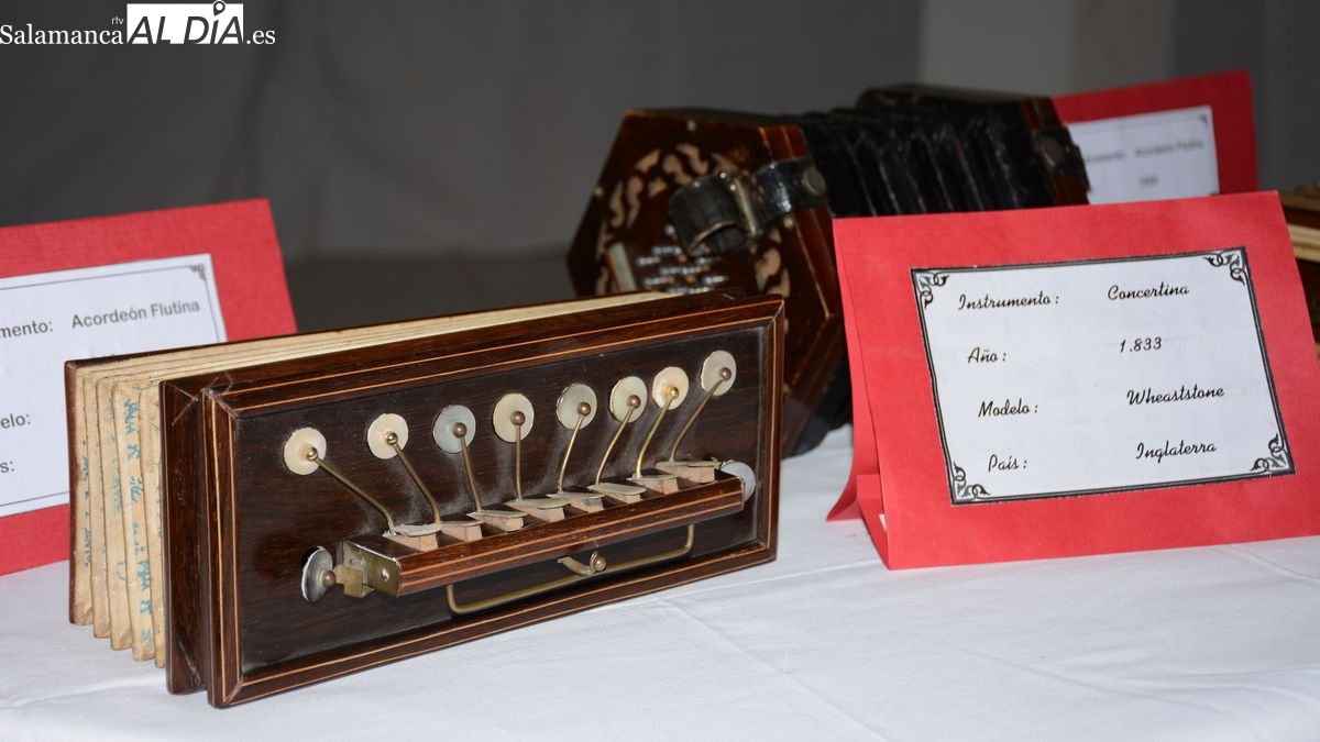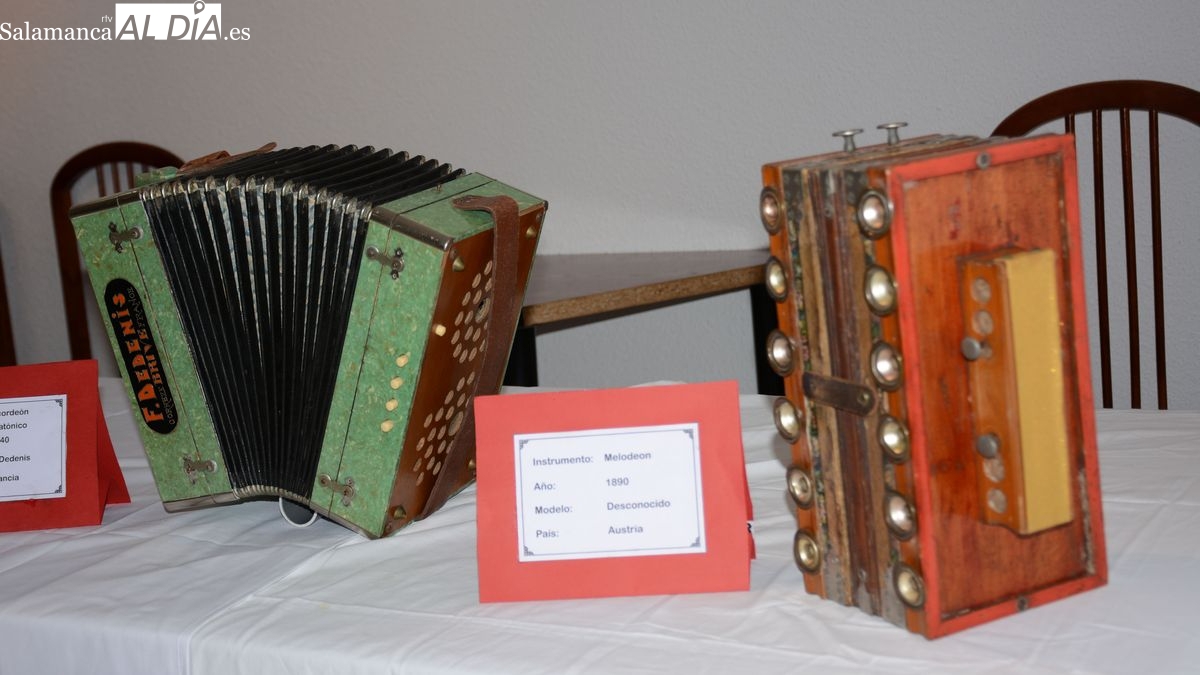 En este sentido, Santano, Tinín, el acordeonista de La Fregeneda, aprovechó la invitación de la Concejalía de Cultura del Ayuntamiento de Lumbrales a participar en una velada musical para ofrecer al público la exposición de 60 de sus acordeones, instrumentos de distintas épocas, procedencia y modalidad, que ha ido reuniendo a lo largo de su vida. En esta magnifica colección, montada en la planta baja del hogar del jubilado, se podían contemplar una concertina de 1833, originaria de Inglaterra y dos acordeones flutina (precursor del acordeón) de 1840 y 1850, fabricados en Austria. El acordeón fue creado en Viena en 1829 por Cyrill Demian, quien se dedicaba a fabricar pianos y órganos, y que presentó en Viena un pequeño nuevo aparato de apenas 22 centímetros de ancho por 9 de alto y 6 de grosor.