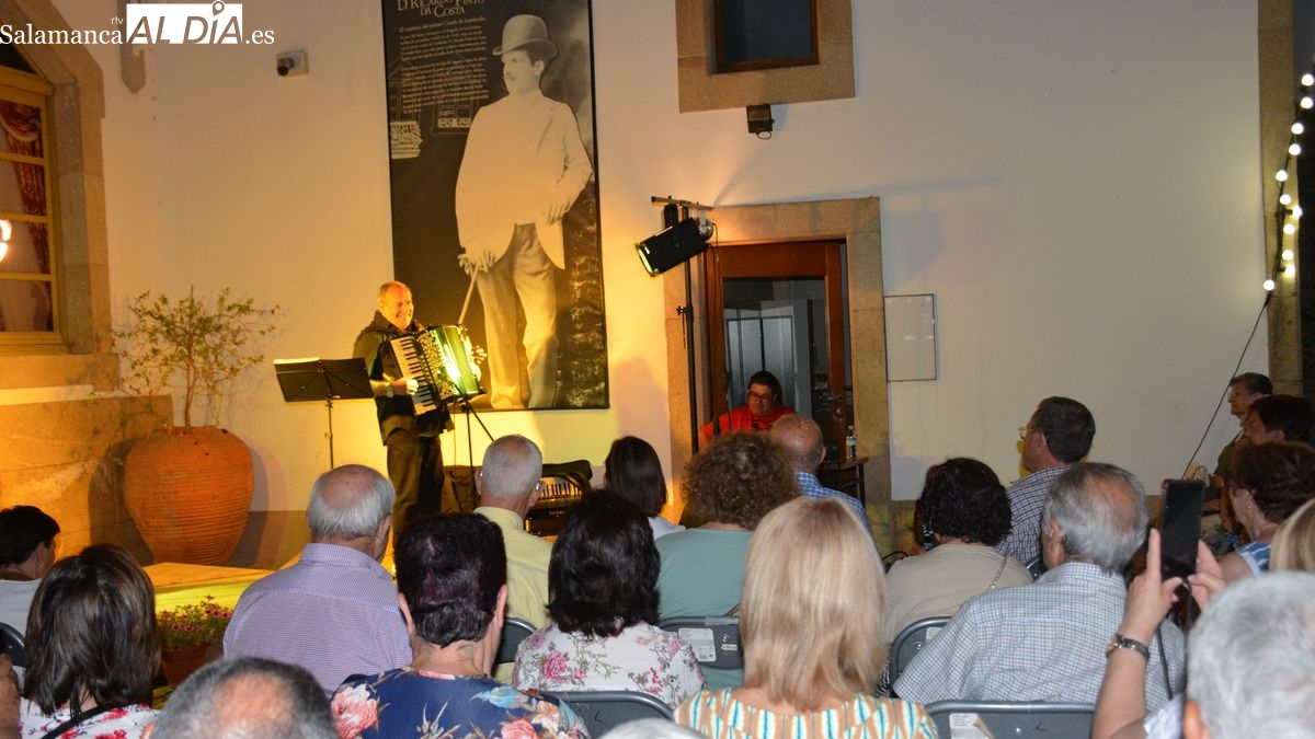 La jornada cultural protagonizada por el acordeón tuvo como colofón el gran concierto que Tinin Santano ofreció en el patio de la Casa de los Condes. A lo largo de más de hora y media tocó un amplio repertorio de temas populares, desde las canciones que habitualmente tocan y cantan las tunas a temas del floclore popular español, mejicano, argentino,.... canciones populares de todos los tiempos que fueron coreadas por el público que llenaba el recinto. El acordeonista se metió al público en el bolsillo desde el minuto uno, con su simpatía y alegría y el público le respondió cantando y aplaudiendo cada una de las canciones.