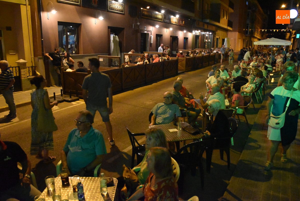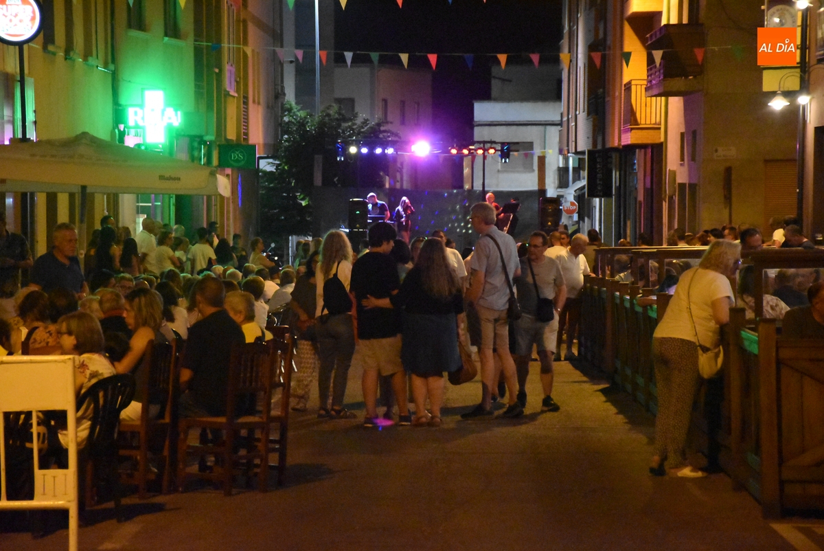 En las inmediaciones de ese escenario se arrancaron a bailar unas cuantas personas, tanto en solitario como en pareja, mientras que otras muchas llenaban las terrazas de los establecimientos de hostelería de la zona.