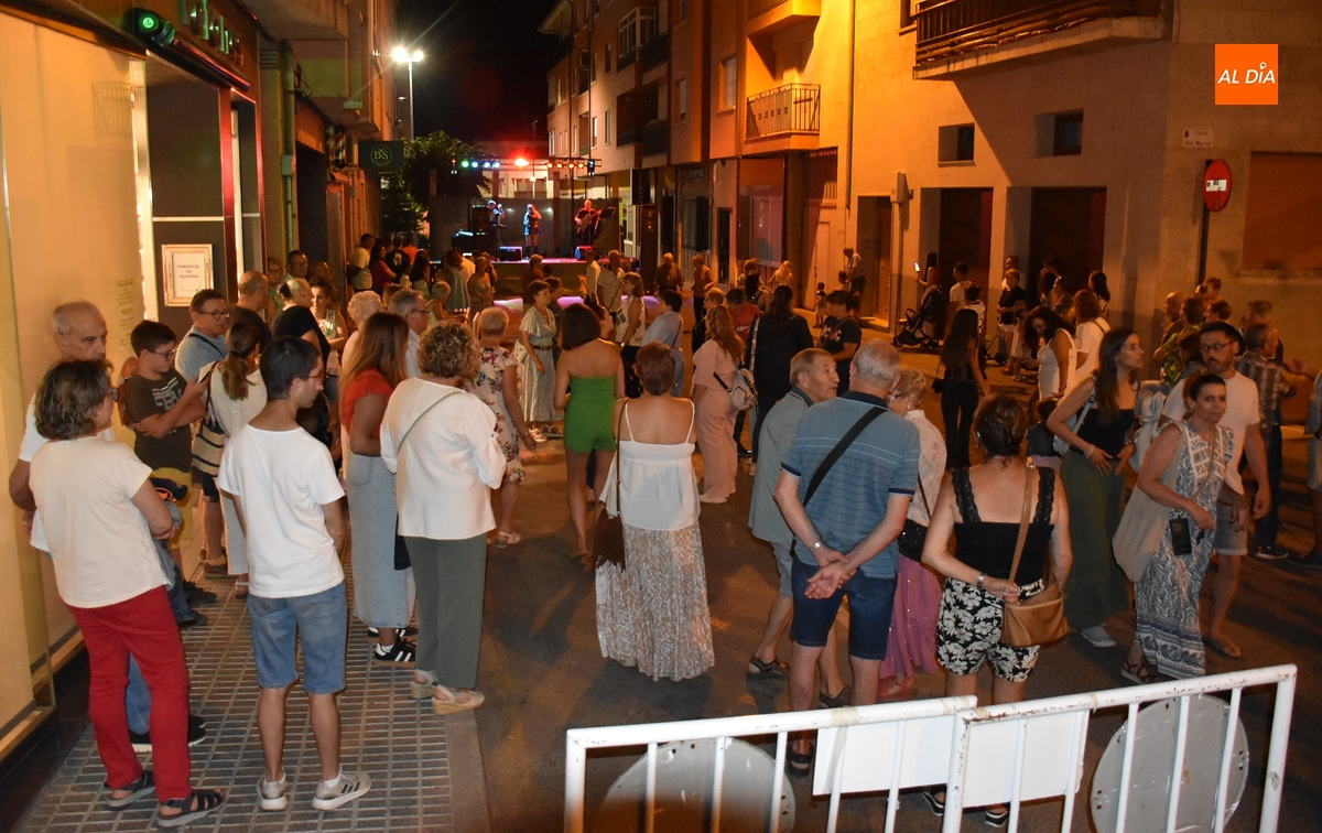 En contraste con lo vivido en las noches previas, la del sábado sí fue puramente veraniega, de tal modo que se disfrutó a lo grande de la velada, que fue encabezada por el Grupo Obsession, que actuó sobre el escenario instalado en la calle Wetones, cerca de su confluencia con la calle San Marcial.