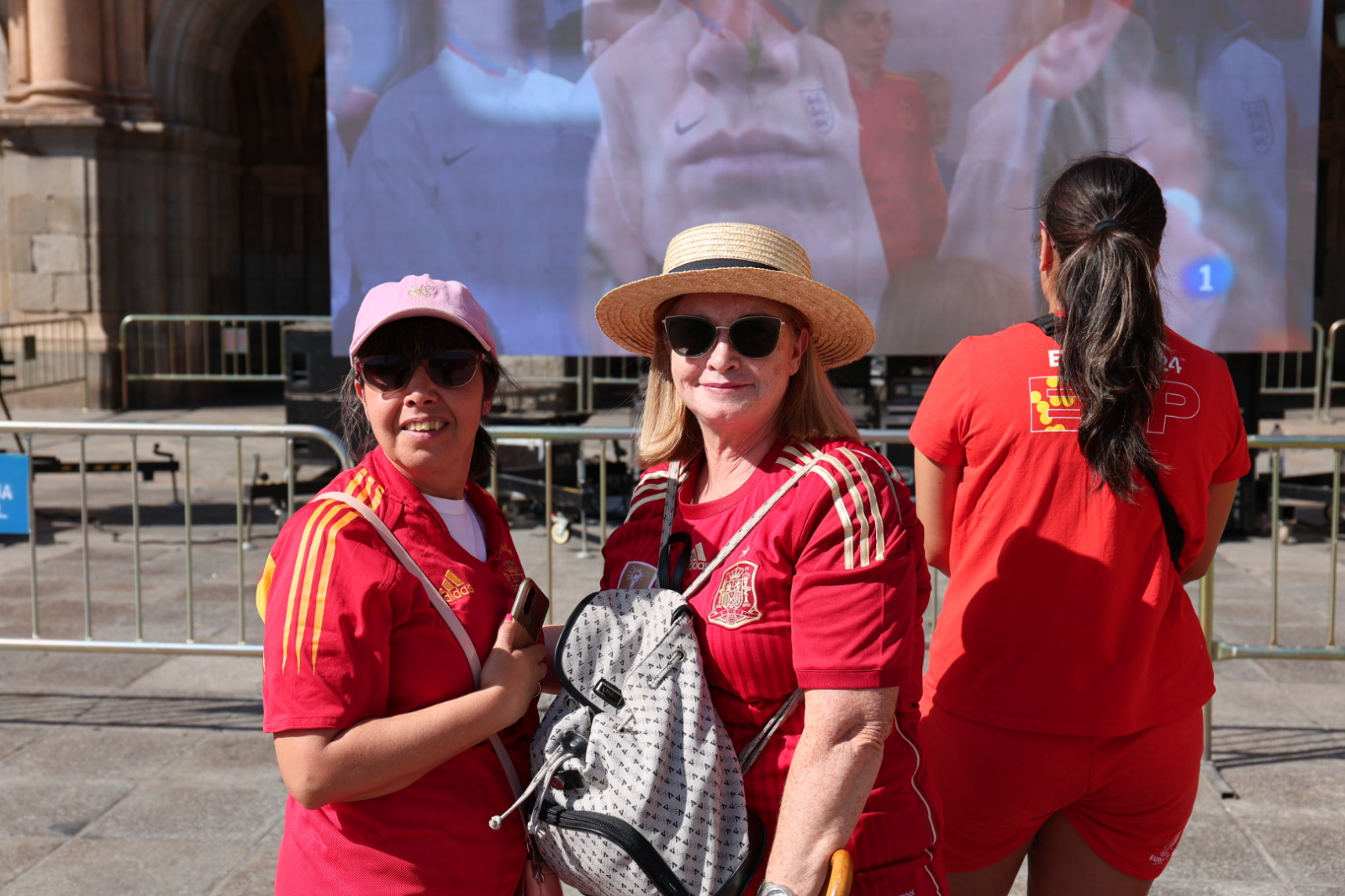 Pese a las altas temperaturas, varios aficionados no dudaron en acudir a la Plaza Mayor para apoyar a las futbolistas de Montse Tomé en el partido contra Inglaterra.