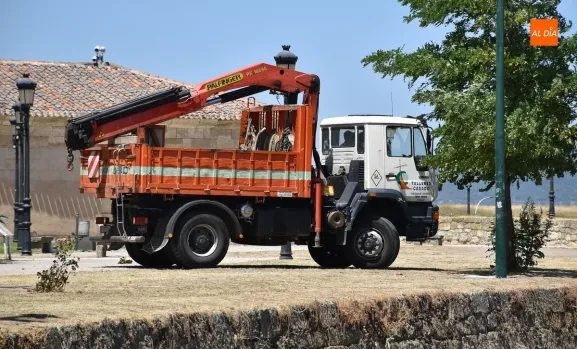 Operarios de la empresa Electricidad Casado estuvieron dotando de iluminación en la mañana del lunes al foso izquierdo de la Rúa del Sol de Ciudad Rodrigo, para posibilitar que se pueda seguir sin problemas desde su borde superior la disputa en la noche del viernes 8 de agosto de la competición de Humor Amarillo que forma parte de la programación veraniega del Consistorio.