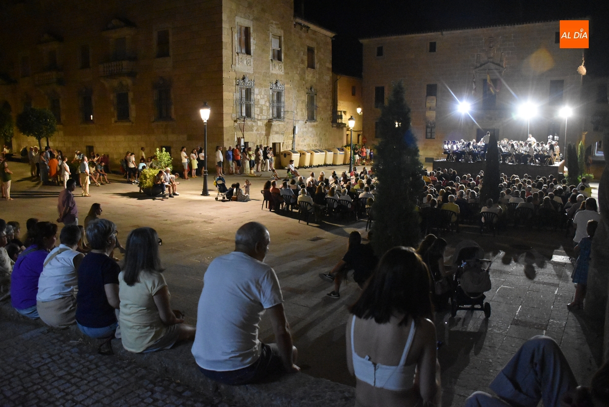 El último fin de semana del mes de julio se cerró en Ciudad Rodrigo con un clásico del verano: el concierto de la Banda Municipal de Música que dirige José María Sendín, que como en los dos años previos tuvo lugar en la Plazuela del Conde, sobre un escenario montado en las cercanías de la Casa de la Cultura.