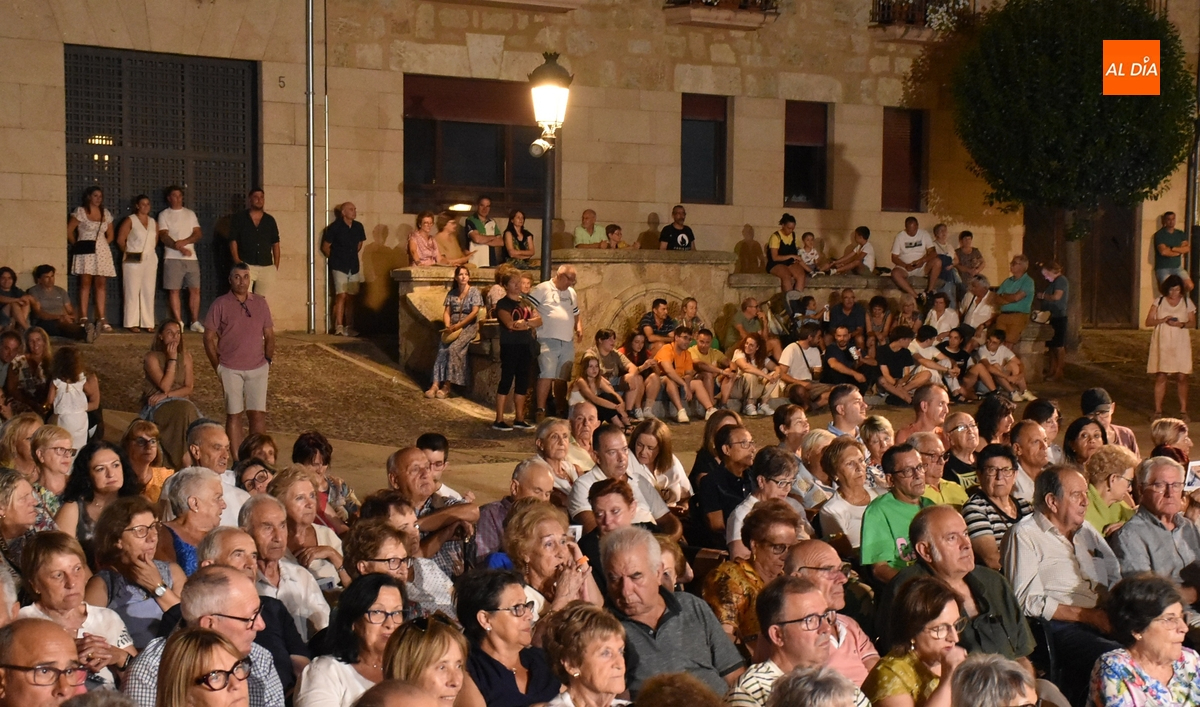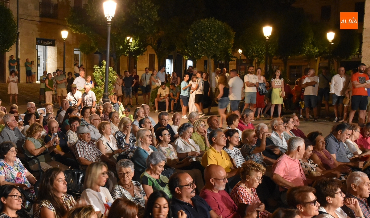 Junto al mismo se desplegaron varias hileras de sillas de plástico, que se quedaron insuficientes ante el numerosísimo público de todas las edades que se acercó a presenciar el concierto, quedándose parte del mismo de pie, mientras que otra parte se sentó en jardineras, en la zona de la fuente, o contra la pared de los edificios cercanos.