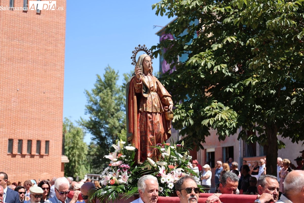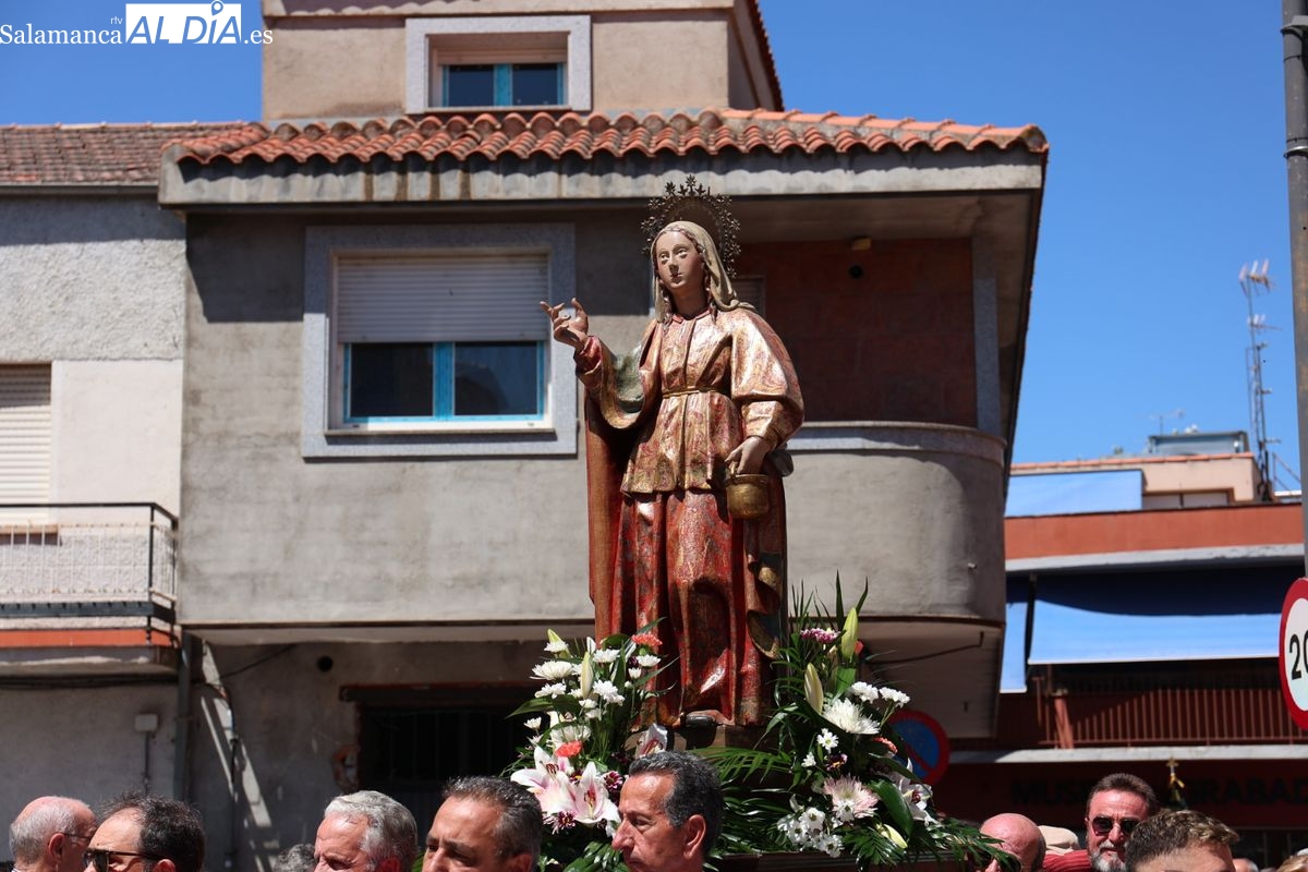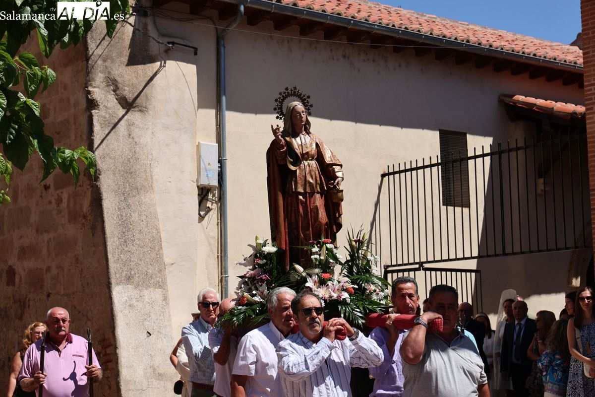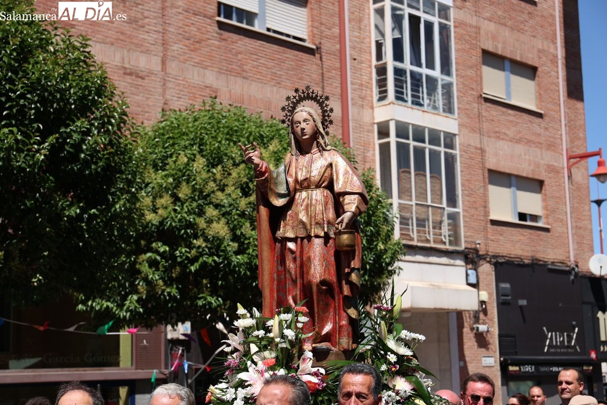Este martes, es el día grande de las fiestas patronales en Santa Marta de Tormes. La localidad salmantina se ha volcado en la celebración en honor a su patrona, con la solemne procesión como acto central que ha congregado a numerosos vecinos y devotos en las calles.