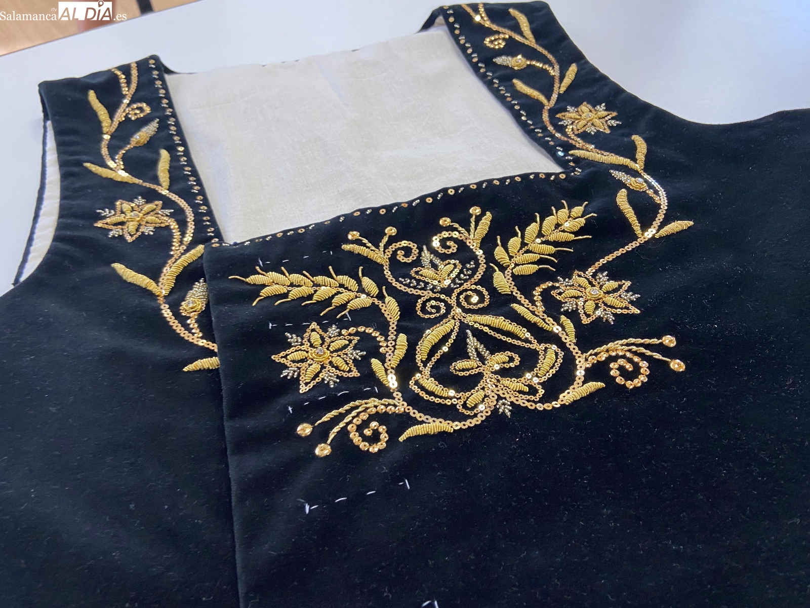 El bordado charro, explica el artesano, tiene sus raíces en el Renacimiento y se consolida en los trajes tradicionales a partir de los siglos XVII y XVIII. Arroyo ha estudiado a fondo su evolución, especialmente en su comarca de origen, El Abadengo.