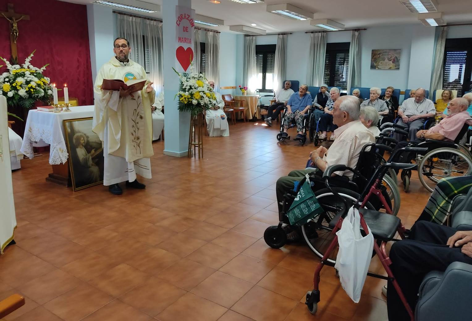 Todas juntas asistieron a una eucaristía que fue presidida por Anselmo Matilla, rector del Seminario en cuyo edificio se encuentra la Casa Sacerdotal de Ciudad Rodrigo, y concelebrada entre otros por el director de la Casa Sacerdotal, Prudencio Manchado, así como por Fernando Dias-Bailón y Bernardino San Nicasio, junto a un diácono permanente que visita a las Hermanas estos días.