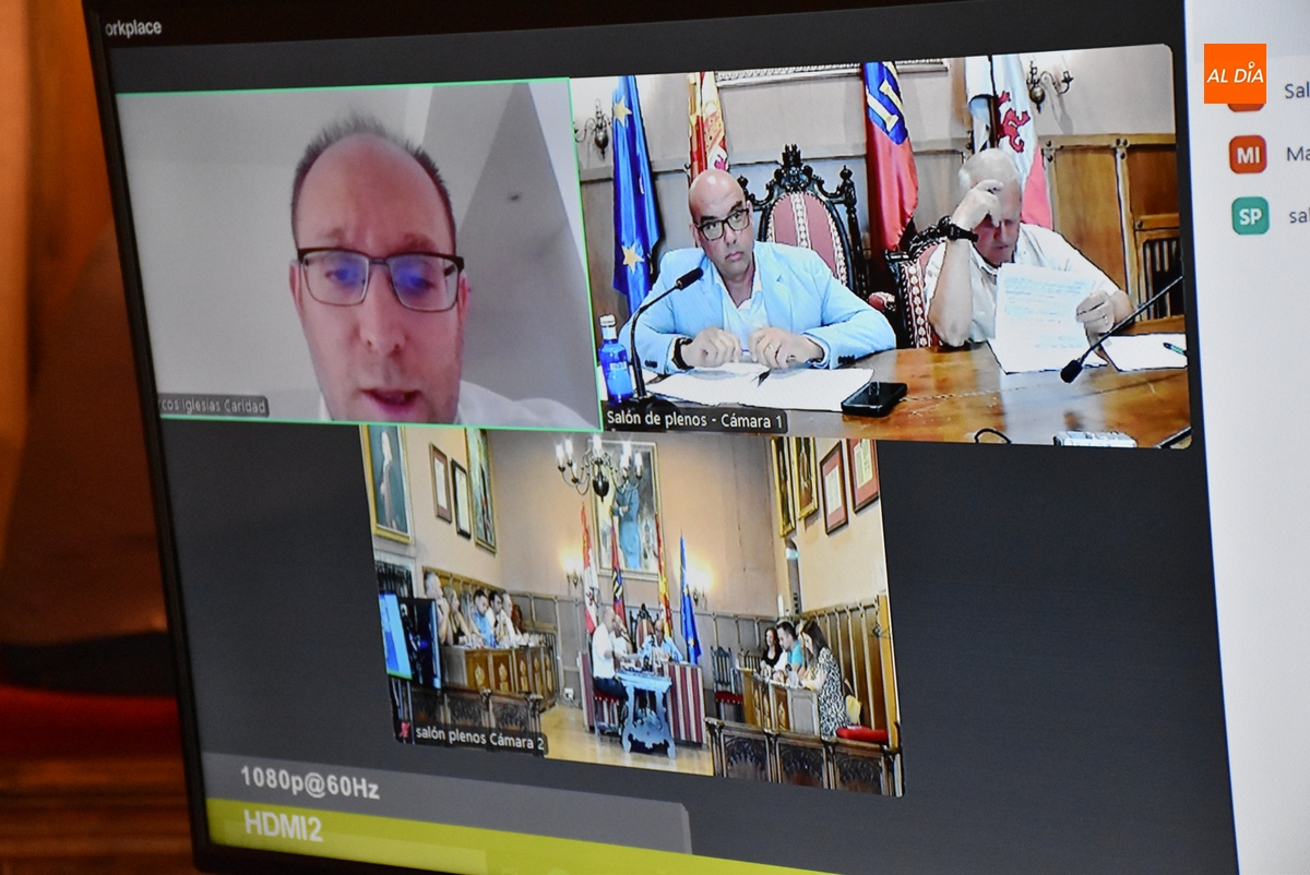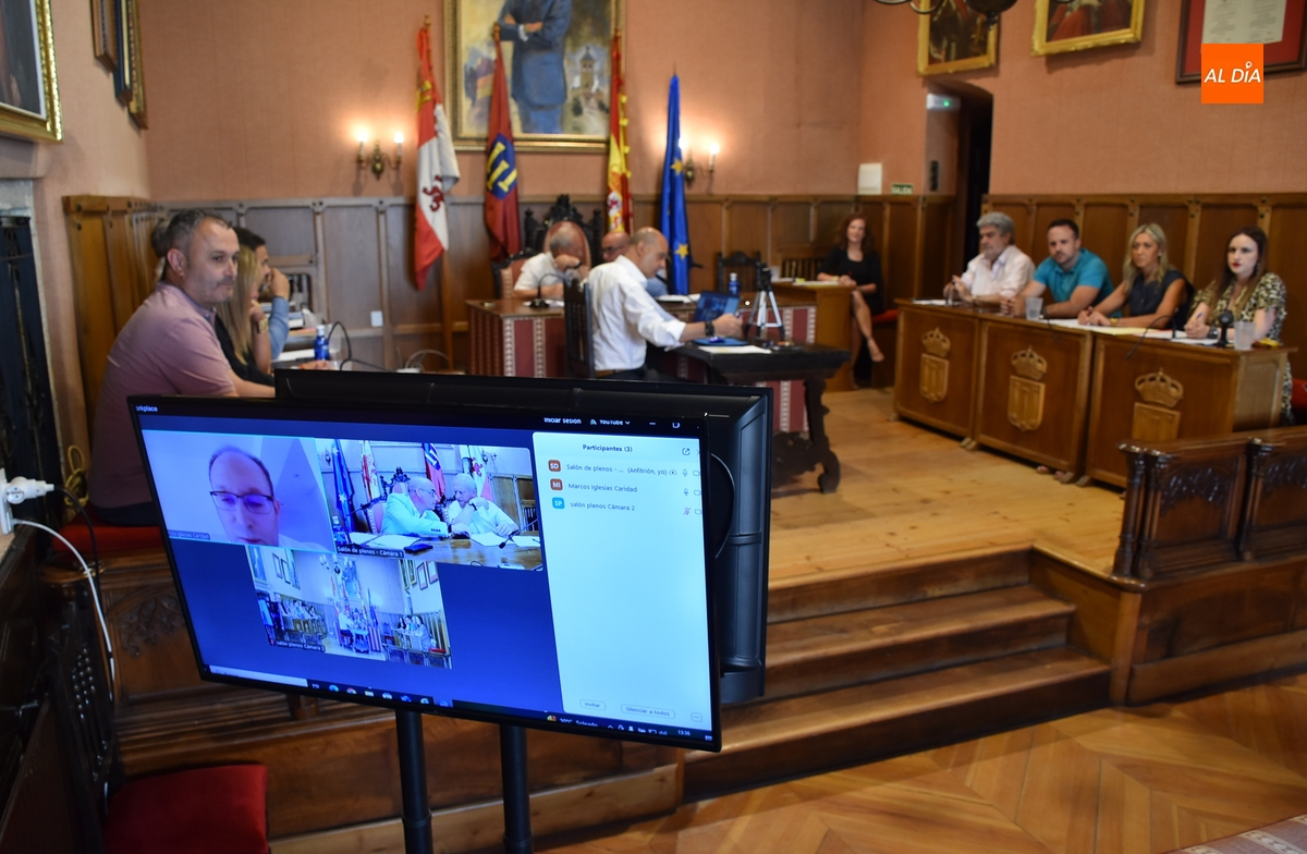 El Ayuntamiento de Ciudad Rodrigo despidió el mes de julio con una sesión ordinaria de Pleno a última hora de la mañana del jueves, que se acabó prolongando 1h.32’, pese a que el Orden del Día no era demasiado profuso. Este Pleno tuvo un hecho bastante llamativo, la ausencia presencial del alcalde Marcos Iglesias, tras haber sido padre por tercera vez en la jornada del miércoles. Iglesias presidió la sesión por videoconferencia, viéndole el resto de concejales a través de la pantalla instalada en el salón de plenos.