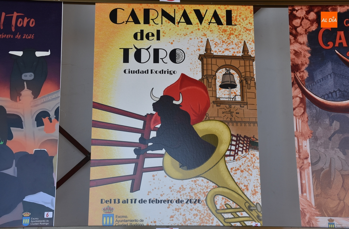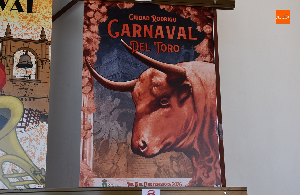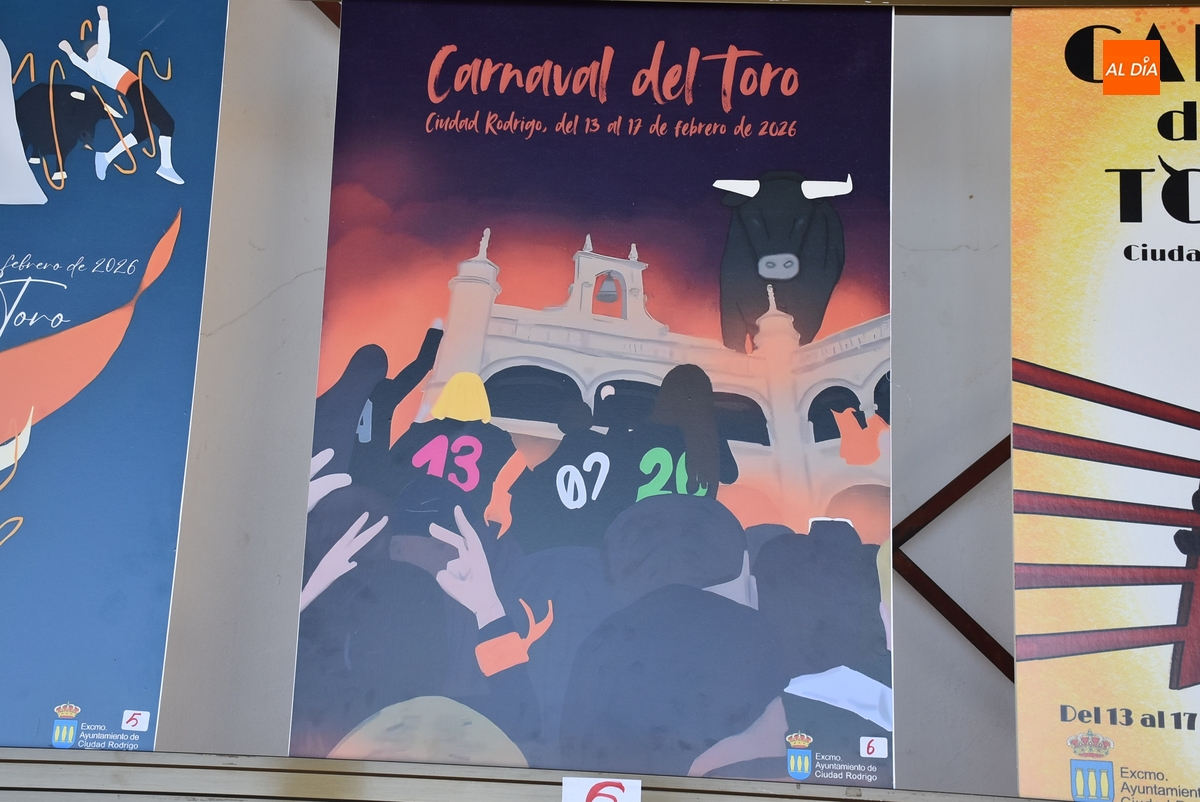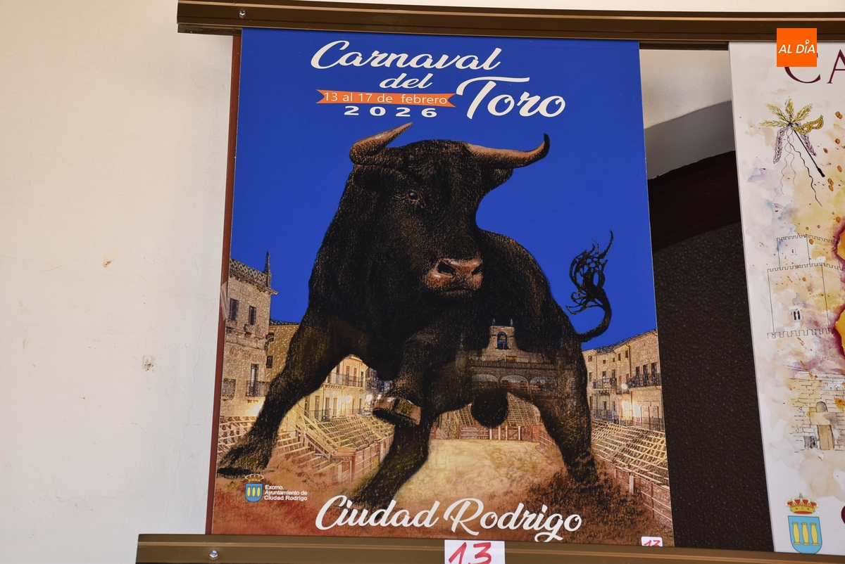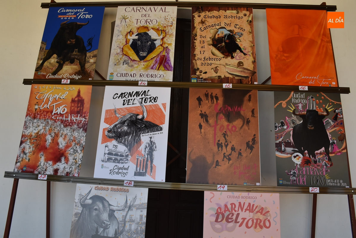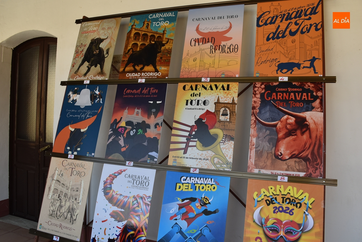 Desde la mañana del viernes, la balconada de la Casa Consistorial de Ciudad Rodrigo alberga los trabajos presentados al concurso convocado por el Ayuntamiento mirobrigense para elegir el cartel anunciador del Carnaval del Toro 2026, que se celebrará entre el 13 y el 17 de febrero.