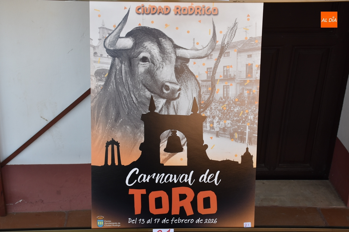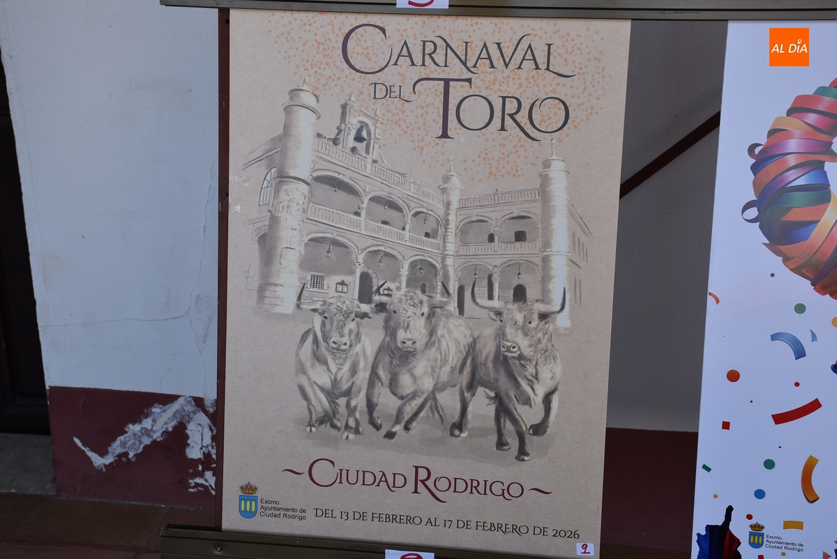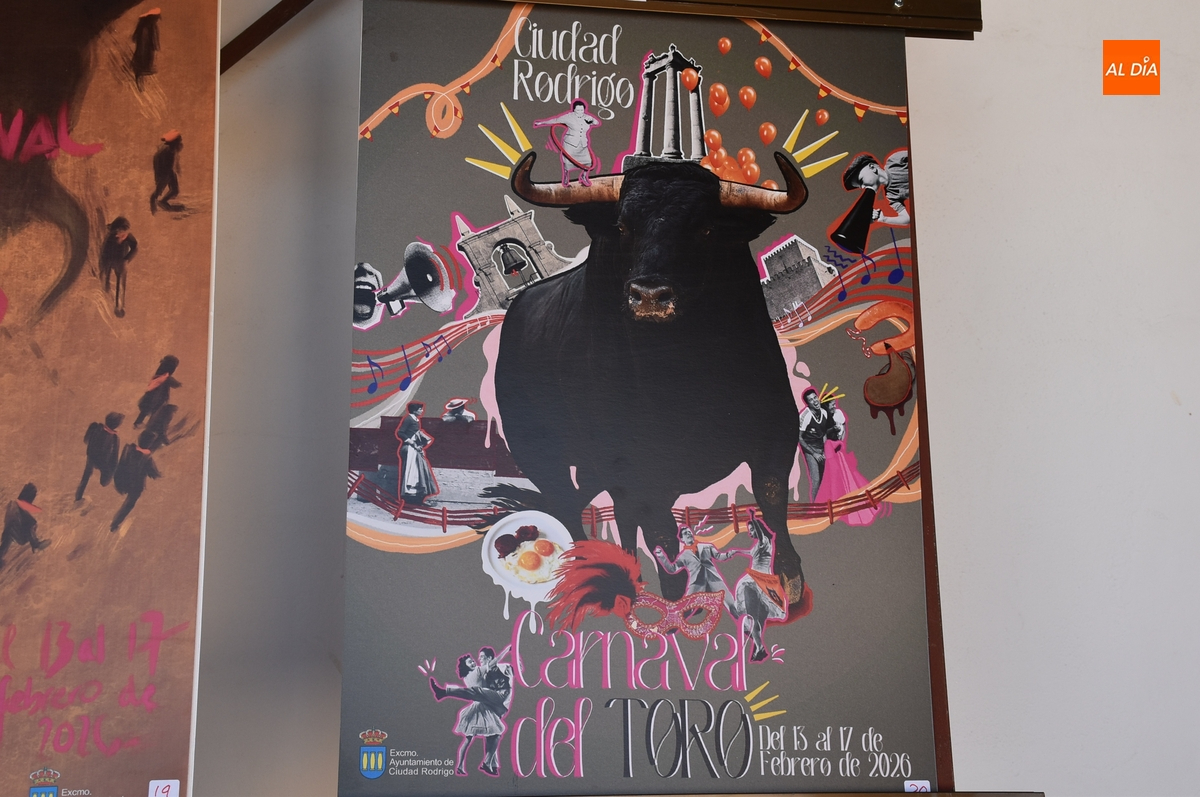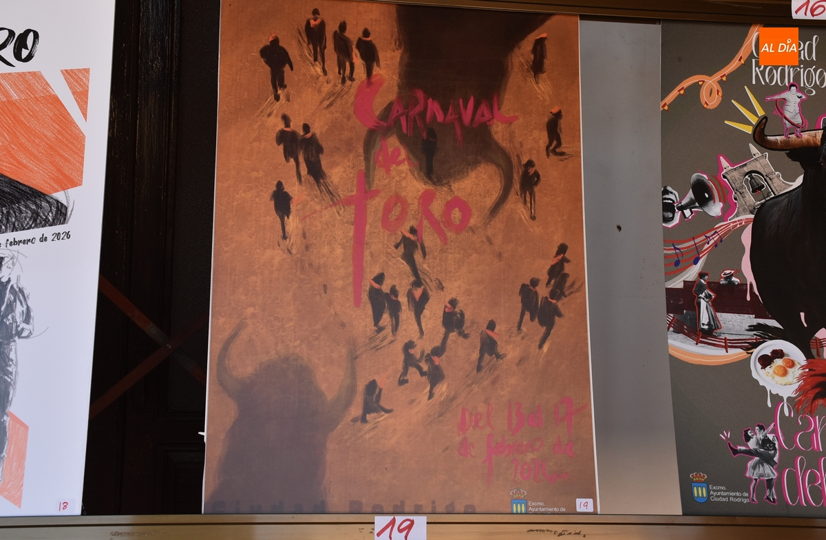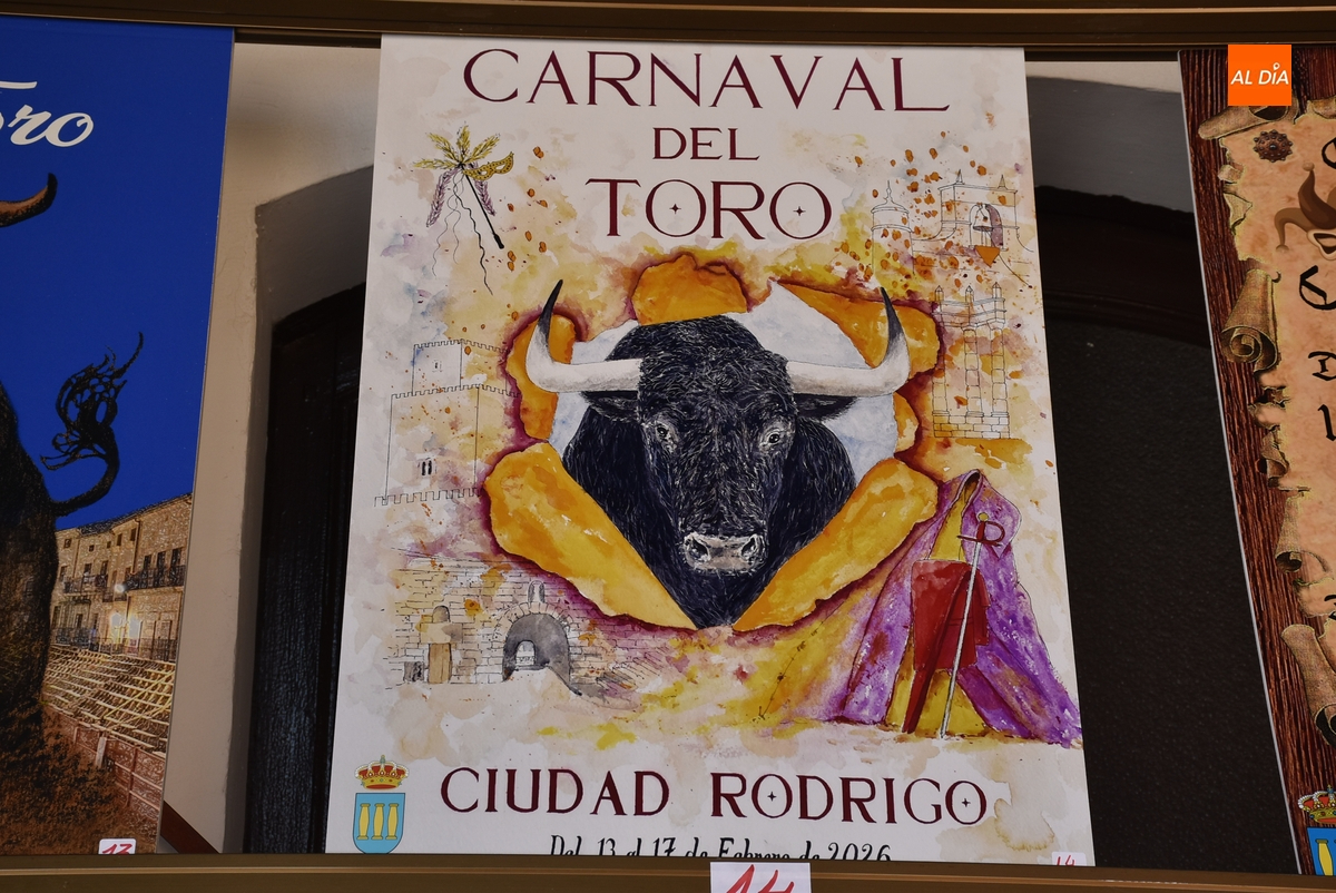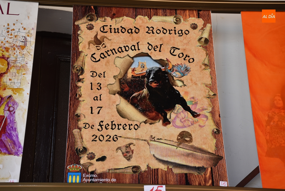 Desde la mañana del viernes, la balconada de la Casa Consistorial de Ciudad Rodrigo alberga los trabajos presentados al concurso convocado por el Ayuntamiento mirobrigense para elegir el cartel anunciador del Carnaval del Toro 2026, que se celebrará entre el 13 y el 17 de febrero.