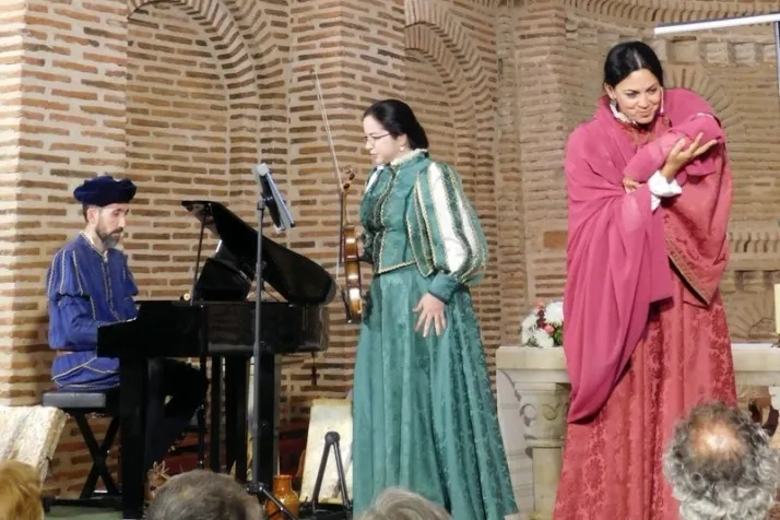 Los artistas en escena, Juan Francisco Vicente, Jenny Leyva y Guadalupe Lancho, dejaron a su paso por cada templo un recuerdo imborrable de imágenes, palabras y sonidos. Su trabajo ha sido la pieza clave para adornar las paredes de cada iglesia, convertidas en el escenario perfecto para la puesta en escena.