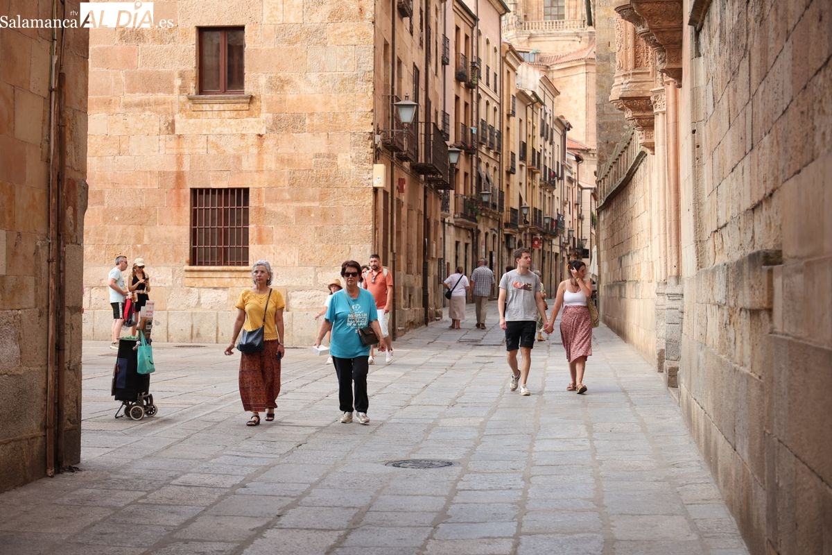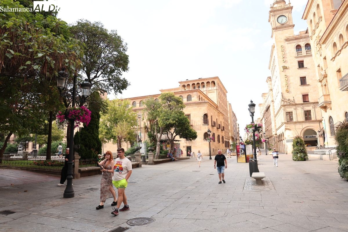 Salamanca ha dado la bienvenida al mes de agosto fiel a su estampa más característica del verano. Este viernes, 1 de agosto de 2025, las calles de la capital charra presentan donde el calor es protagonista, con turistas que visitan la ciudad y se mezcla con la vida cotidiana de los salmantinos que apuran sus recados o disfrutan del inicio del fin de semana.