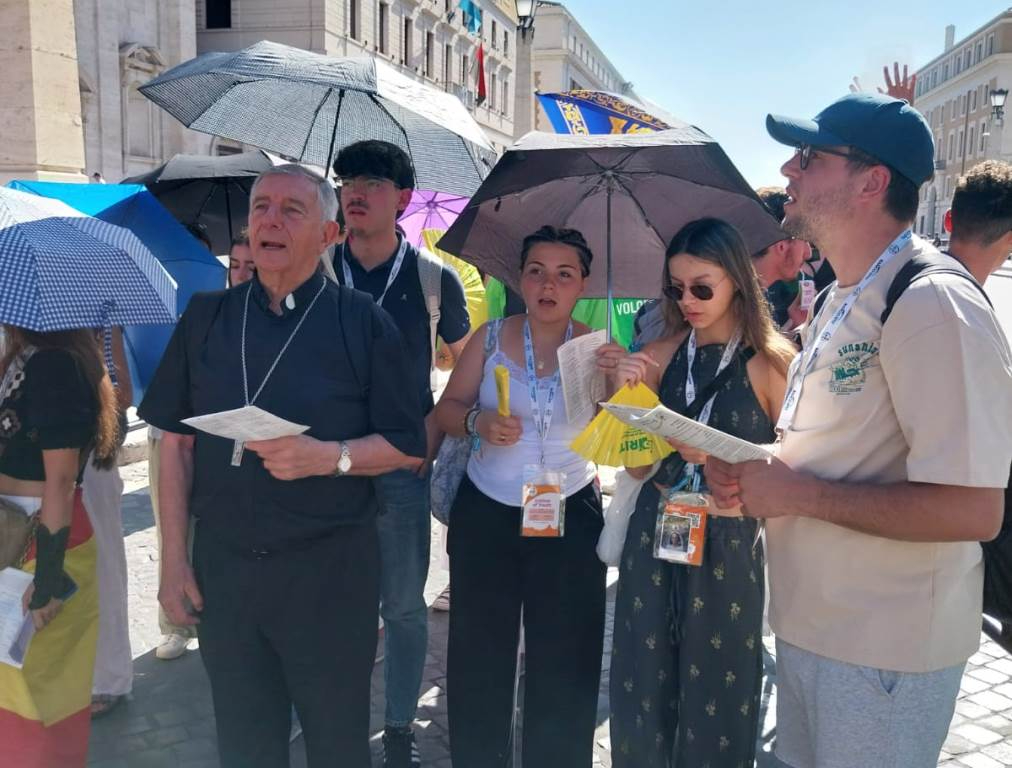 El grupo de jóvenes de la Diócesis de Ciudad Rodrigo que se encuentra desde el lunes en Roma está viviendo las horas culminantes del Jubileo de los Jóvenes que les ha llevado hasta la capital italiana junto a jóvenes de todo el mundo. En parte de estos actos, los jóvenes están contando con la compañía del Obispo José Luis Retana, que también está disfrutando del Jubileo.