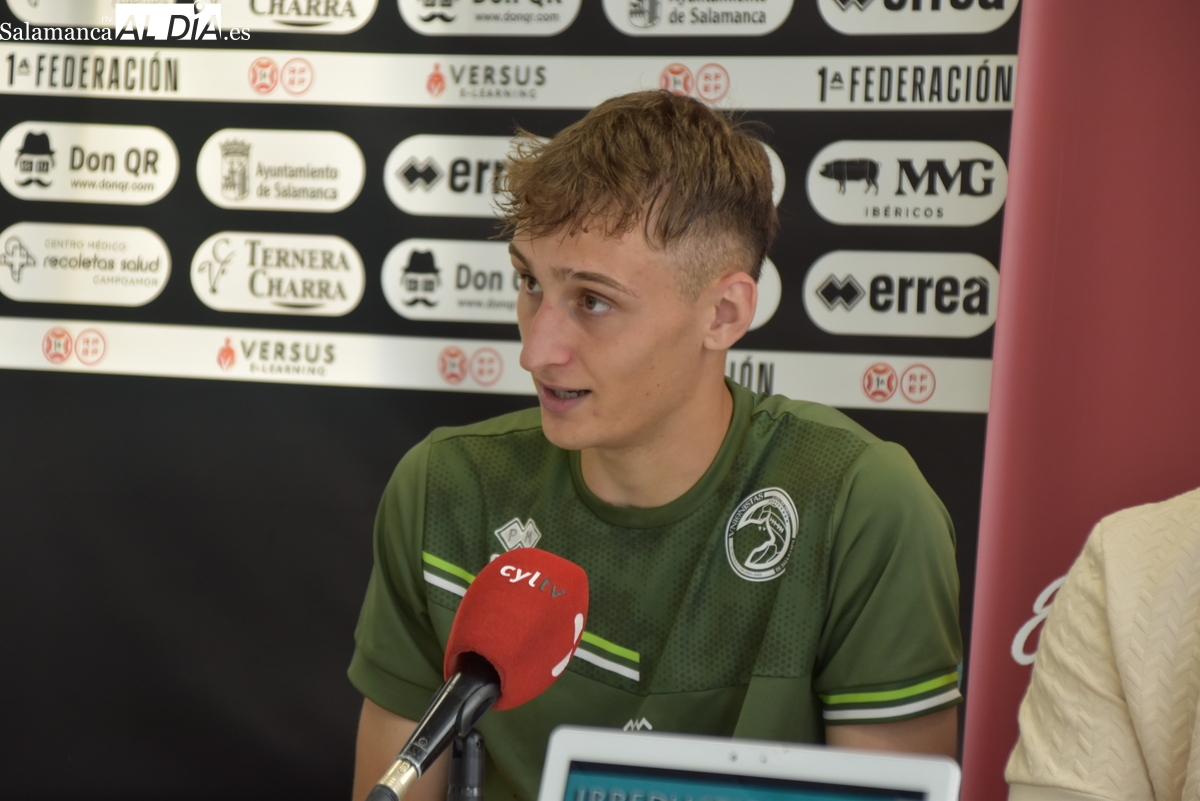 La presentación ha comenzado con Pere Marco, un joven delantero de 21 años procedente de Gandía y que llega cedido por el CD Castellón. Antonio Paz ha querido agradecer la predisposición tanto del club de origen como del entorno del jugador para cerrar una operación rápida y beneficiosa. "Lo claro que tenían ellos que era el sitio para para venir, para seguir mejorando, para seguir progresando", ha destacado Paz, subrayando la confianza depositada en el proyecto charro.