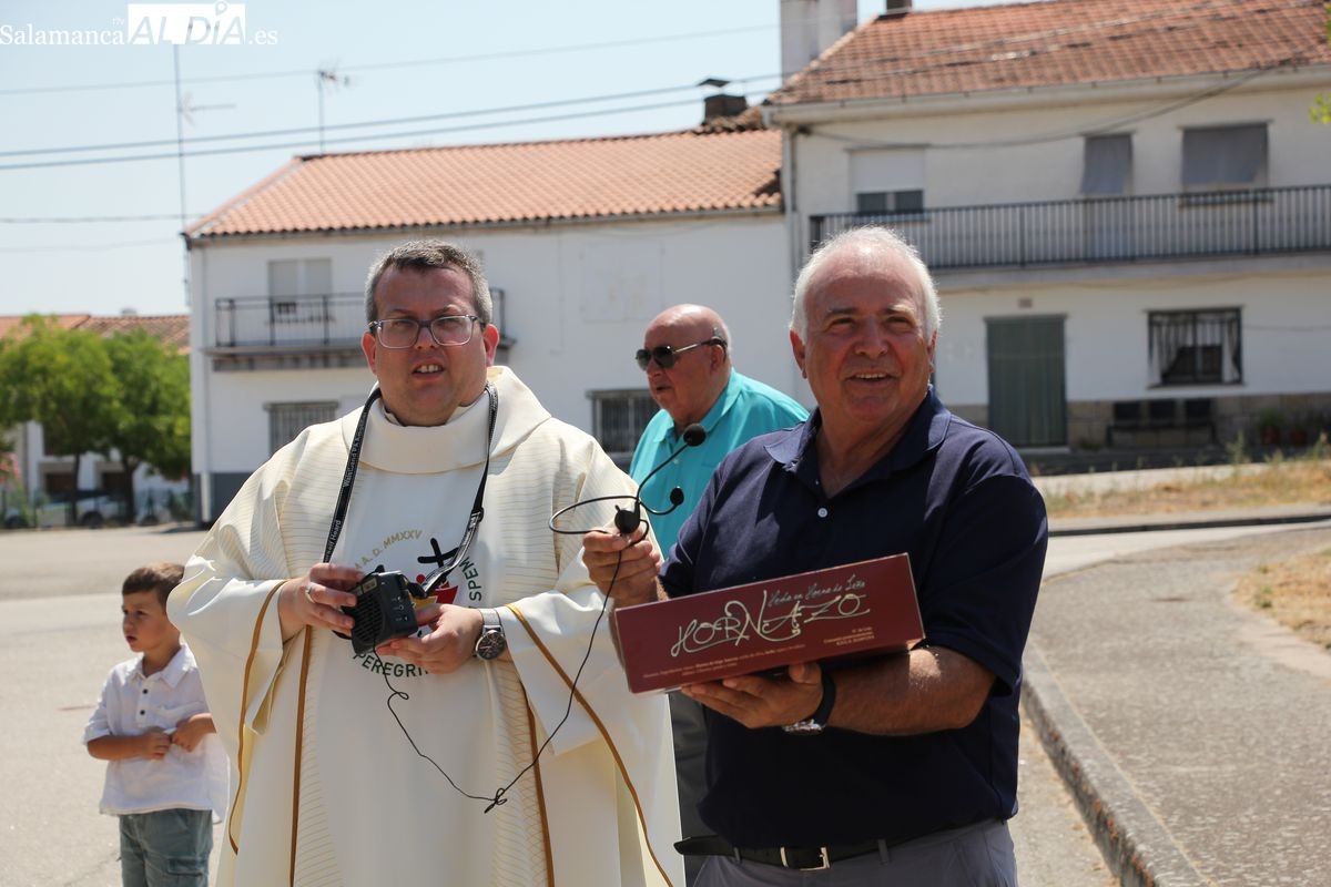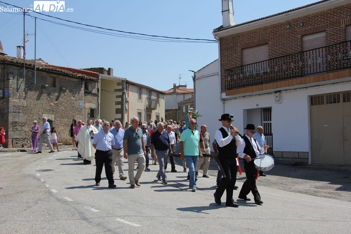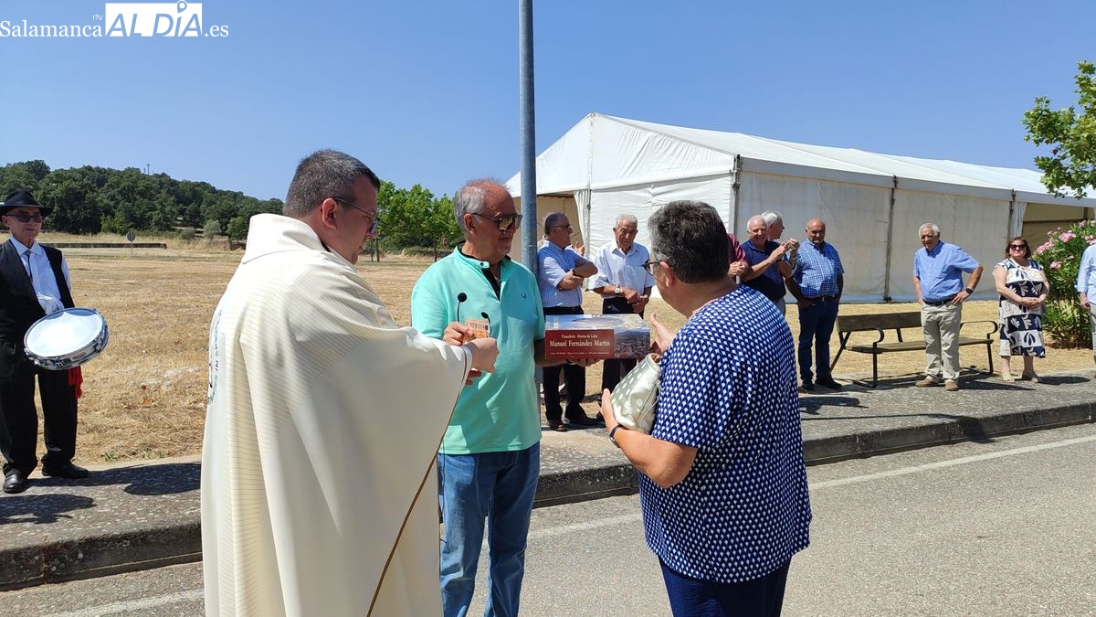 Oficiada por el párroco Miguel Ángel García, los vecinos de Cerezal de Peñahorcada asistían a la eucaristía amenizada por el sonido de la dulzaina y el redoblante de los integrantes de la Asociación Atagomsa, acto que daría paso a la procesión por las calles. A su regreso a la iglesia tendría lugar el ofertorio, el cual dio paso a la subasta este año de dos hornazos, acto que protagonizaría el alcalde de la localidad, Juan González.