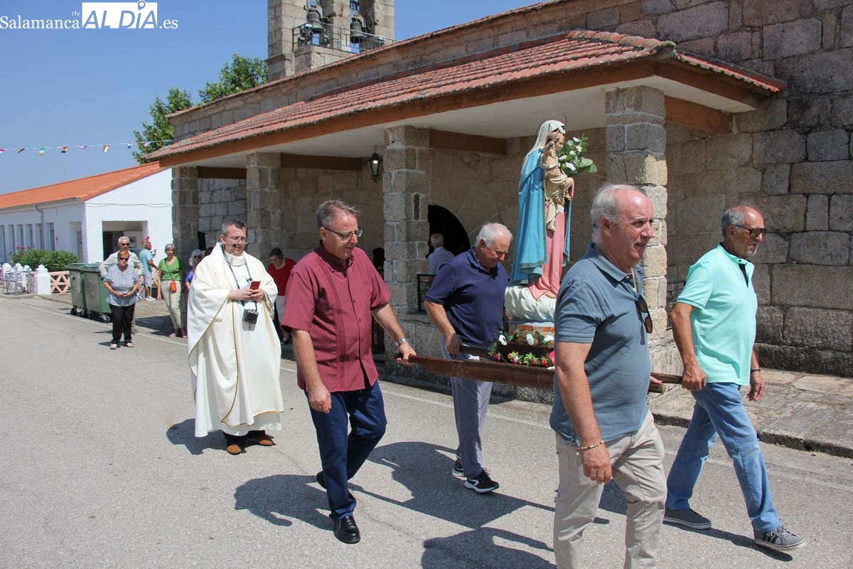 Después de una larga noche amenizada por una disco móvil, los vecinos de Cerezal de Peñahorcada se rendían este sábado a la Virgen María en los actos religiosos en su honor y la subasta de dos hornazos a los que Rosa le pondría un precio de 100 euros y Juan Vicente, 85 euros.