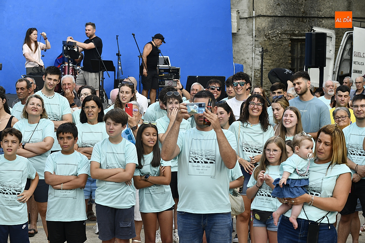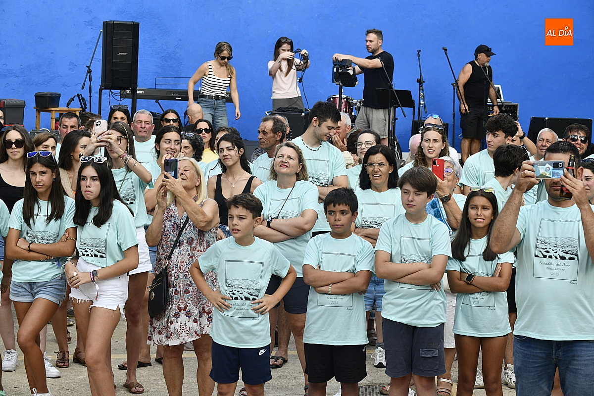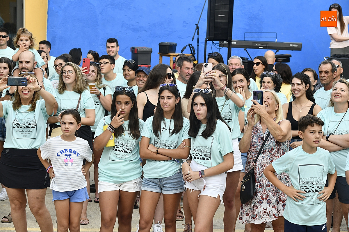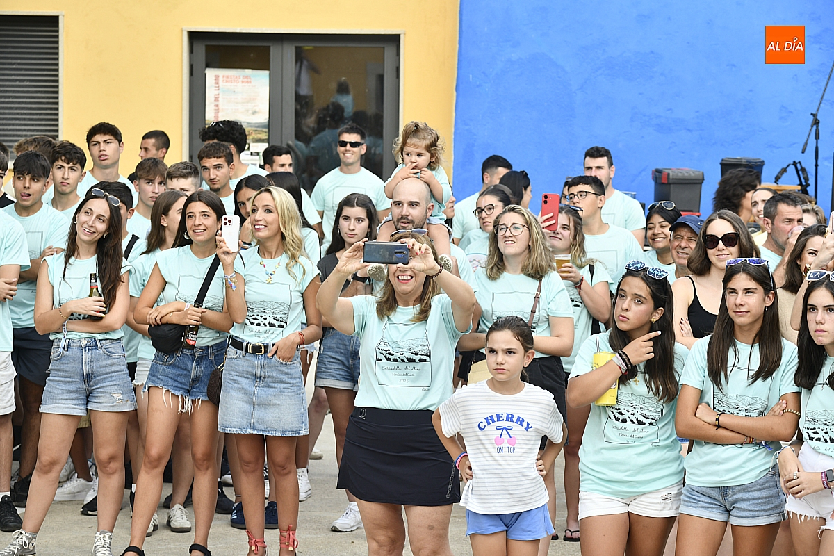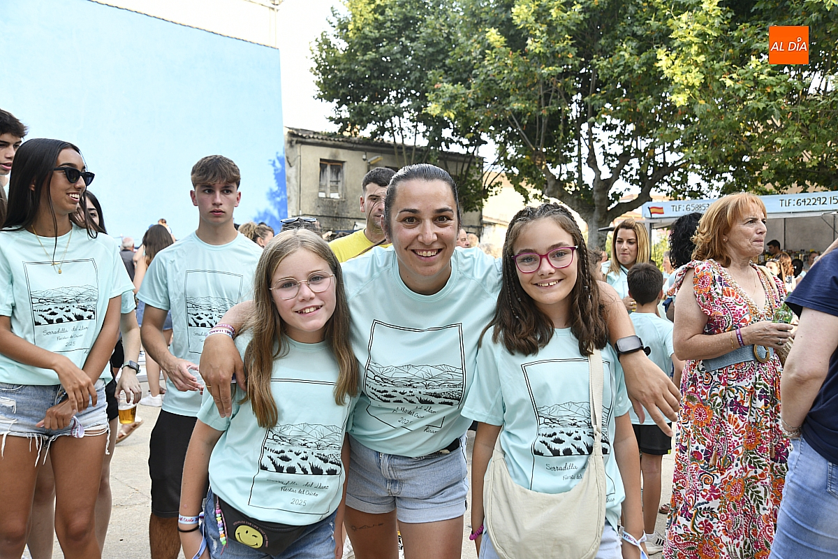 El público, compuesto por serradillejos de todas las edades, lucía con orgullo las camisetas azules y pulseras que identifican a cada peña, símbolo de pertenencia y espíritu festivo. Tras el pregón, la jornada continuó con música en directo a cargo del grupo mirobrigense The Covers y una animada sesión de juegos.