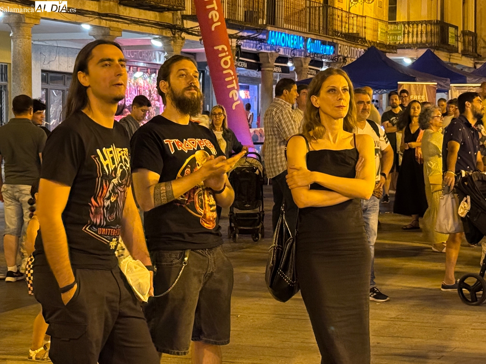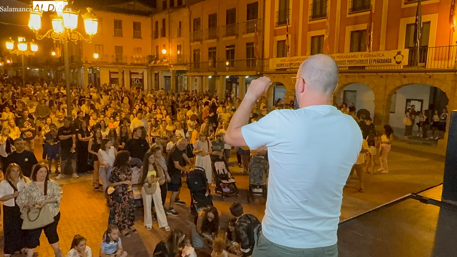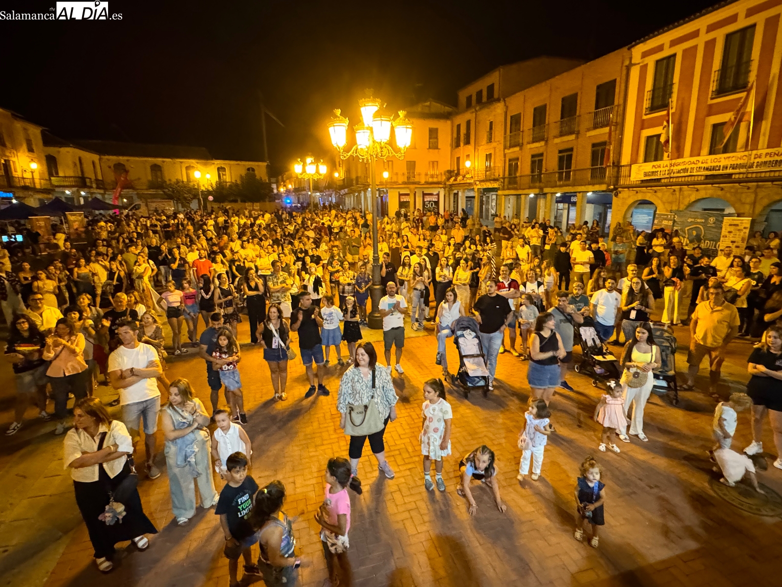 La Plaza de la Constitución se convertió en la noche de este pasado viernes en una original versión de la Puerta del Sol, con la celebración de las campanadas del uno de agosto, como multitudinaria previa y bienvenida al Festival Airadilos en favor de la Asociación de Enfermedades Raras de Castilla y León.