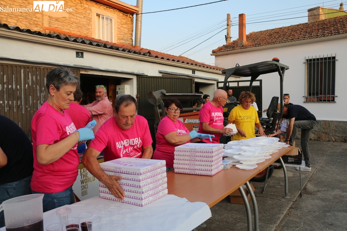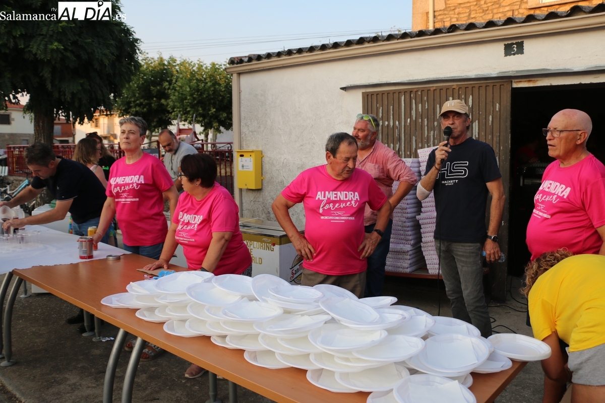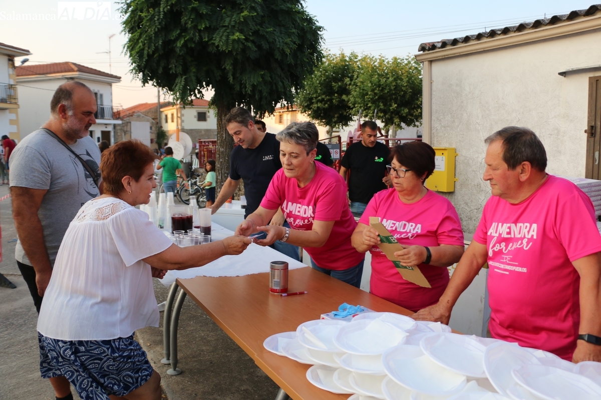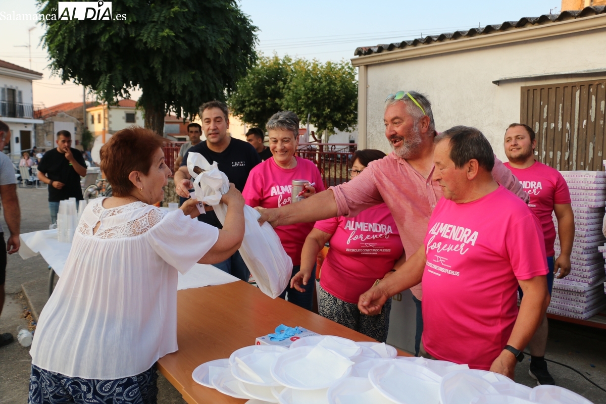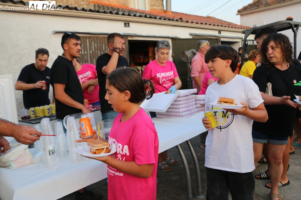 Después de una larga jornada con un extraordinario desfile y concurso de disfraces y una verbena amenizada por la orquesta La Sombra, los vecinos de Almendra reponían fuerzas este sábado con una merienda popular para enfilar con garantías lo que les resta de las fiestas de agosto.