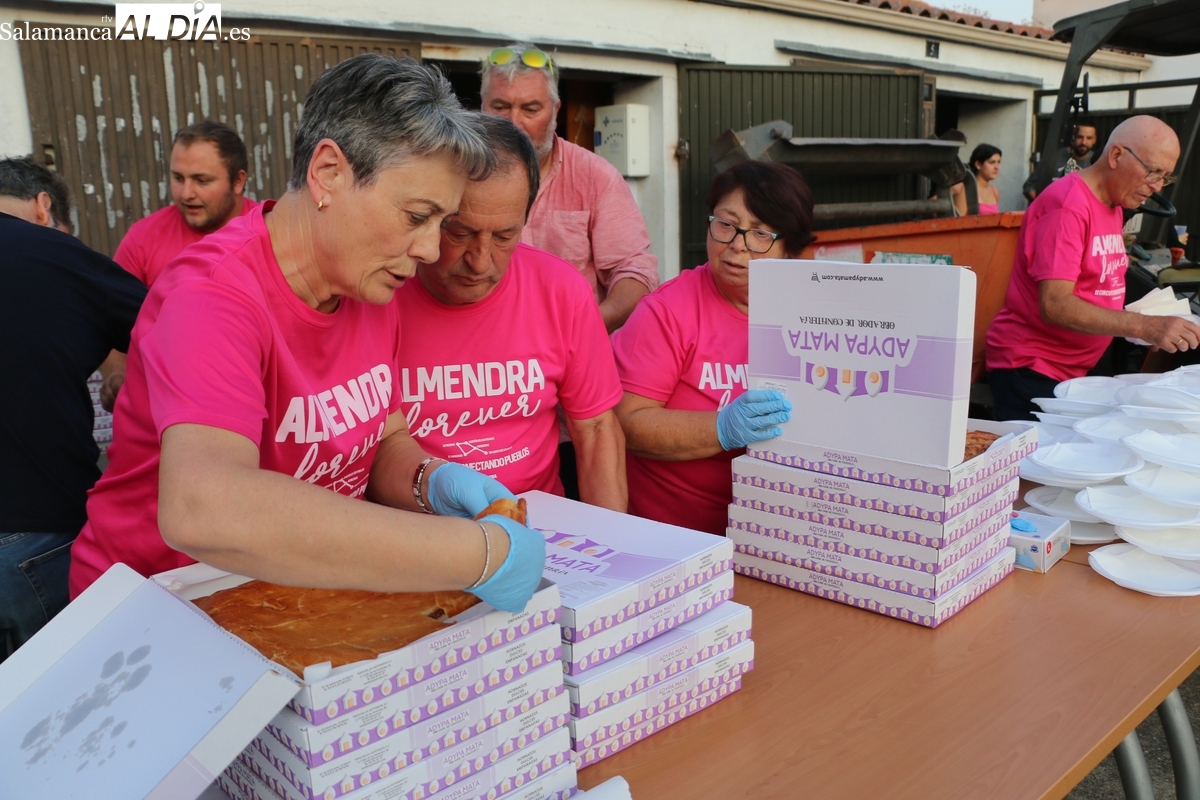 En esta ocasión el Ayuntamiento de Almendra ofreció a unas 500 personas una fantástica merienda a base de empanadas de distintos tipos y hornazo, todo ello regado con una fresca limonada, y disfrutando de un buen ambiente. Antes, entre los compradores del correspondiente ticket se sorteó una paleta de buen porte.