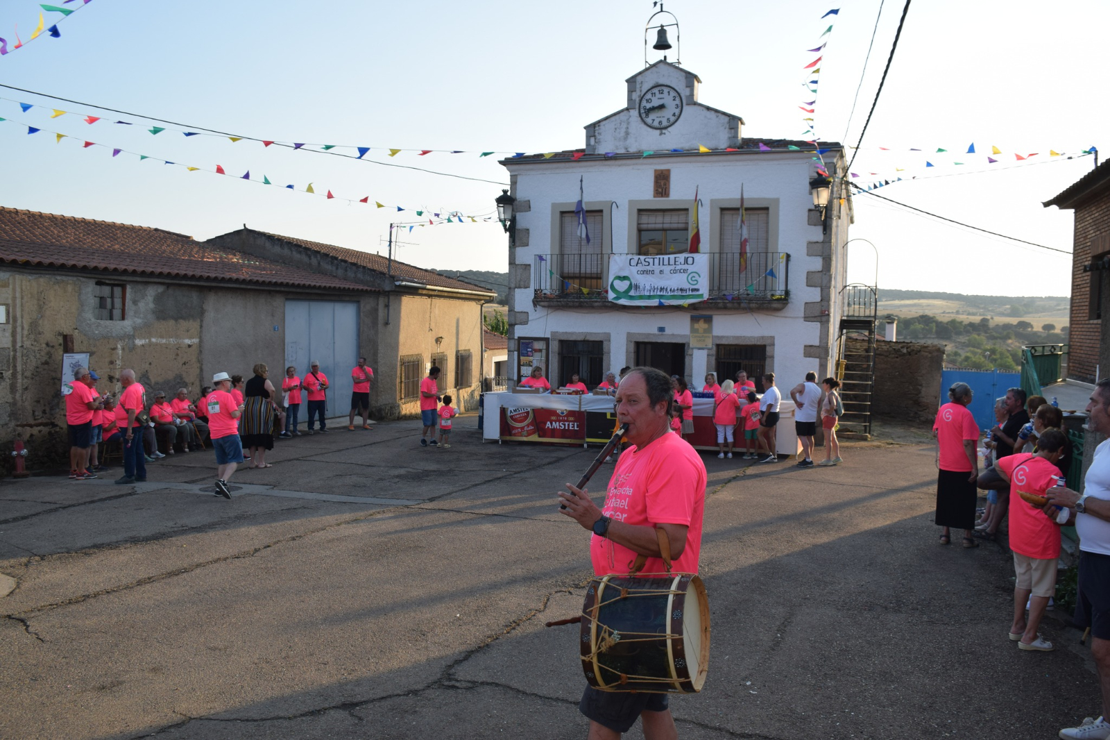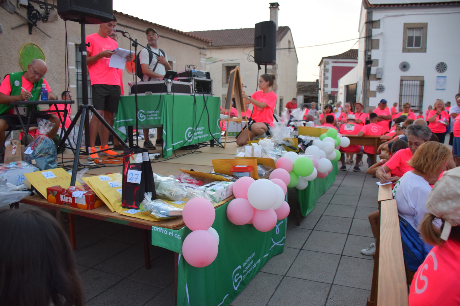 En Castillejo de Dos Casas, los participantes tuvieron la oportunidad de recoger un avituallamiento en forma de empanada aportada por Los Boliches de la Torre y agua por gentileza de la AECC. De vuelta a Aldea del Obispo, se desarrolló un sorteo de multitud de regalos. La tarde solidaria contó con la animación musical de dos tamborileros.