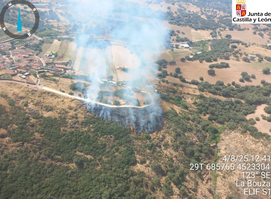 Los vecinos de la pequeña localidad de La Bouza se vieron sobresaltados en la mañana del lunes al declararse un incendio forestal en las inmediaciones del núcleo urbano de su municipio.