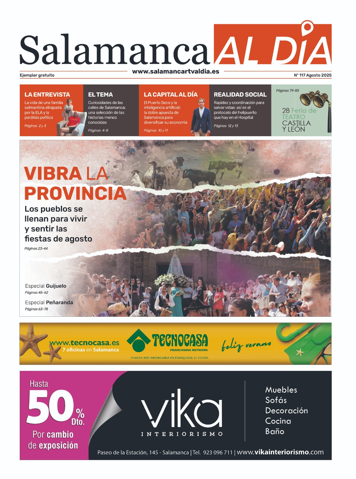 La esperada cita mensual con la información local y provincial llega de nuevo a sus puntos de encuentro habituales. Desde este miércoles, 6 de agosto, los lectores podrán hacerse con el nuevo número del periódico gratuito SALAMANCA AL DÍA, una edición que este mes pone el foco en la 'vibra de la provincia'.