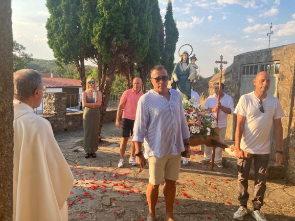 Y en el corazón del pueblo, la Iglesia de Nuestra Señora de las Nieves sigue marcando el pulso espiritual del lugar. Con su espadaña modesta y su portada tardorrománica, es más que un templo: es un símbolo de continuidad, de celebración, de recogimiento. Allí, cada verano, se celebra en la fiesta la Eucaristía y la procesión, no como rito vacío, sino como acto de reencuentro, de comunión real entre vivos y muertos, entre presentes y ausentes. Porque el sentido de la fiesta no es la distracción, sino la alegría profunda de saberse parte de algo más grande. Paul Claudel lo expresó con verdad: “Hazles comprender que no tienen en el mundo otro deber que la alegría”. Y Nietzsche lo completó: la fiesta pertenece no a los que la organizan, sino a quienes se alegran en ella.