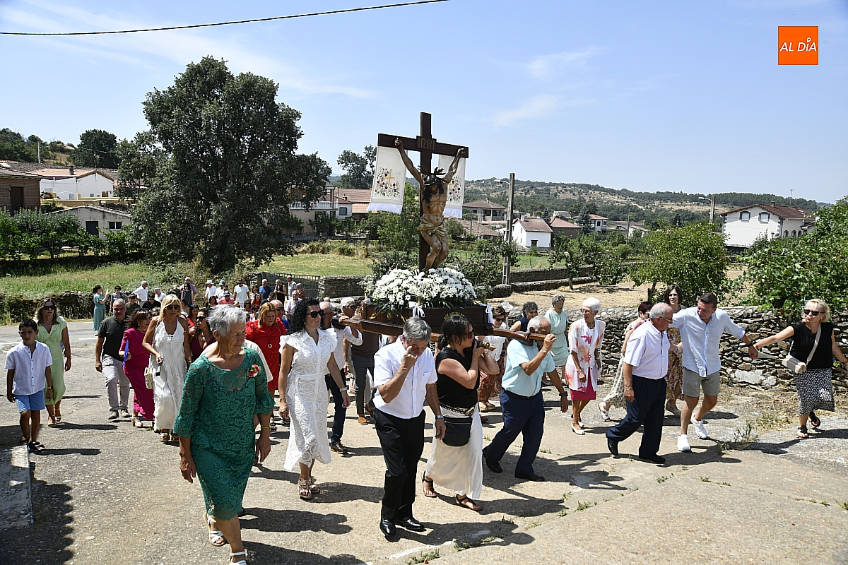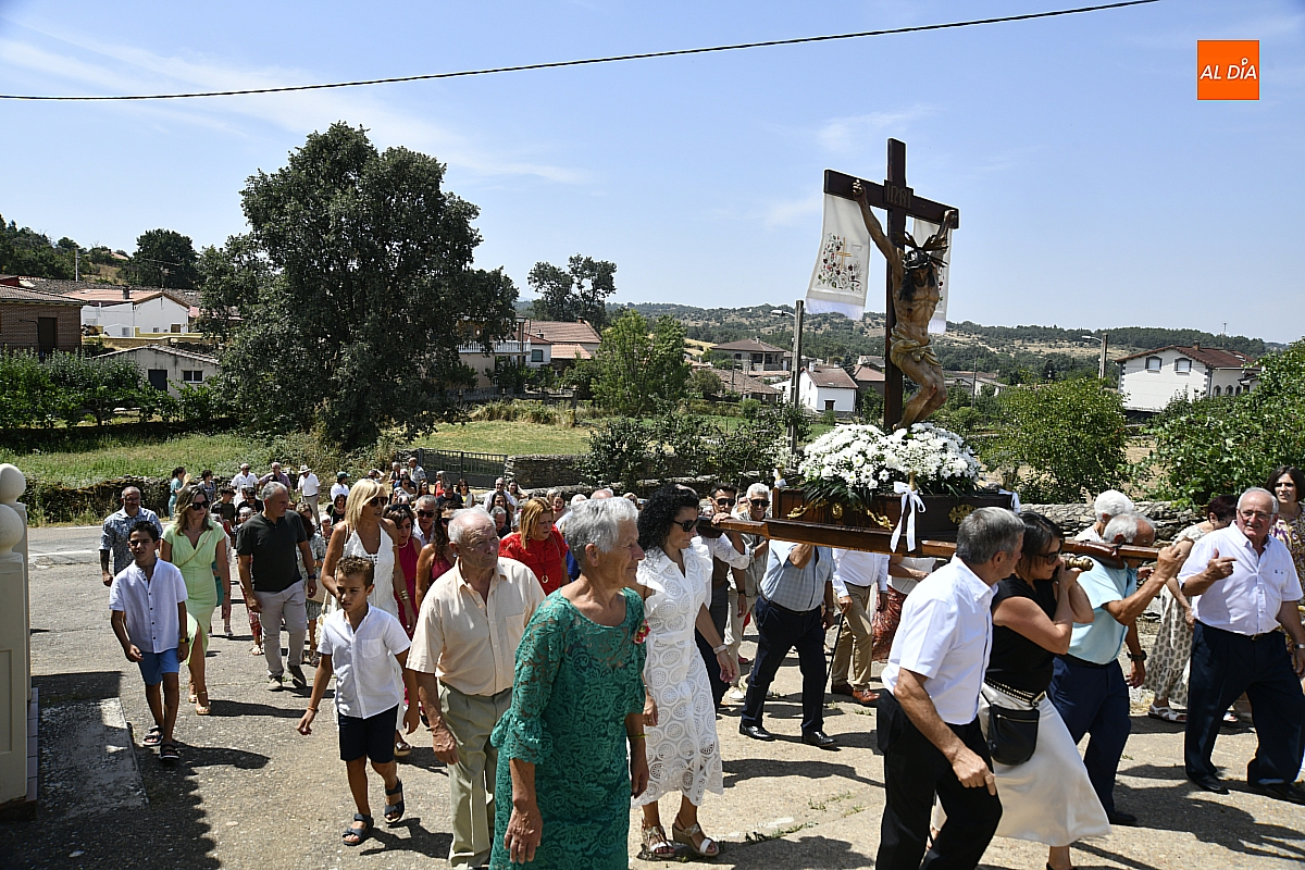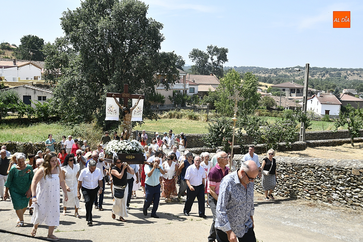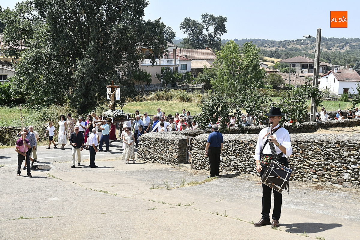 A continuación, tuvo lugar la procesión por las calles del pueblo, presidida por la venerada imagen del Cristo Crucificado. El cortejo, envuelto en un ambiente de respeto y silencio solo roto por los cantos populares, estuvo acompañado por los sones tradicionales de un tamborilero, que interpretó melodías propias salmantinas y con aires de la subcomarca de El Rebollar, acentuando el carácter identitario de la celebración.