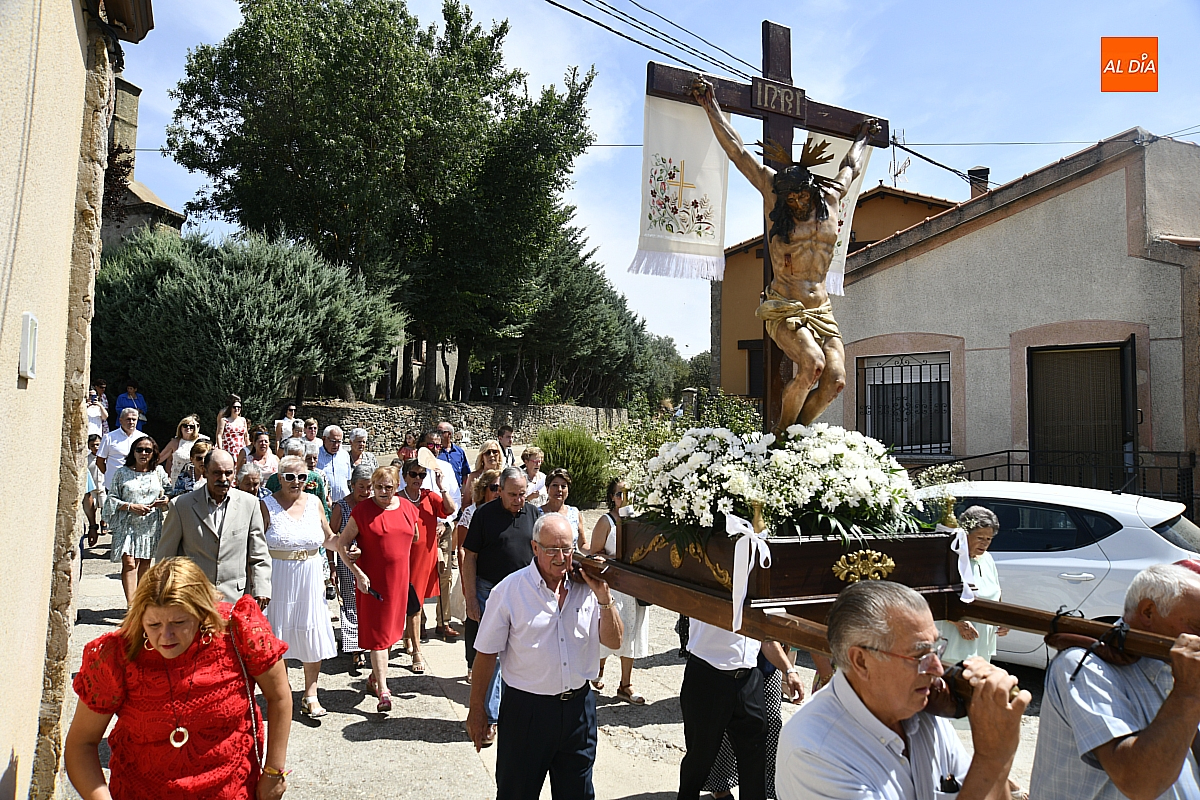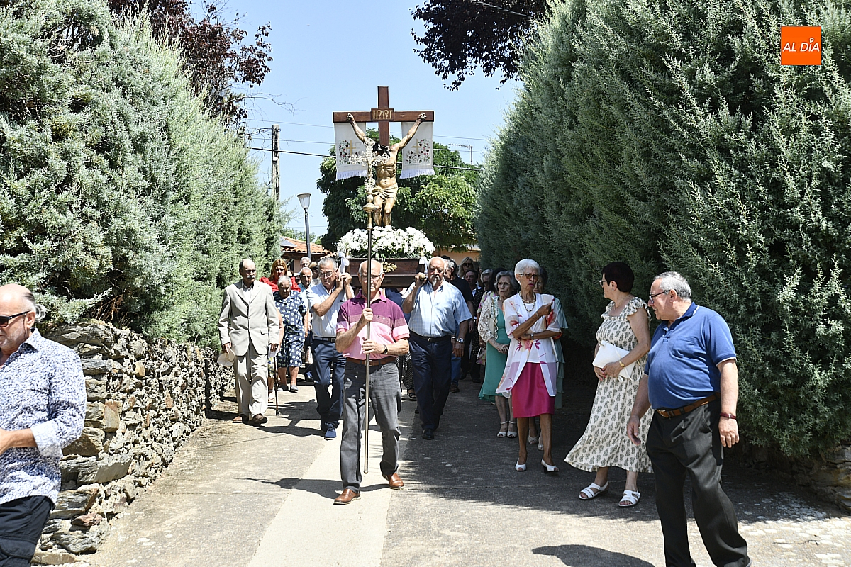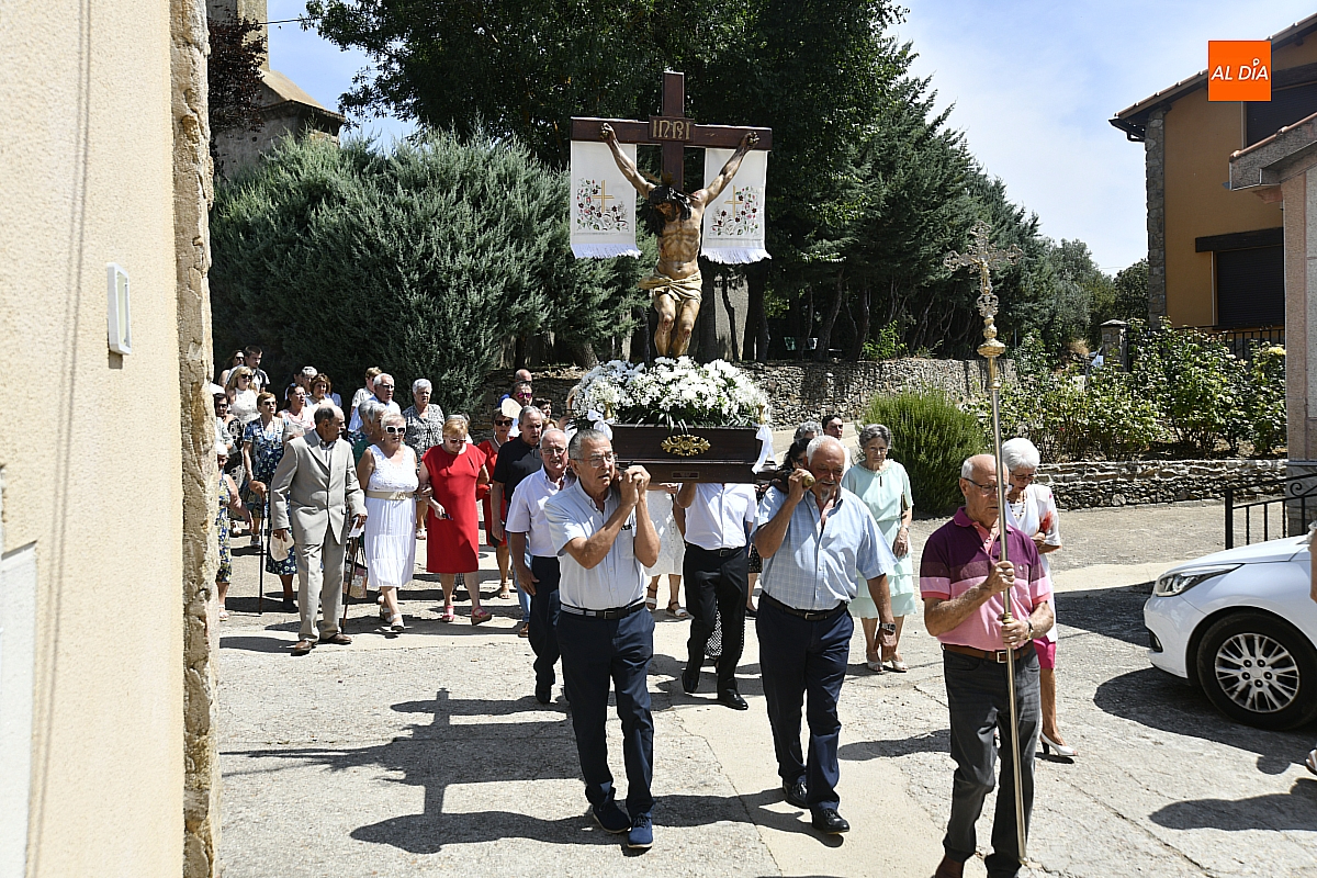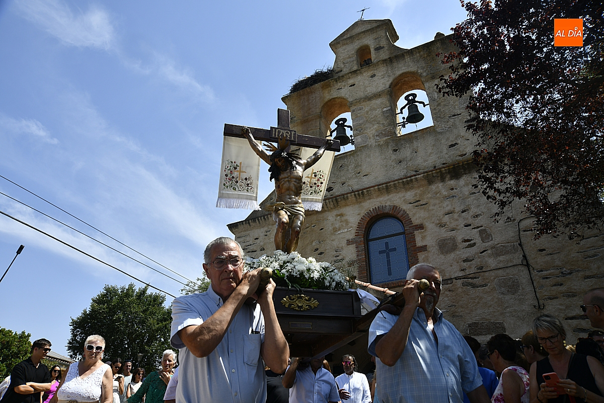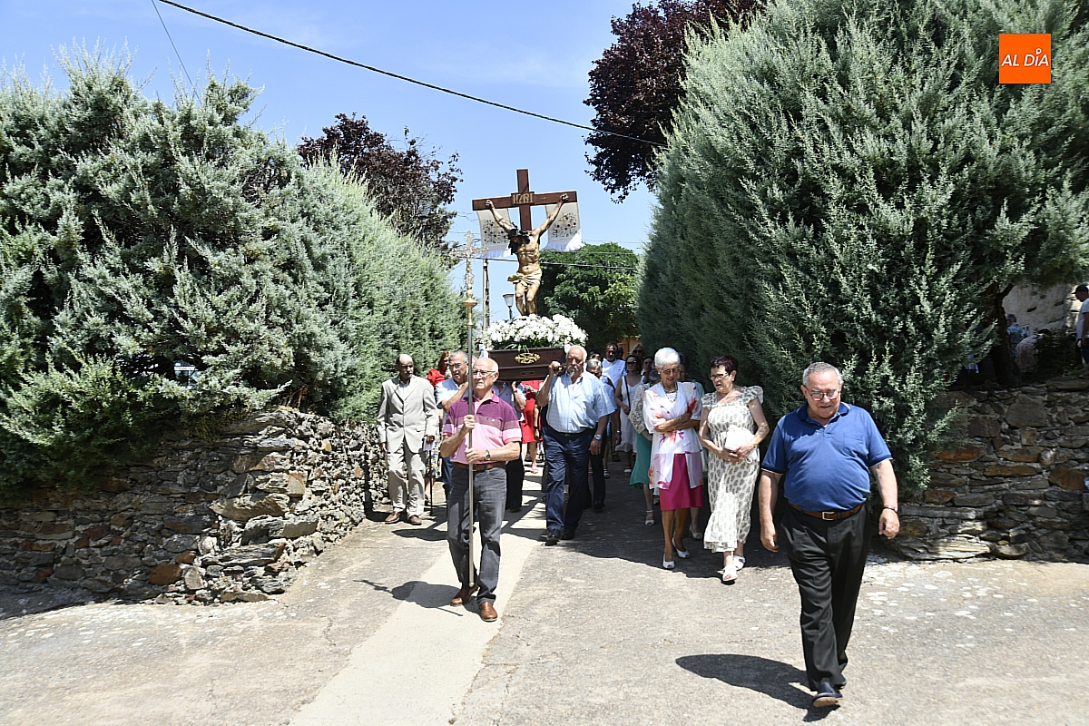 A continuación, tuvo lugar la procesión por las calles del pueblo, presidida por la venerada imagen del Cristo Crucificado. El cortejo, envuelto en un ambiente de respeto y silencio solo roto por los cantos populares, estuvo acompañado por los sones tradicionales de un tamborilero, que interpretó melodías propias salmantinas y con aires de la subcomarca de El Rebollar, acentuando el carácter identitario de la celebración.