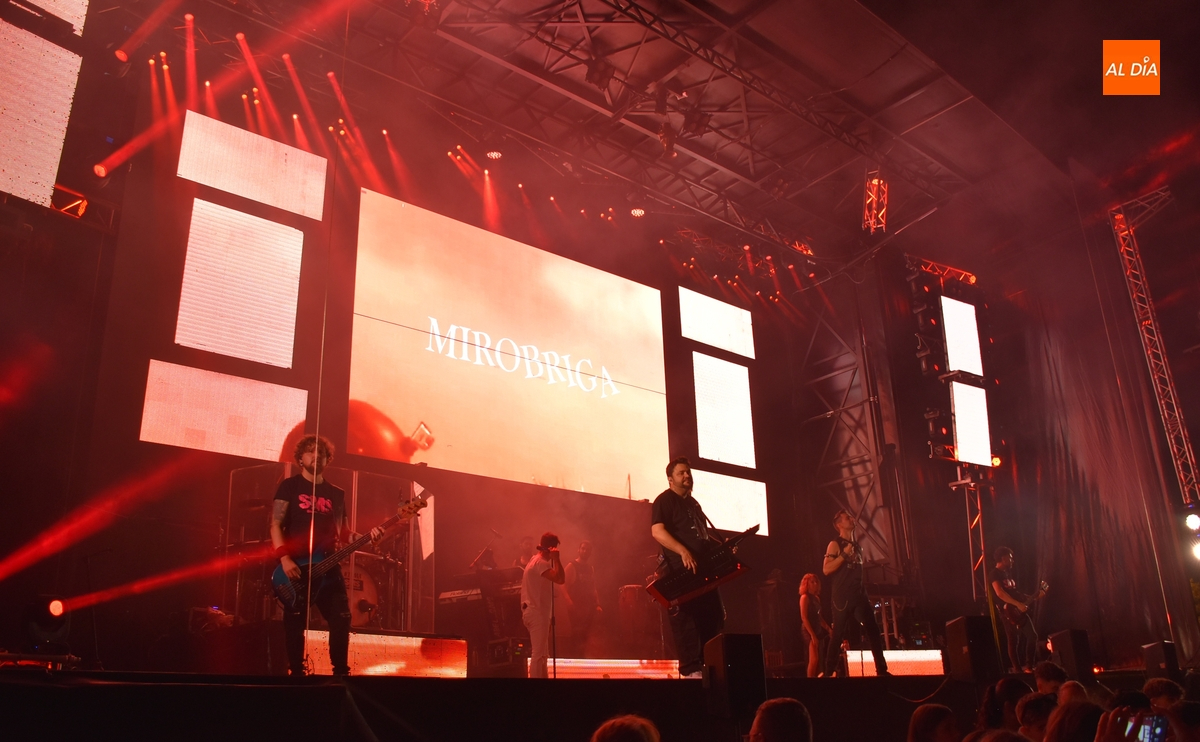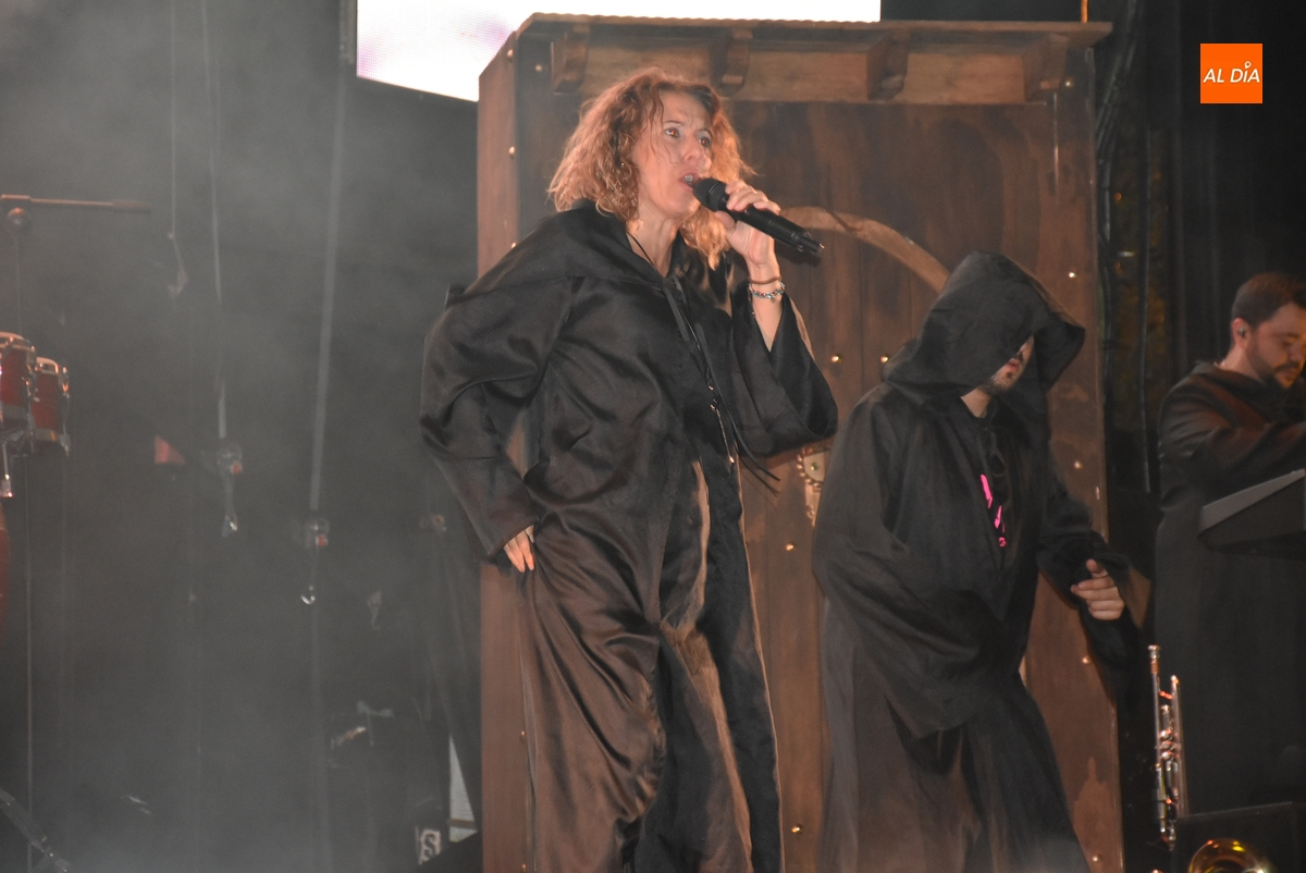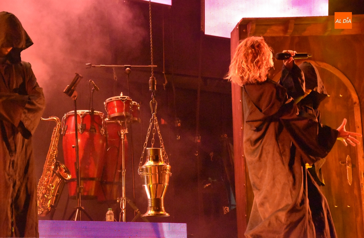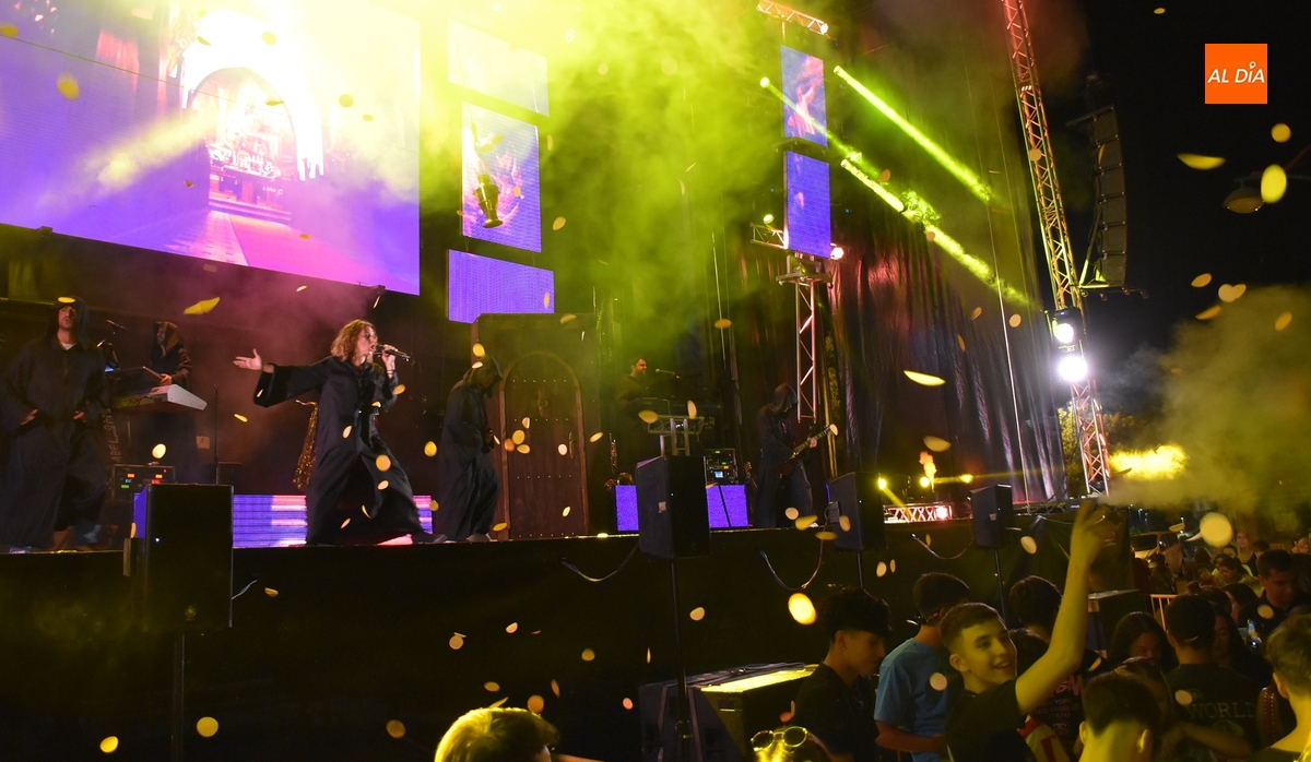 Ese camión-escenario se desplegó un año más en la confluencia de las calles Lorenza Iglesias y Laguna, acercándose hasta el lugar cientos y cientos de mirobrigenses y forasteros de todas las edades, que para abrir la velada visionaron el vídeo promocional de la temporada 2025 de SMS, en torno a cuya temática ‘mística’ (la gira se denomina ‘Mystic Tour’) giró el arranque del show, con ‘botafumeiro’ incluido sobre el escenario.