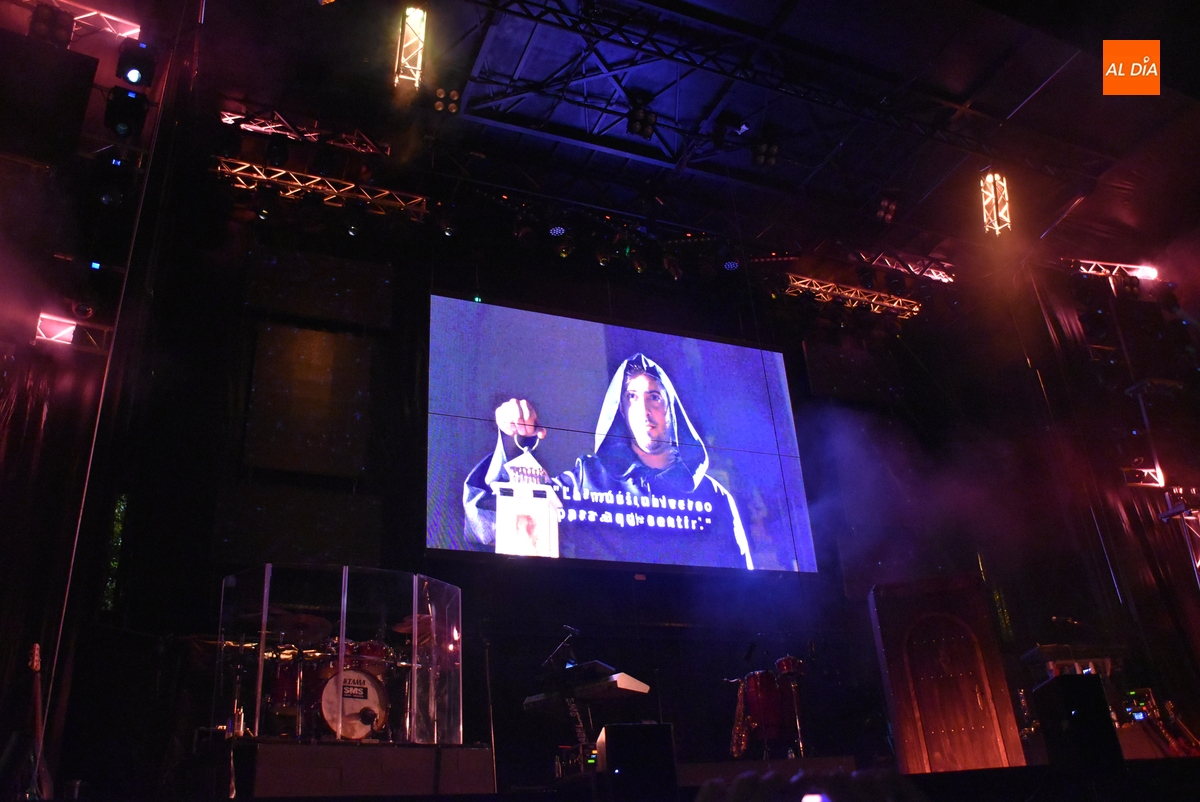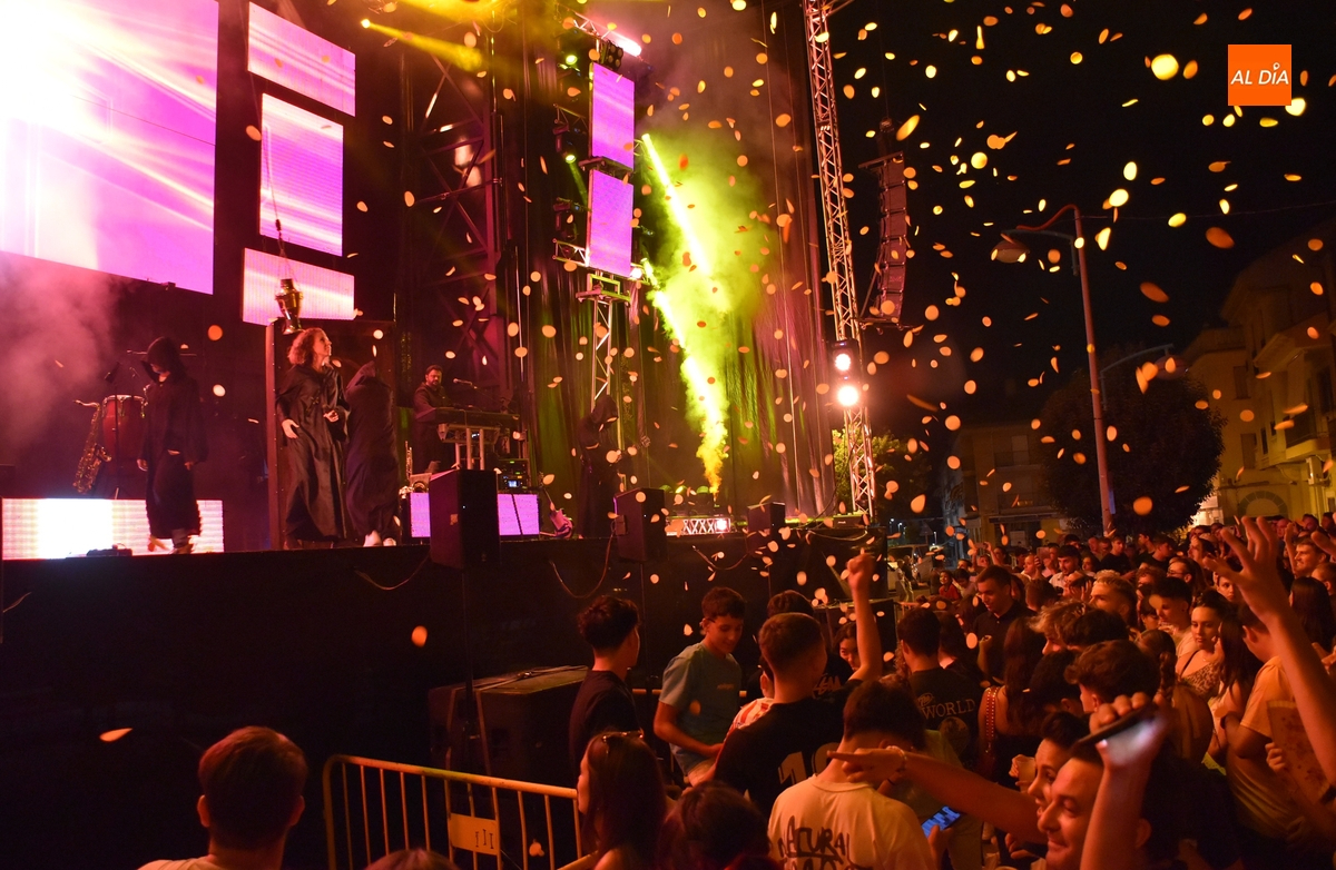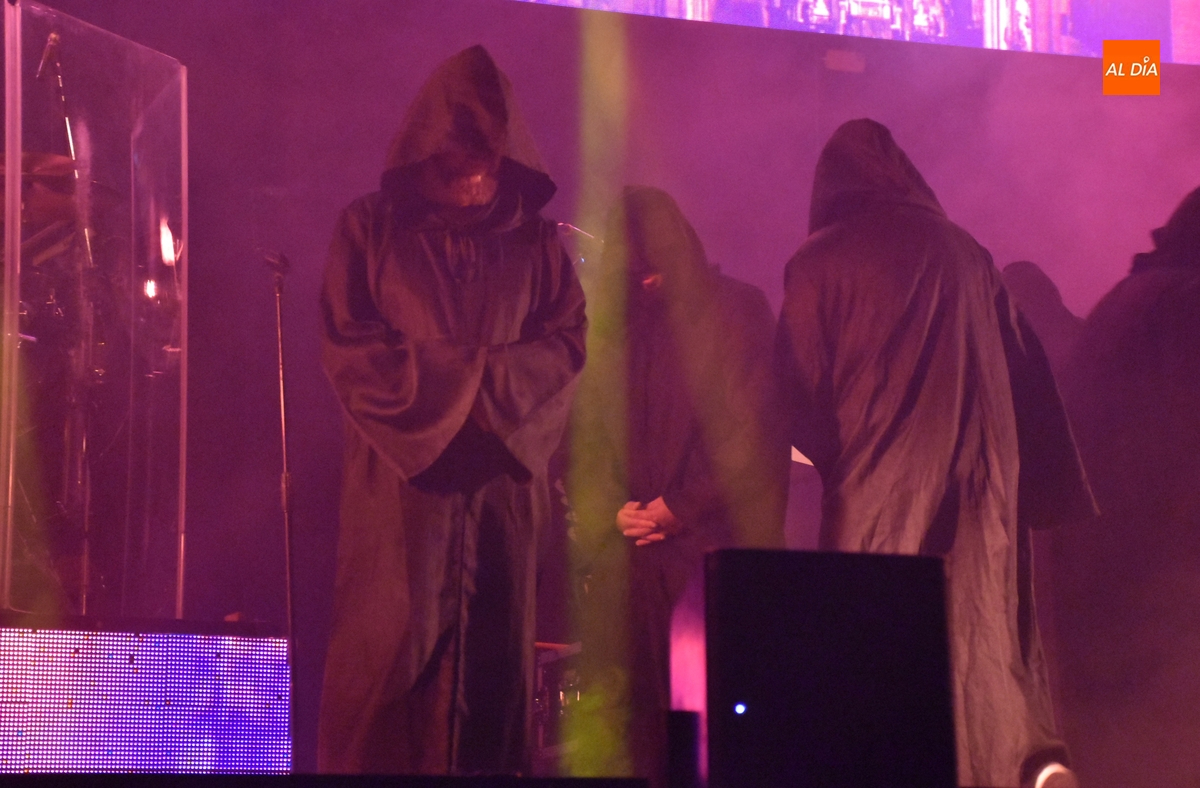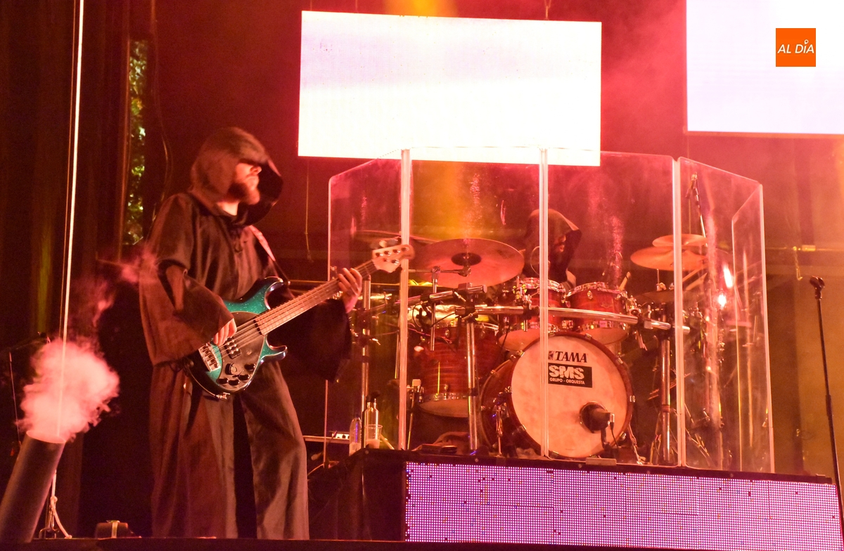 Ese camión-escenario se desplegó un año más en la confluencia de las calles Lorenza Iglesias y Laguna, acercándose hasta el lugar cientos y cientos de mirobrigenses y forasteros de todas las edades, que para abrir la velada visionaron el vídeo promocional de la temporada 2025 de SMS, en torno a cuya temática ‘mística’ (la gira se denomina ‘Mystic Tour’) giró el arranque del show, con ‘botafumeiro’ incluido sobre el escenario.