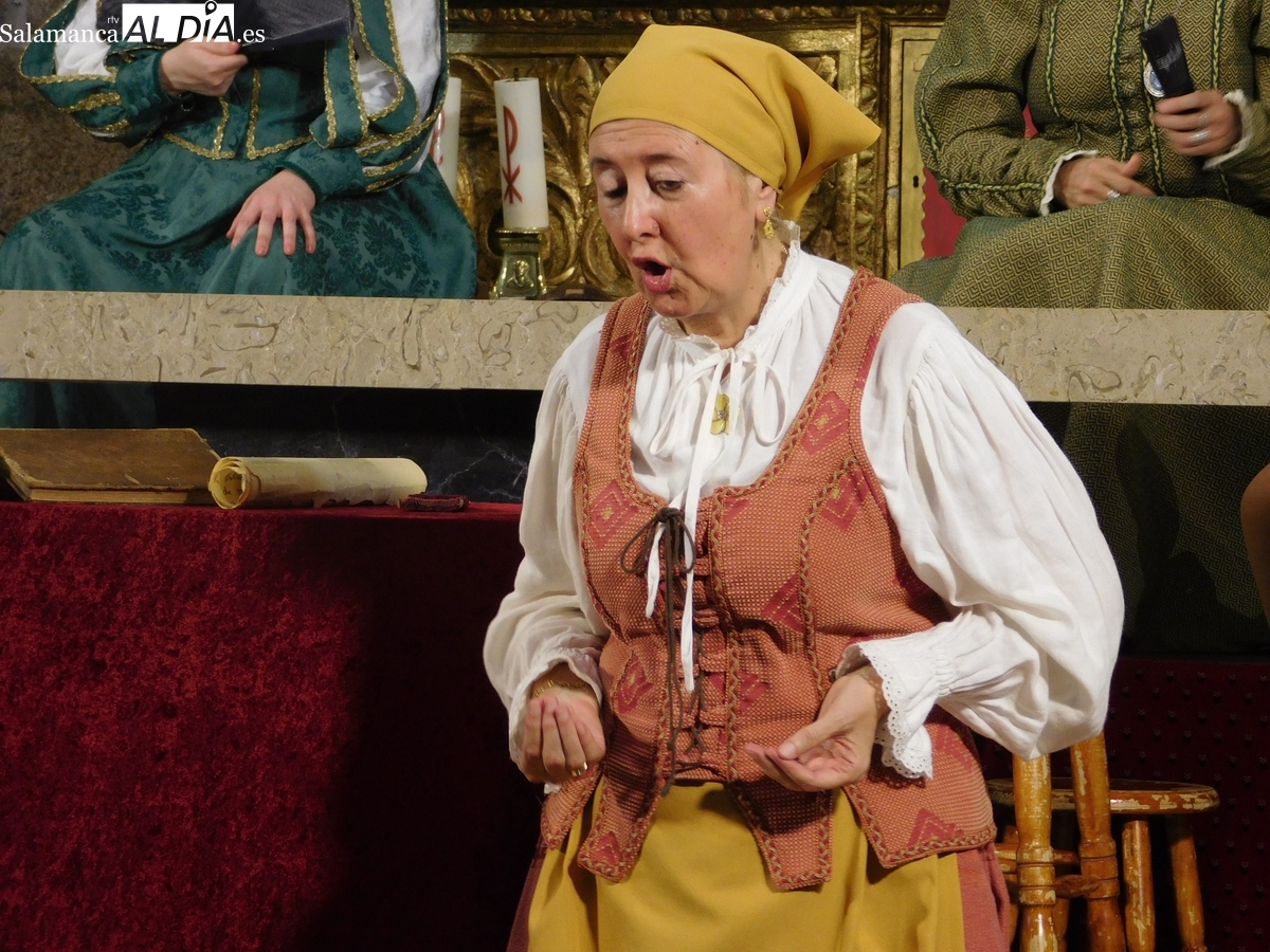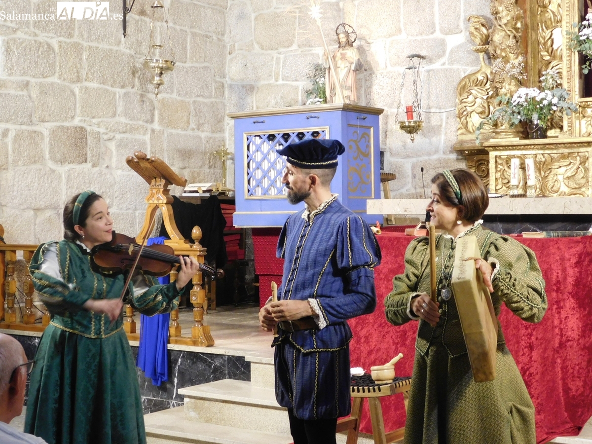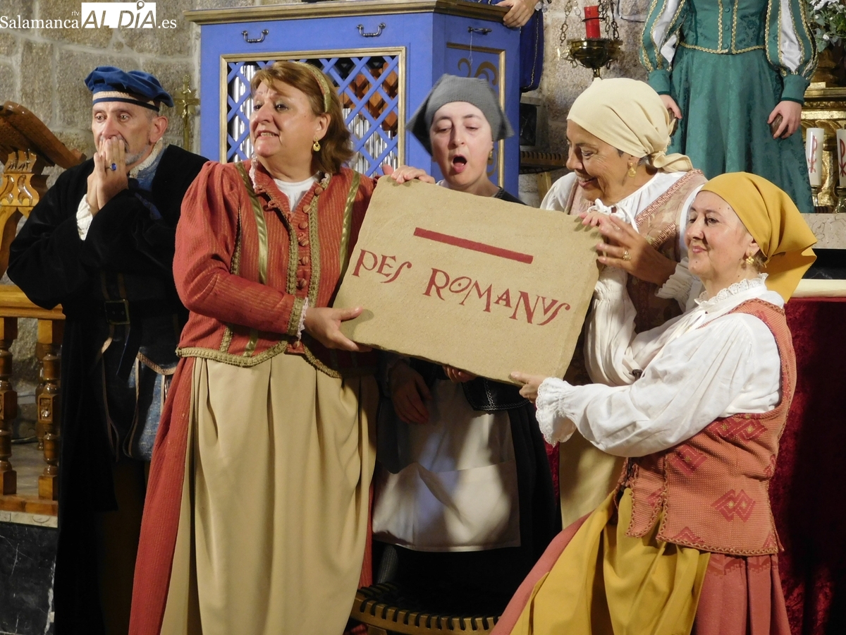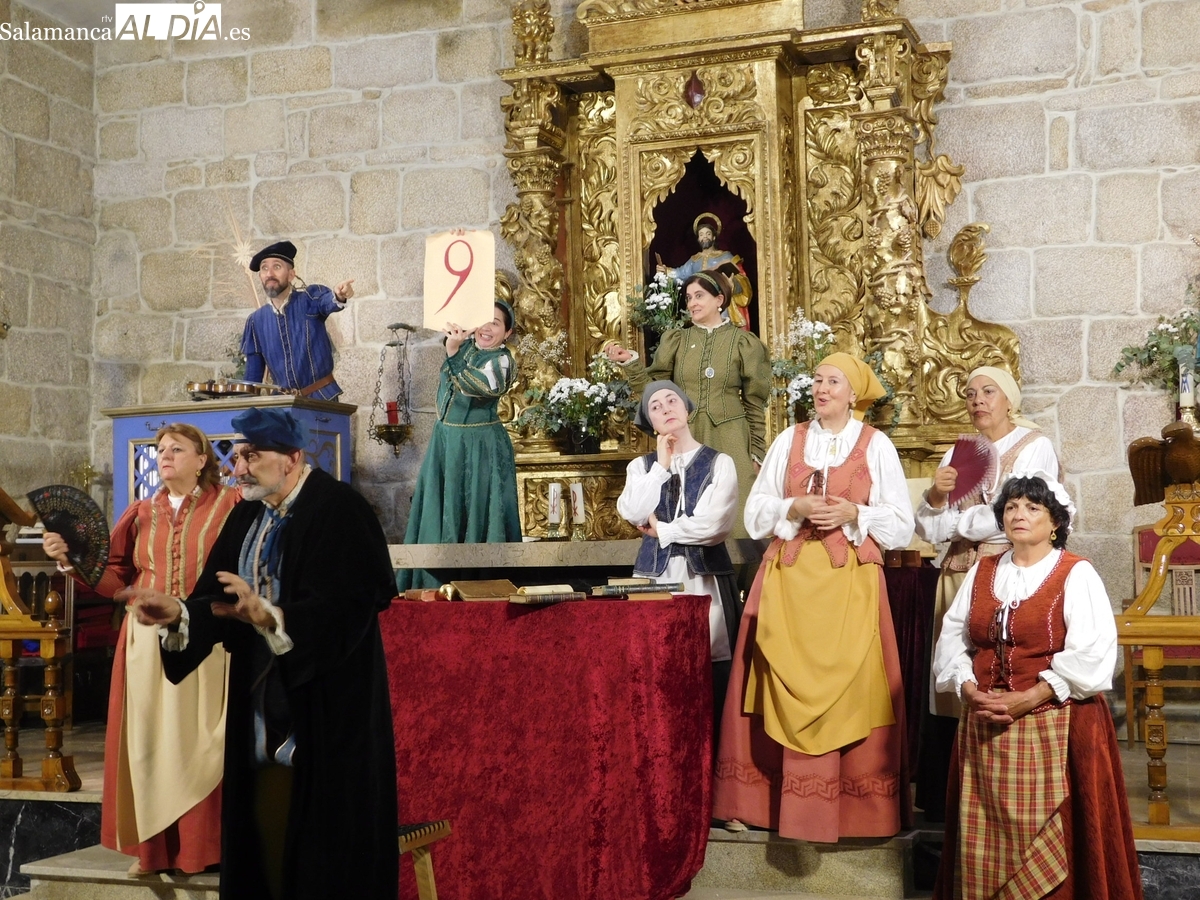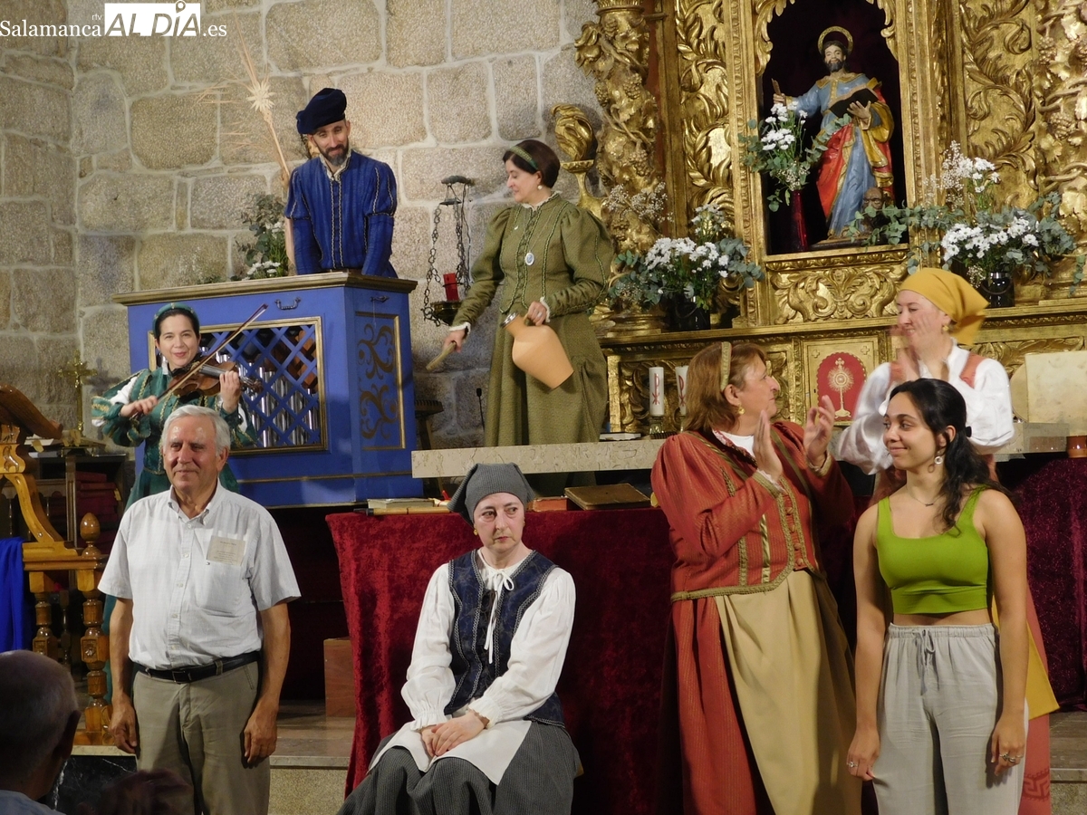 La iglesia San Marcos de Cerezal de Peñahorcada se llenó ayer de colorido, sorpresas y luz, con la visita del grupo de teatro 'Lazarillo de Tormes', que ya en su función 281 de la obra Buscando a Nebrija, agasajó a los habitantes del pueblo y visitantes que, a pesar del mucho calor, se conmovieron, rieron y conectaron totalmente con las actrices, actores y músicos que les invitaron a un viaje por la vida y obra de Nebrija, como si se hubiera abierto una puerta al pasado para contemplar la historia desde muy de cerca.