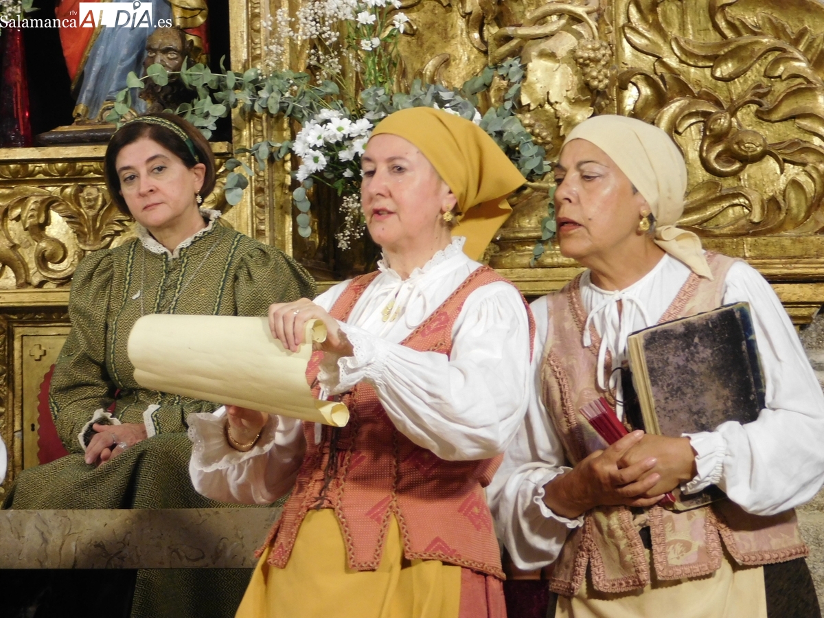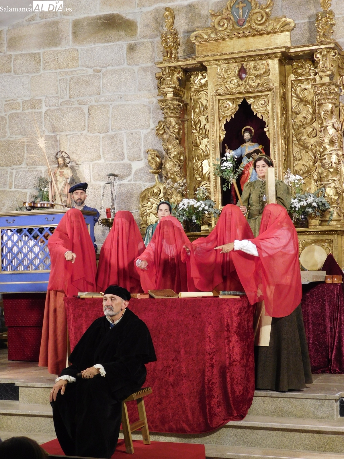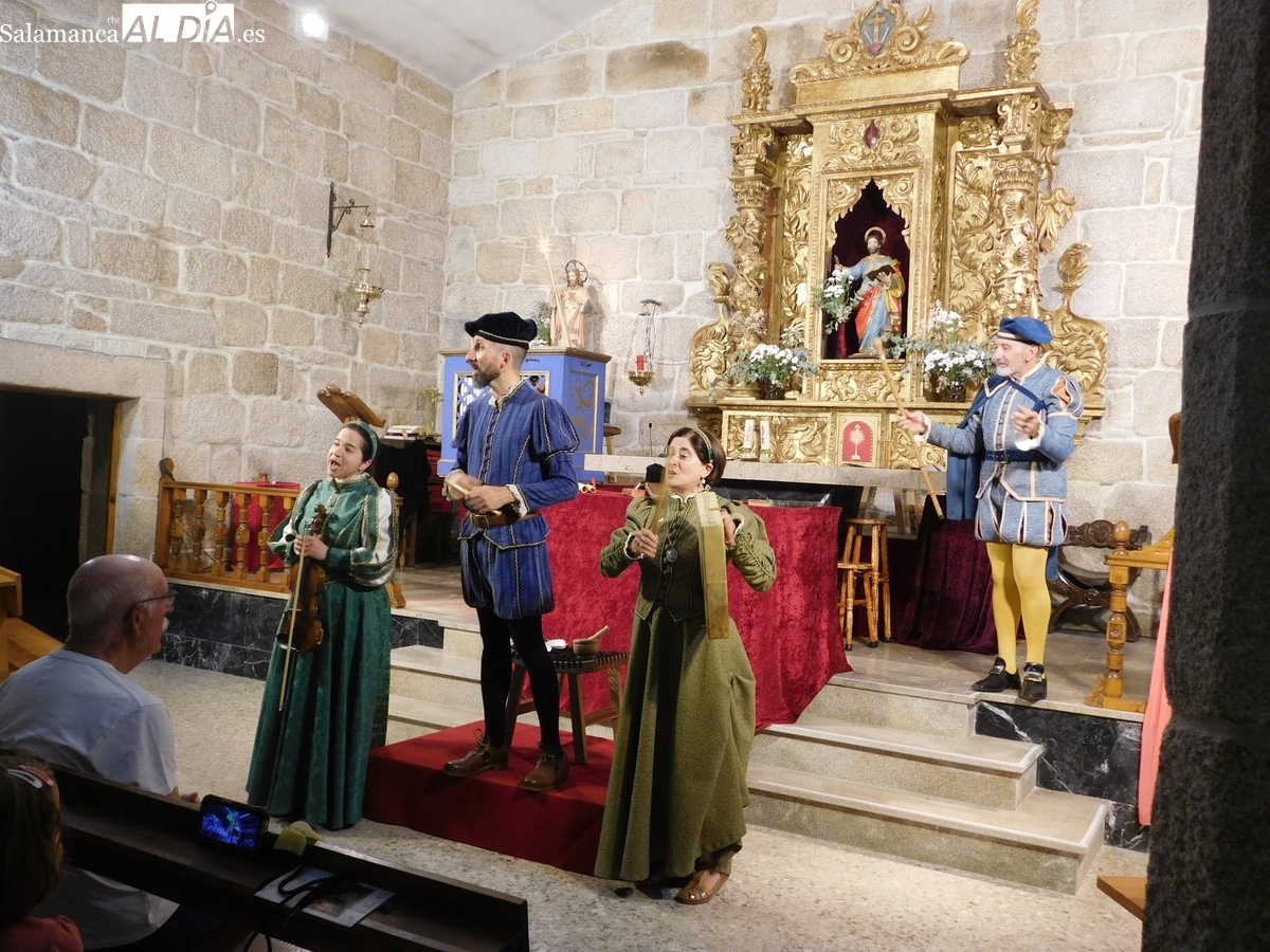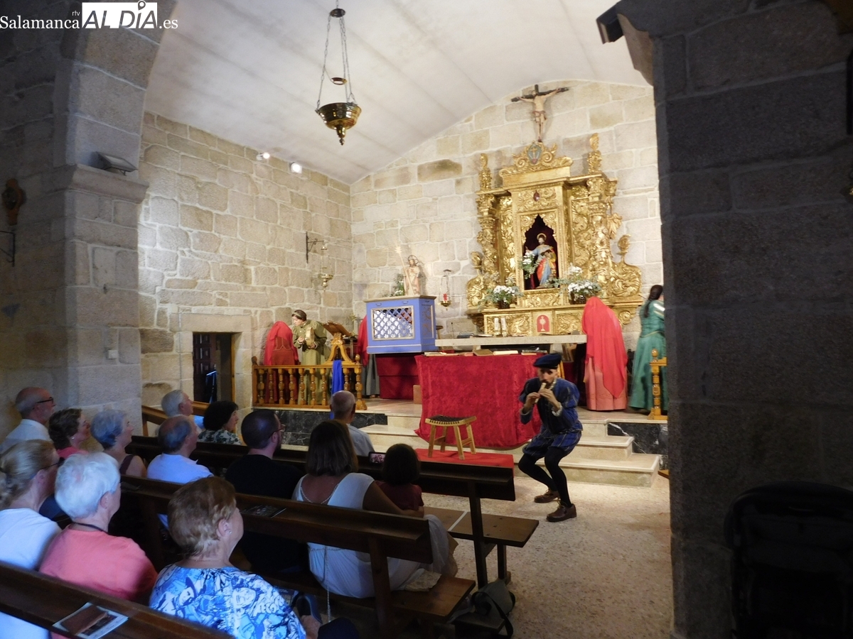 La iglesia San Marcos de Cerezal de Peñahorcada se llenó ayer de colorido, sorpresas y luz, con la visita del grupo de teatro 'Lazarillo de Tormes', que ya en su función 281 de la obra Buscando a Nebrija, agasajó a los habitantes del pueblo y visitantes que, a pesar del mucho calor, se conmovieron, rieron y conectaron totalmente con las actrices, actores y músicos que les invitaron a un viaje por la vida y obra de Nebrija, como si se hubiera abierto una puerta al pasado para contemplar la historia desde muy de cerca.