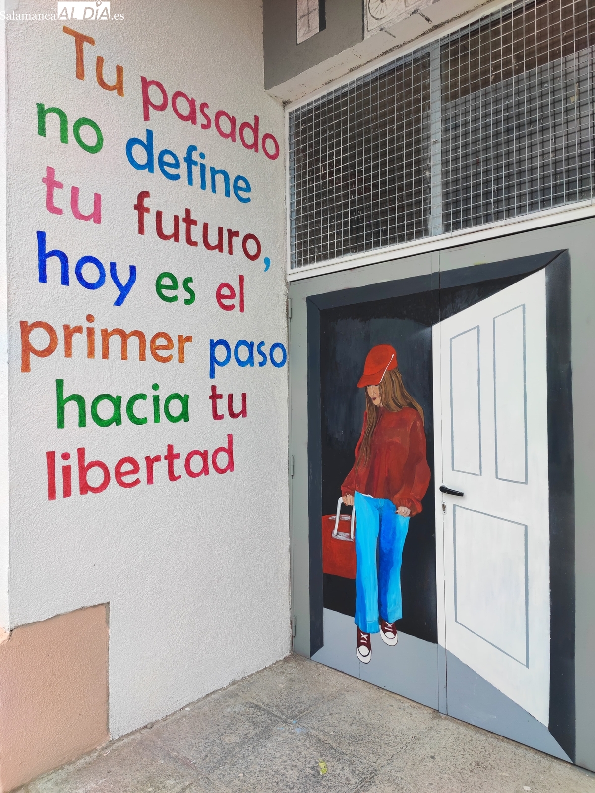 La obra, del artista local José Luis García Grandes, representa la valiente decisión de una mujer de abandonar una situación de maltrato para iniciar una nueva vida, utilizando colores vivos como símbolo de esperanza.