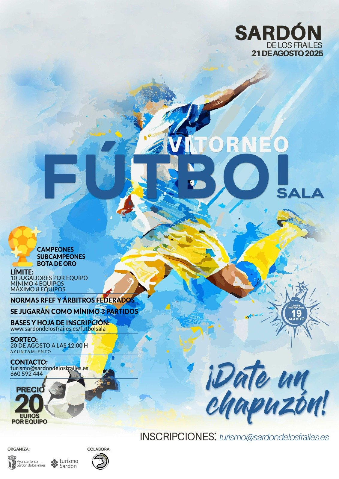 Sardón de los Frailes acogerá el 21 de agosto el VI Torneo de Fútbol Sala, lo que demuestra un año más el compromiso firme de este municipio con las actividades deportivas.