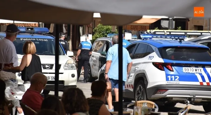 El incidente ocurrió escasos minutos después de las 11.00 horas, cuando una patrulla de la Policía Local se encontraba en la Plaza Mayor para hacer cumplir la normativa vigente en la misma en julio y agosto, que marca que los vehículos no pueden aparcar, debiendo además ir rectos desde Julián Sánchez hasta Sánchez Arjona, con la única salvedad de los vehículos de carga y descarga, que pueden hacerlo por las mañanas de 8.00 a 11.00 horas, lo que acaba siendo ‘aprovechado’ por otros vehículos.