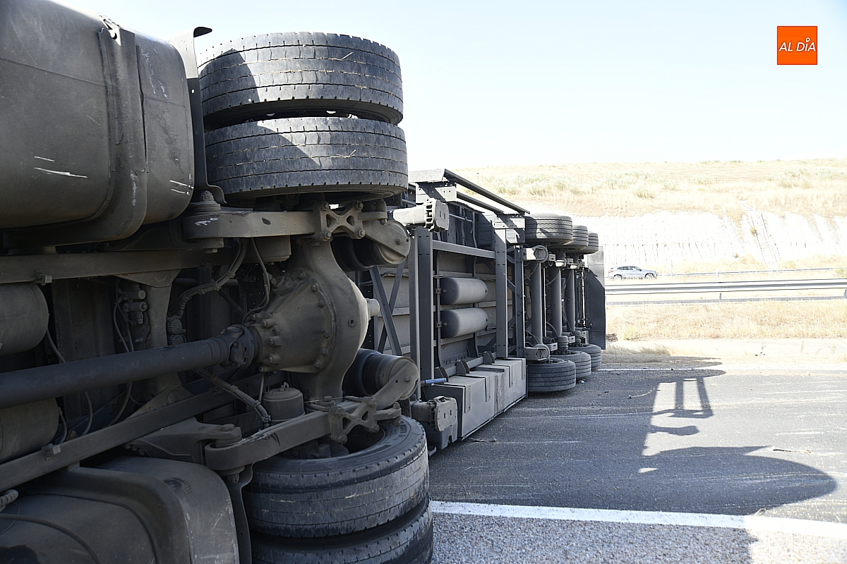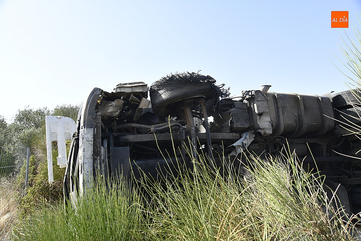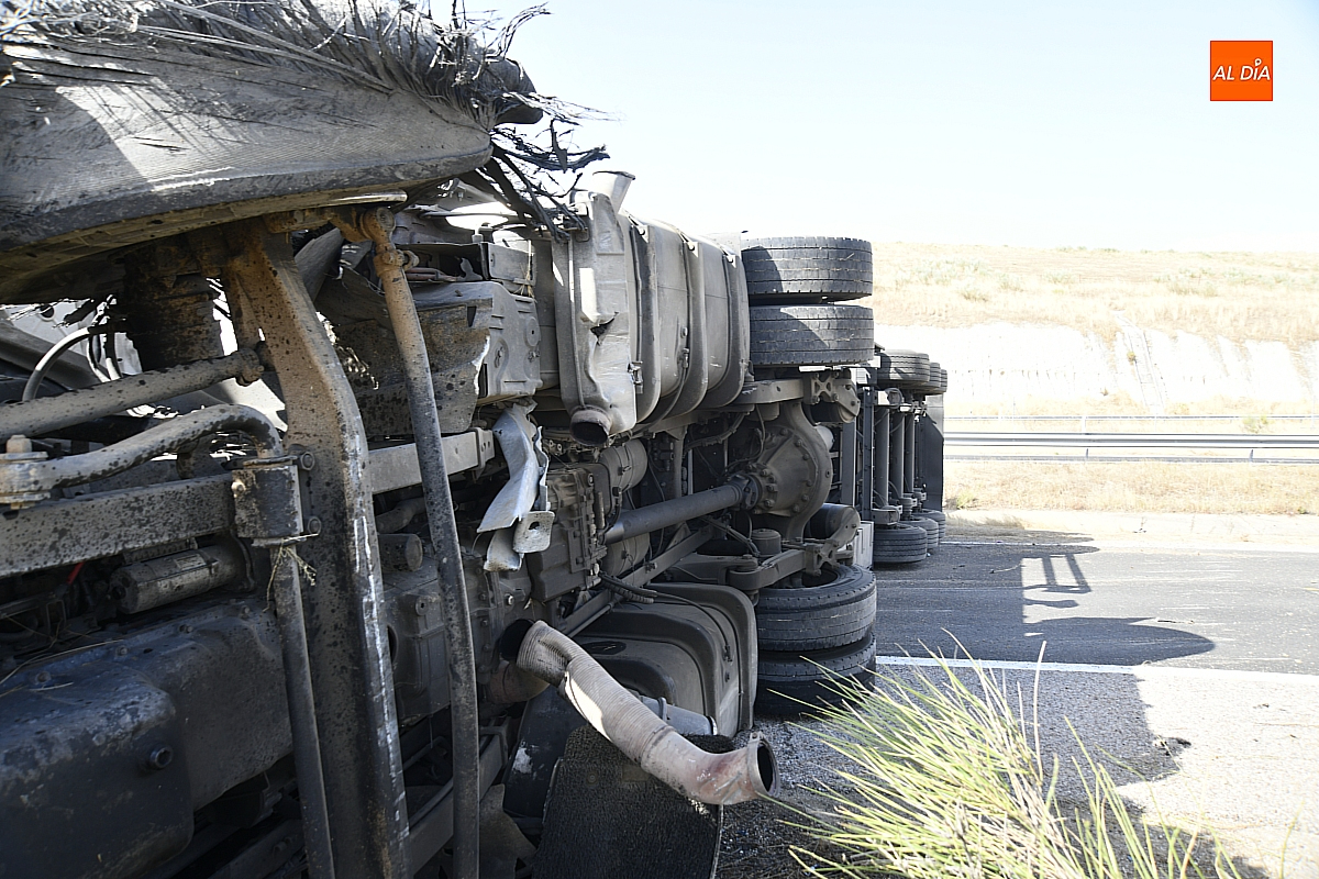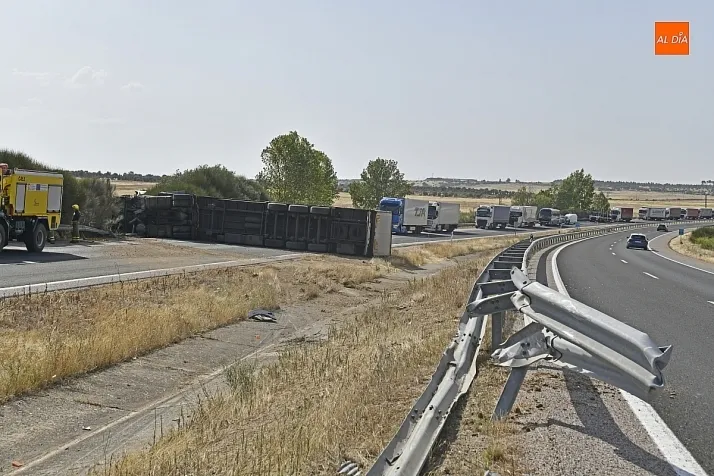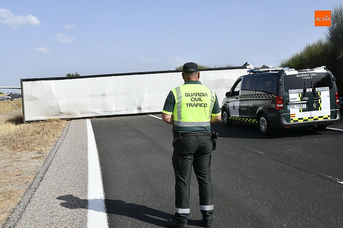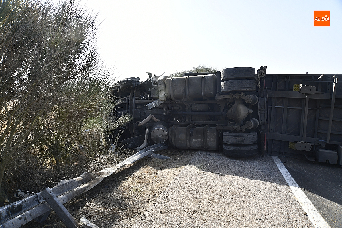 El conductor perdió el control del vehículo, que se fue contra la mediana, atravesándola e invadiendo el otro sentido de la circulación (dirección Salamanca), donde volcó. De forma casi milagrosa, pese al volumen de tráfico que registra estos días la A-62, en ese momento no pasaba ningún otro vehículo por ese otro sentido, dándole además tiempo a frenar a los siguientes que llegaron a ese punto. De este modo, el accidente se saldó sin daños personales, ya que el conductor del camión resultó ileso.