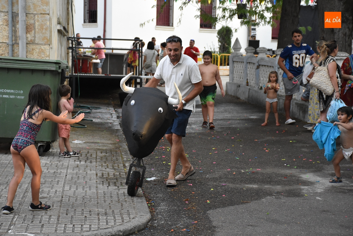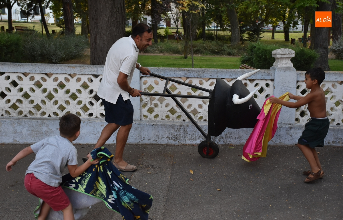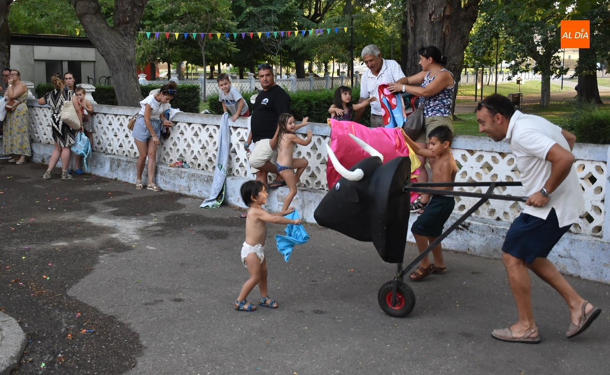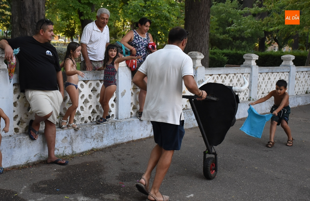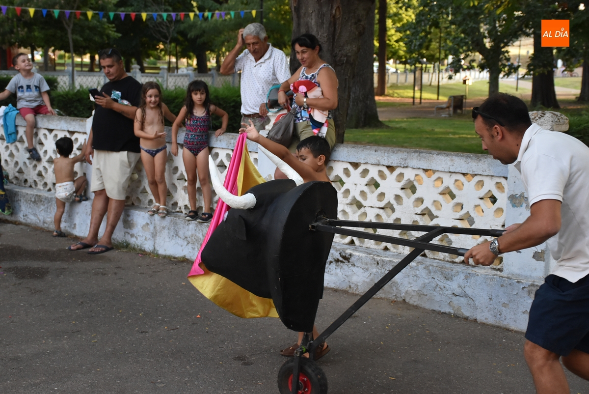 Los más pequeños tuvieron su hueco en el tramo final de la tarde del sábado en las fiestas de las que está disfrutando durante este fin de semana el barrio de San Andrés de Ciudad Rodrigo por iniciativa de su Asociación de Vecinos. Este bloque infantil, al que se acercaron varios pequeños acompañados de familiares, incluyó unos refrescantes juegos tanto con agua como con espuma para aliviar el calor reinante, así como carretones, dándolo todo algunos chavales, incluso capote en mano.