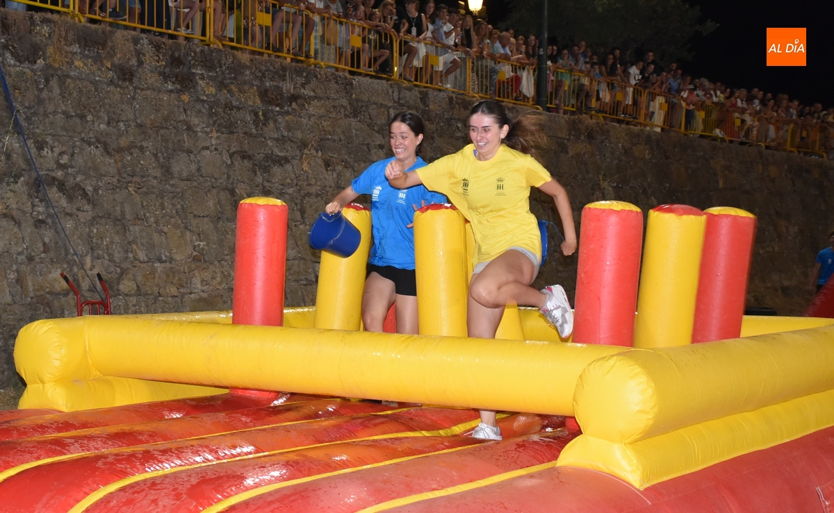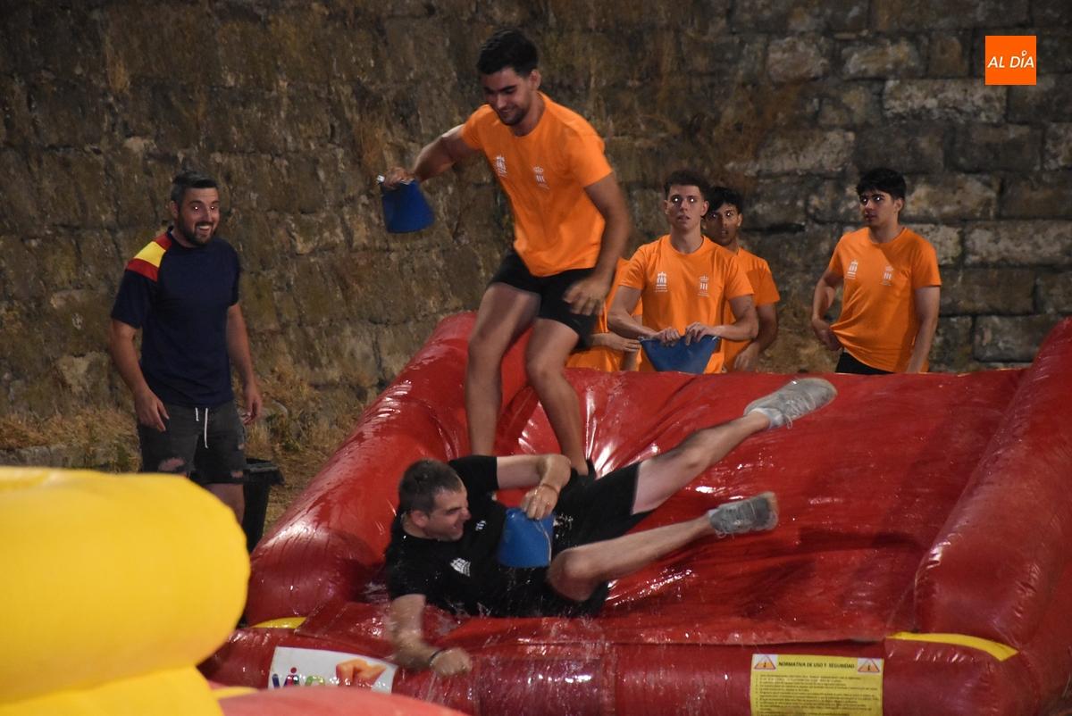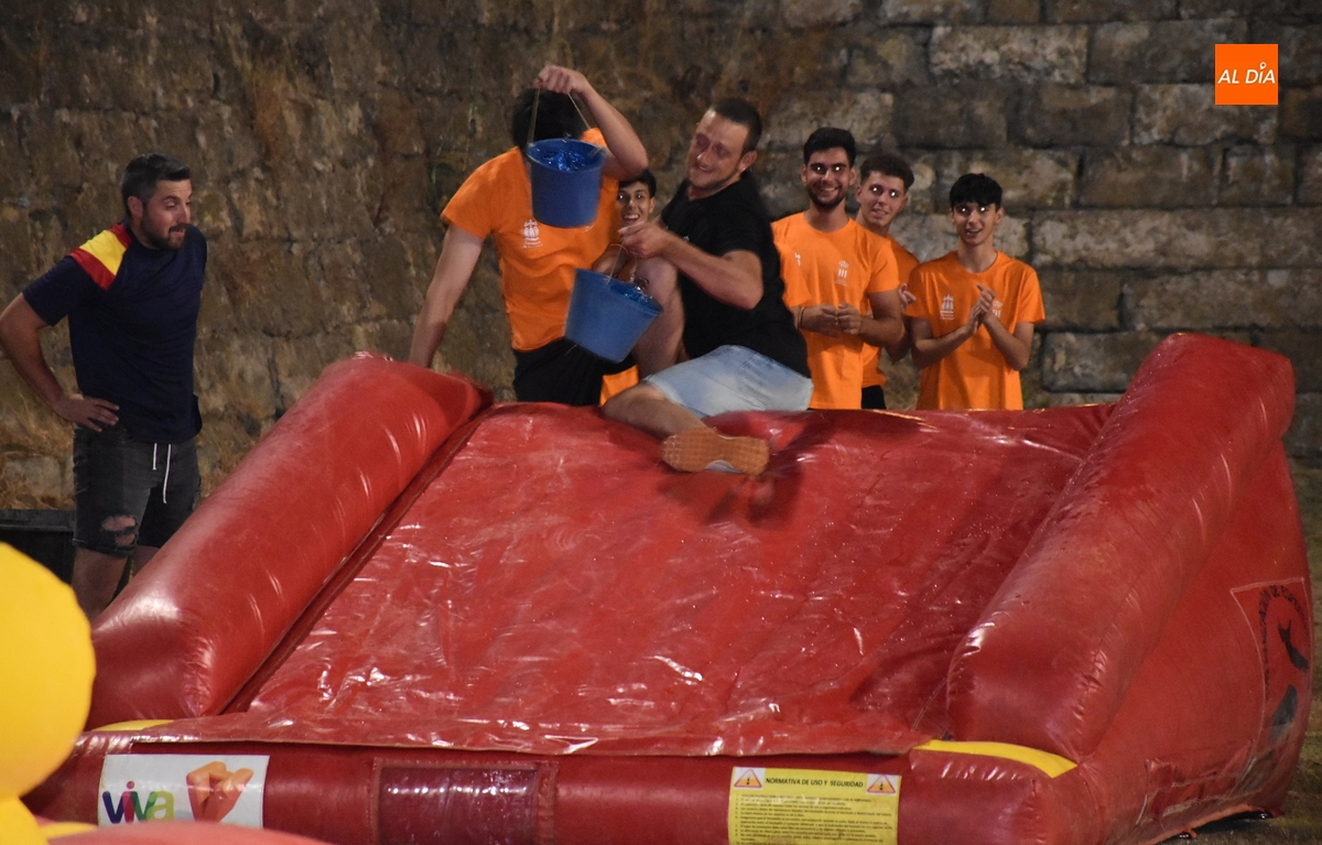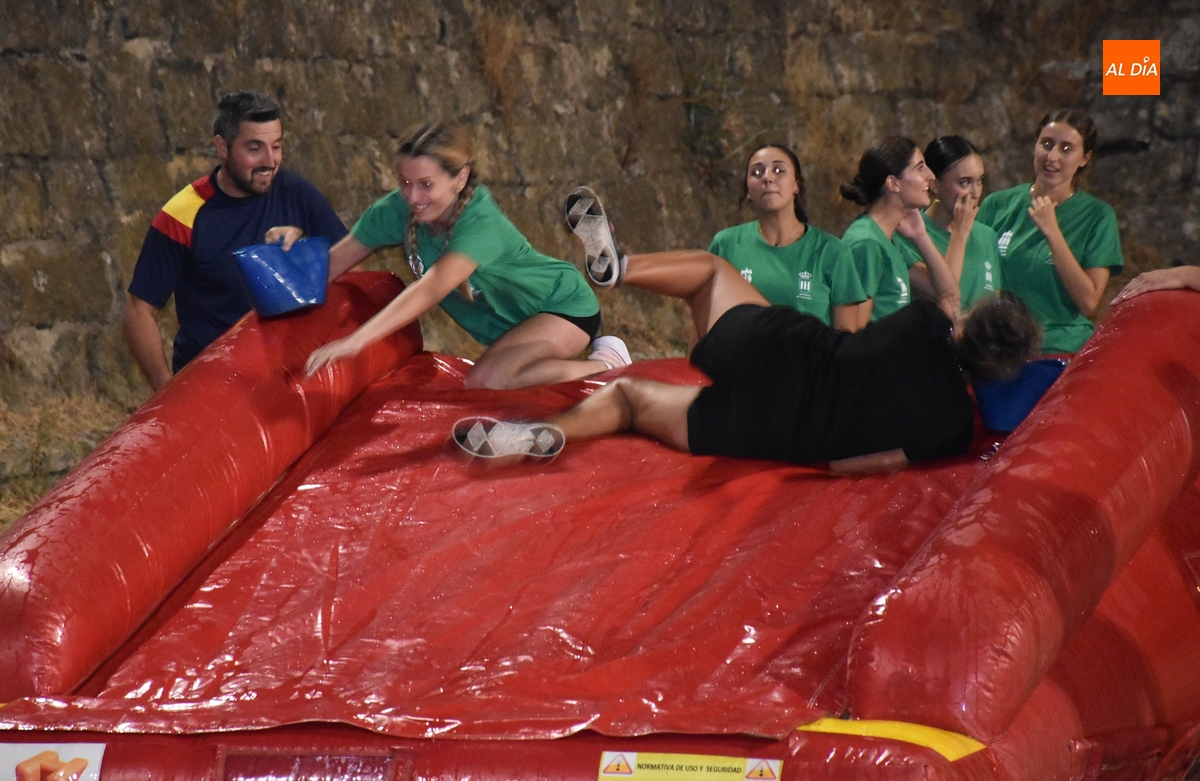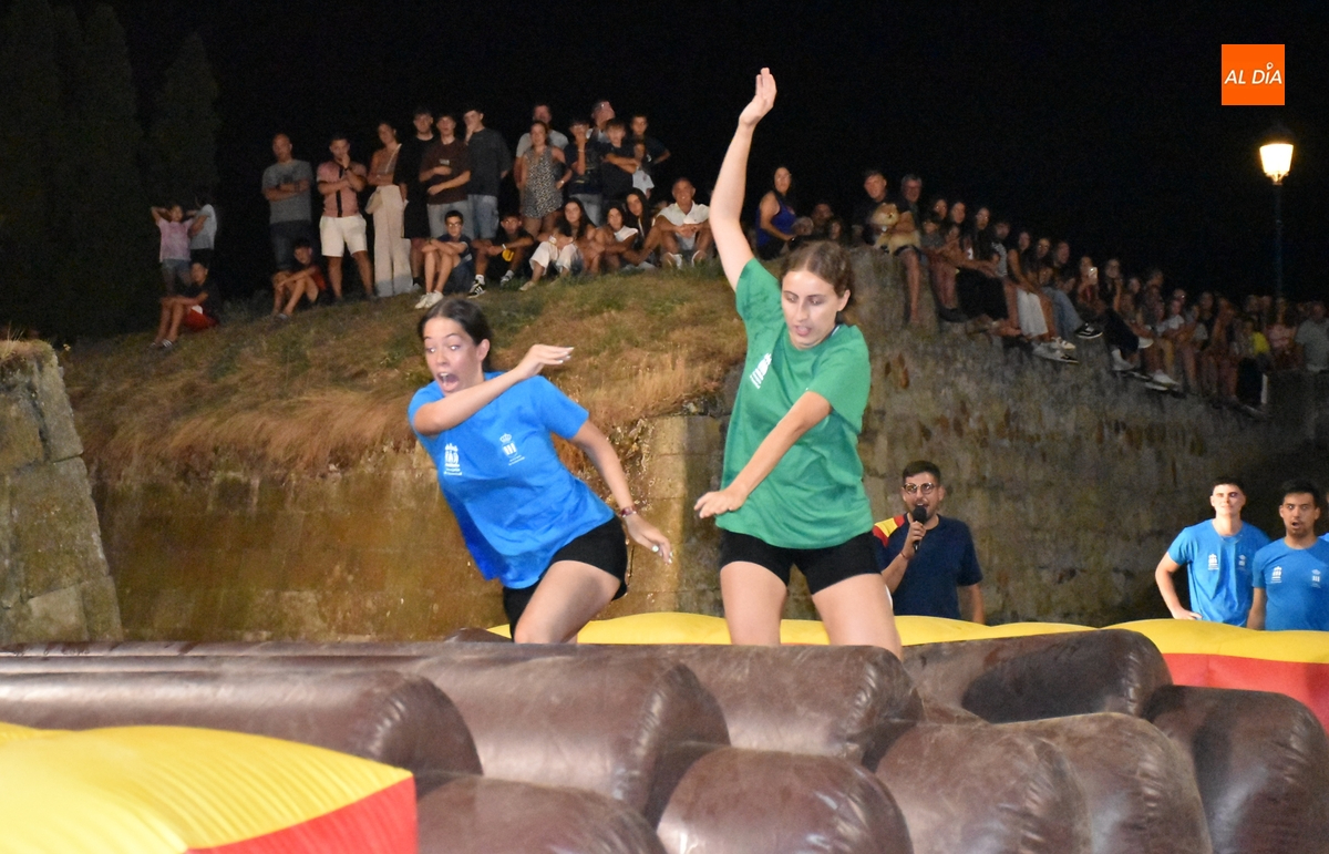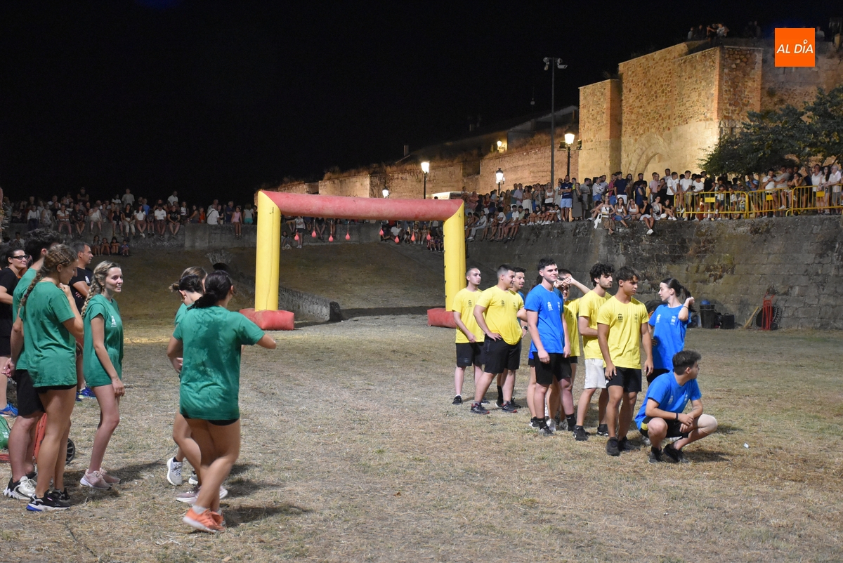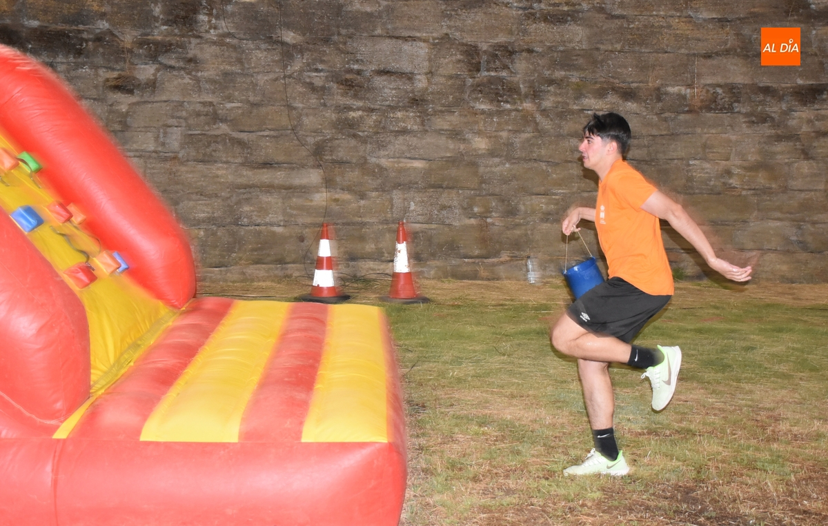 Tras unas palabras de bienvenida de la delegada de Juventud, Ana María Castaño, los equipos hicieron su entrada en el foso desde la Rúa del Sol mientras sonaba la intro de presentación, enfrentándose rápidamente al primer juego, compuesto por tres hinchables que tenían que superar manteniendo la mayor cantidad de agua posible en unos cubos. Tras ello hubo otros dos juegos con hinchables, y otro en el que a ciegas intentaron explotar unos globos colgados de un arco.