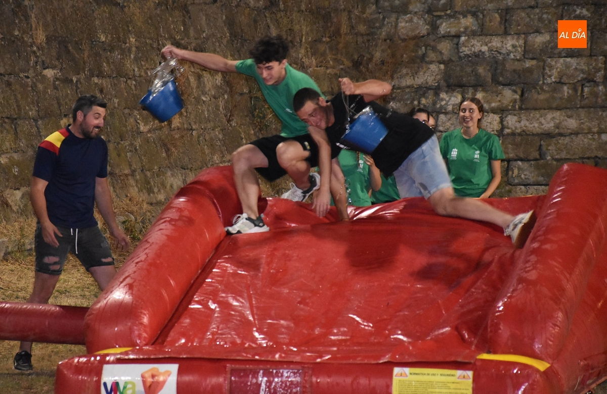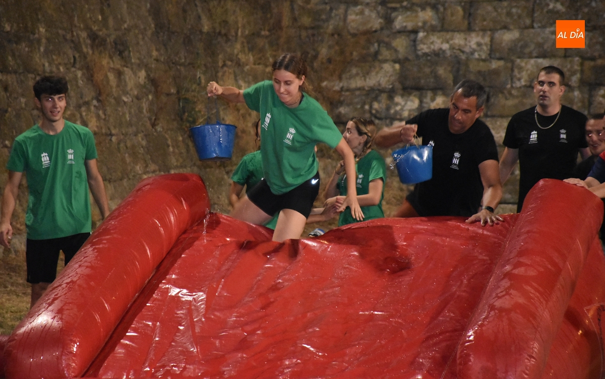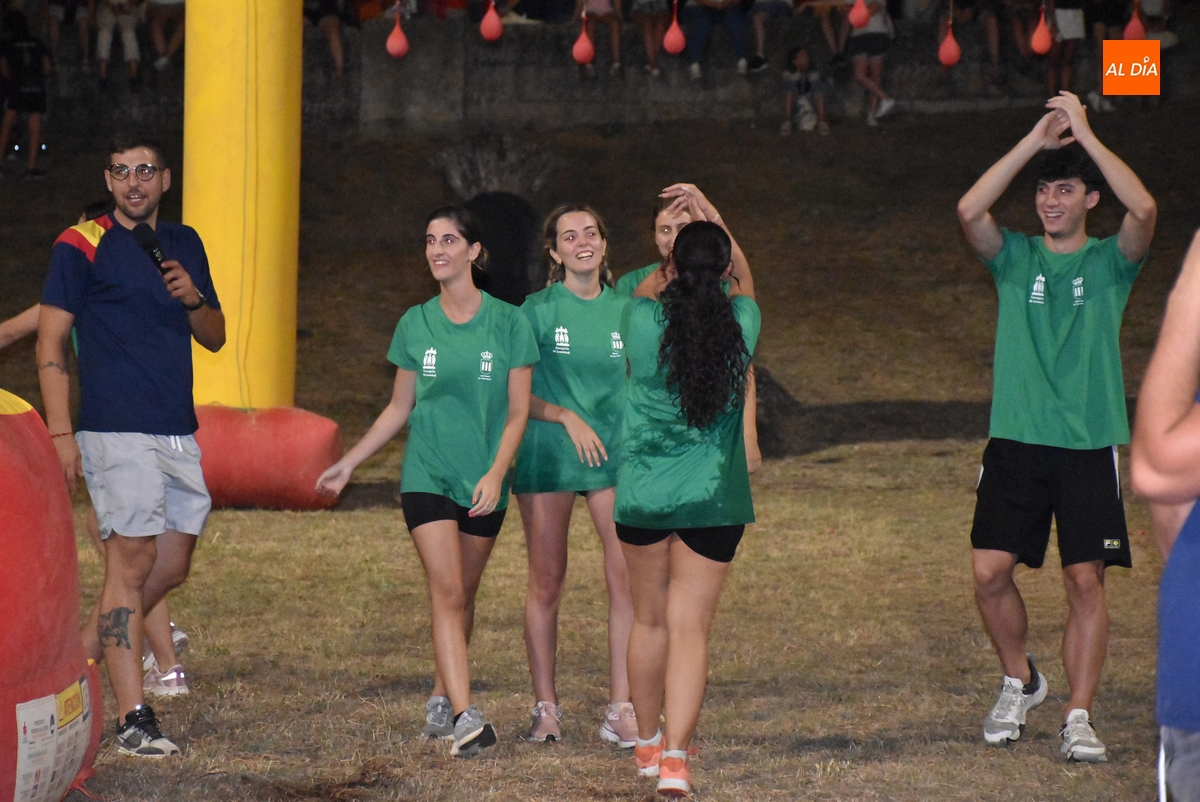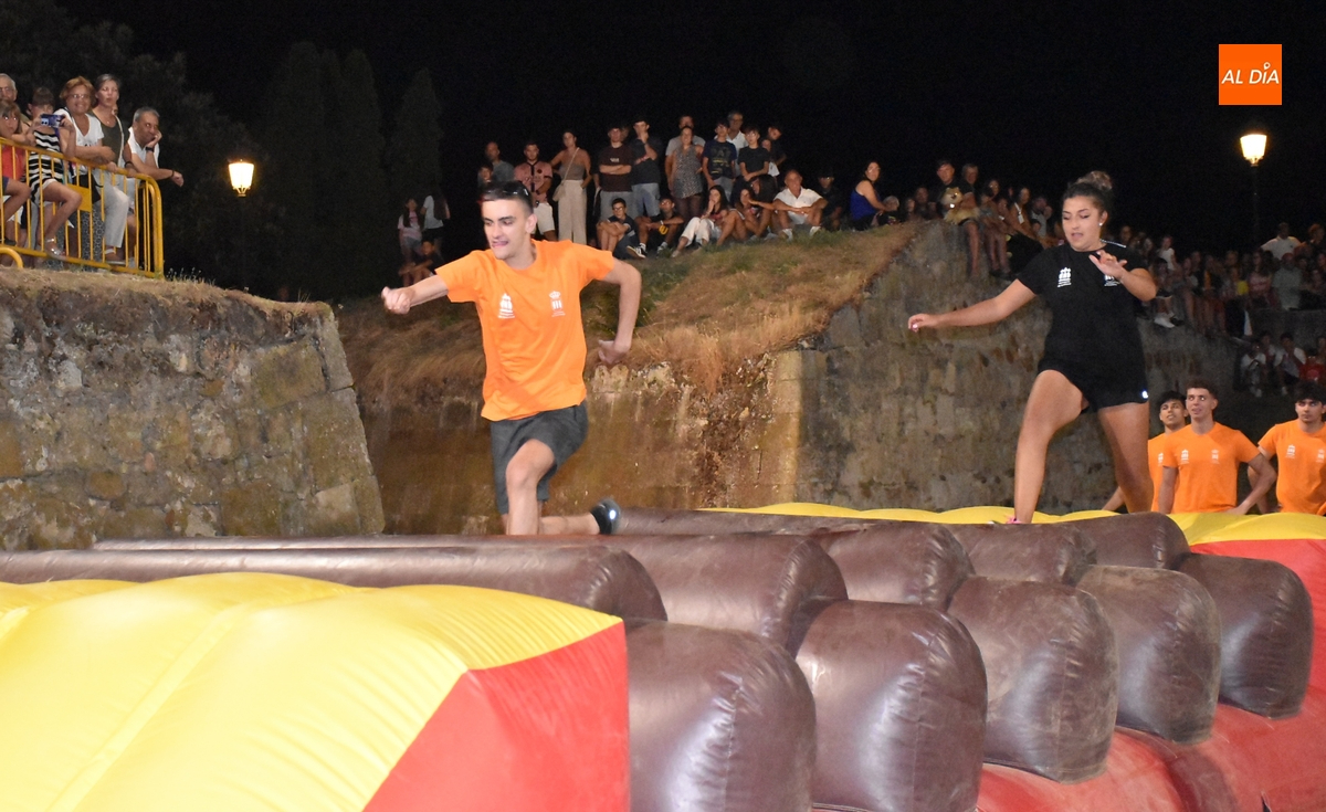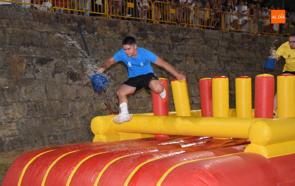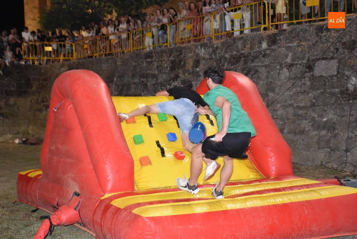 Tras unas palabras de bienvenida de la delegada de Juventud, Ana María Castaño, los equipos hicieron su entrada en el foso desde la Rúa del Sol mientras sonaba la intro de presentación, enfrentándose rápidamente al primer juego, compuesto por tres hinchables que tenían que superar manteniendo la mayor cantidad de agua posible en unos cubos. Tras ello hubo otros dos juegos con hinchables, y otro en el que a ciegas intentaron explotar unos globos colgados de un arco.