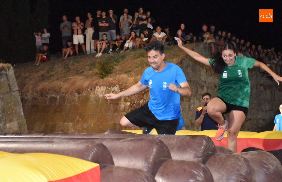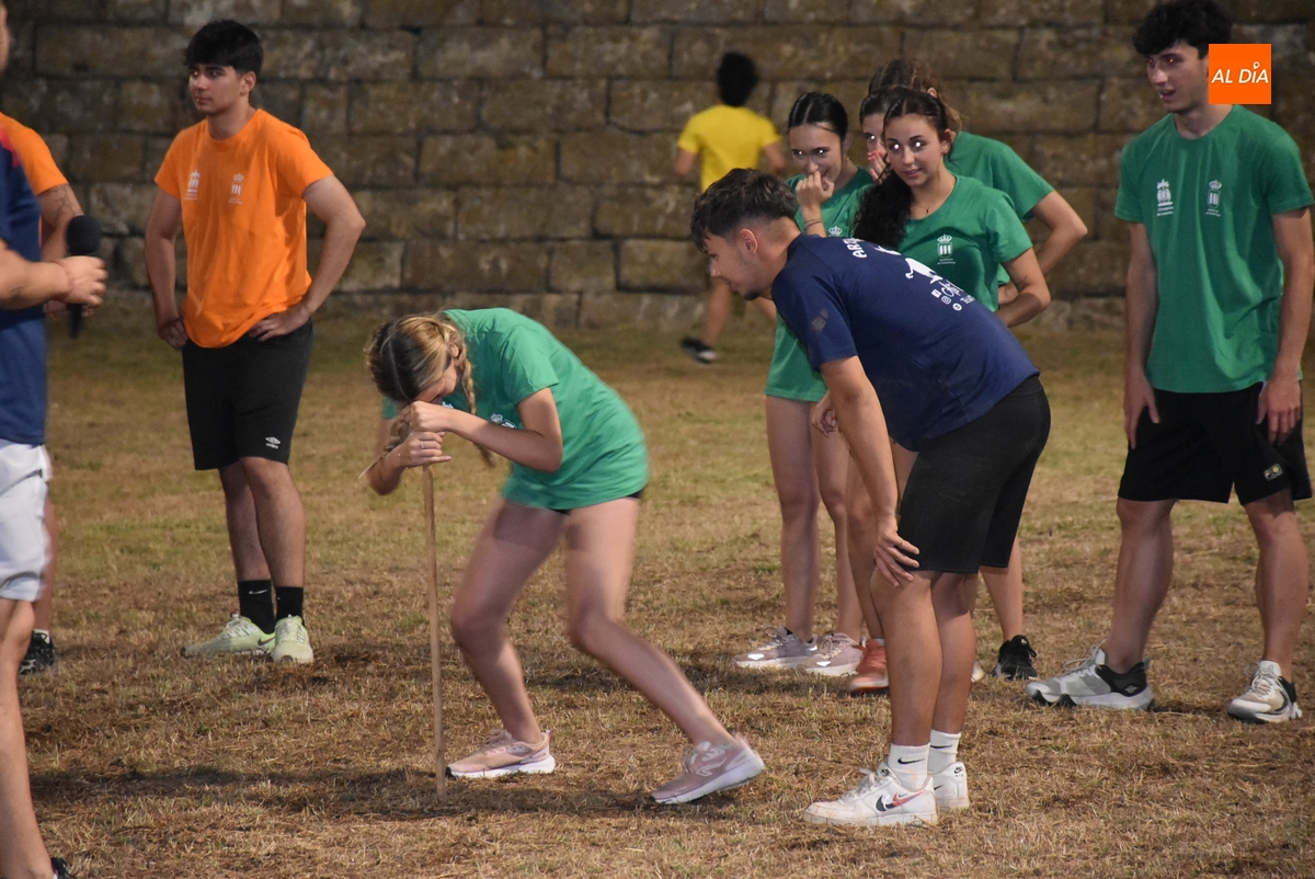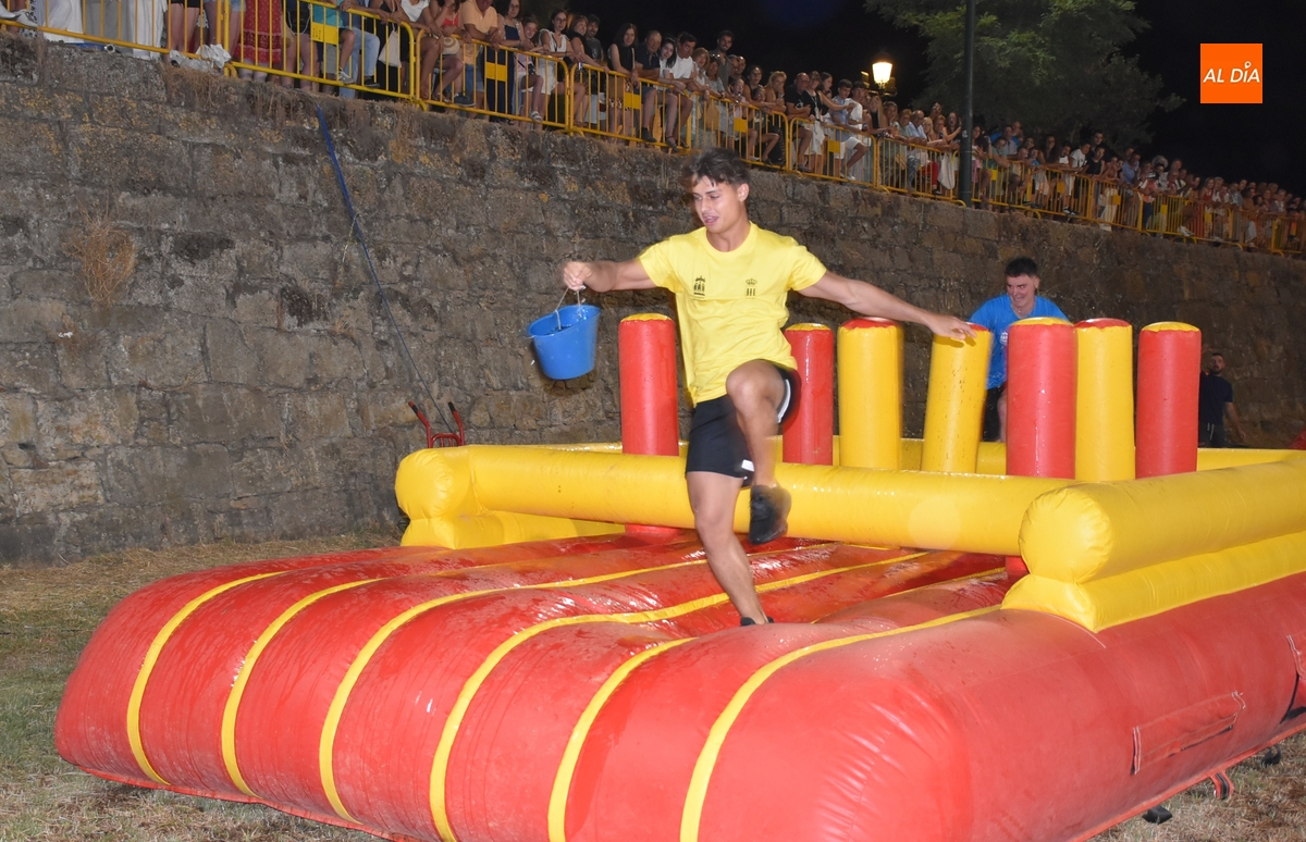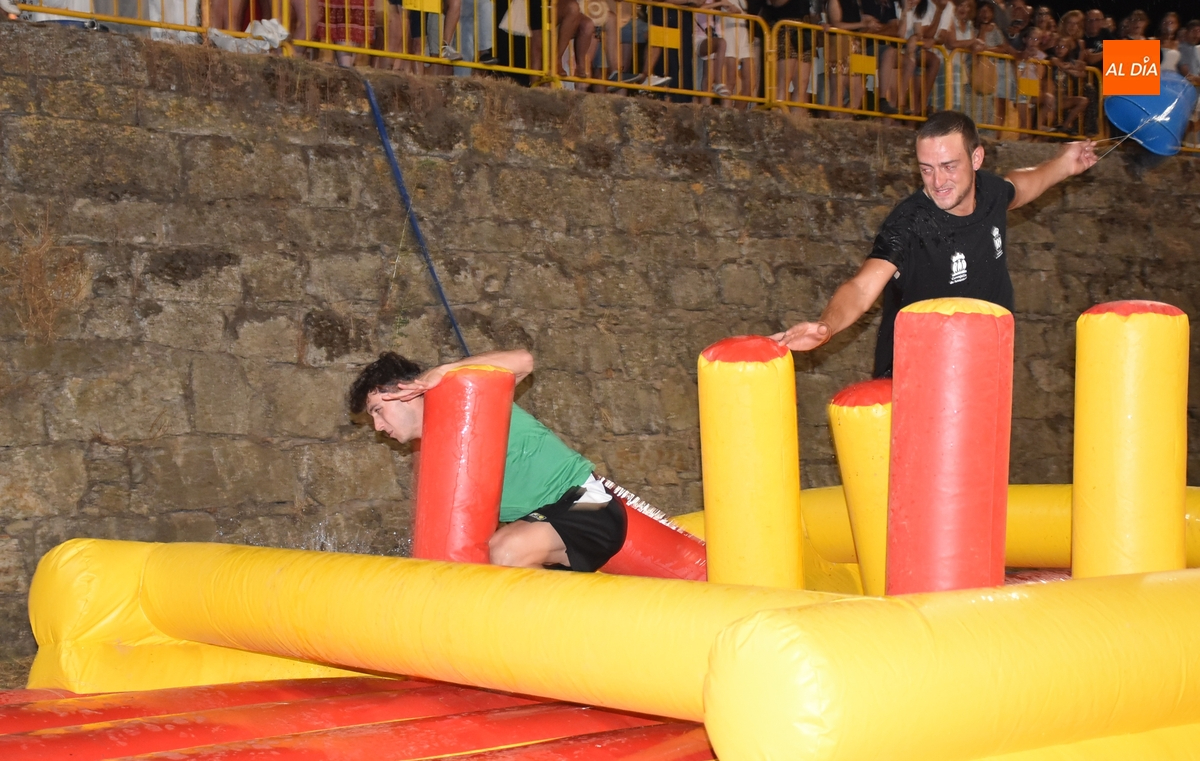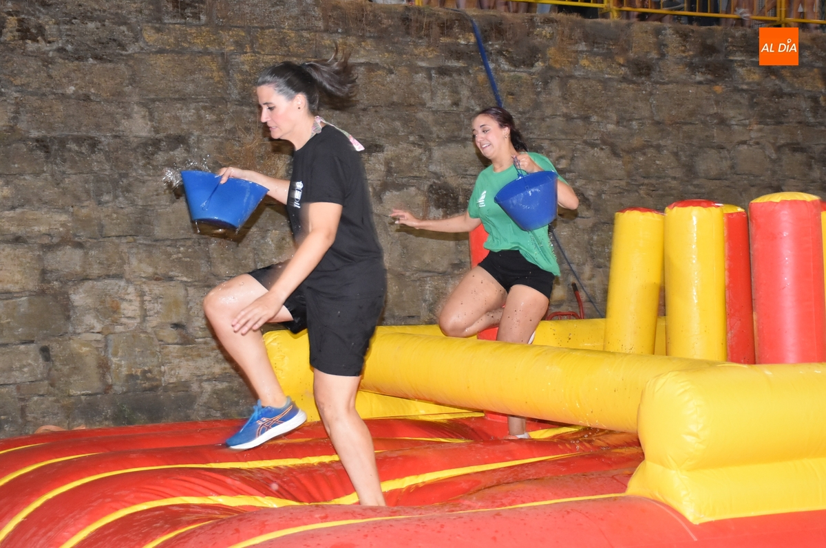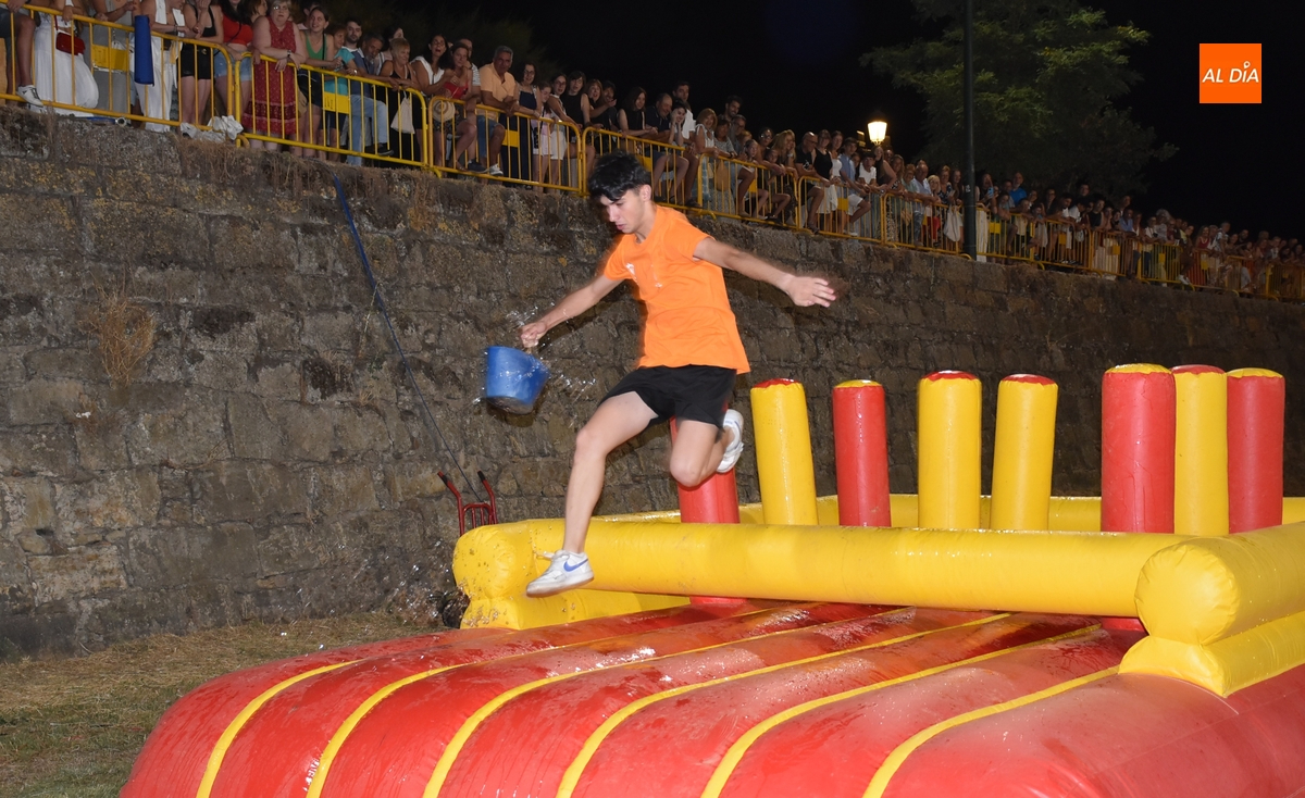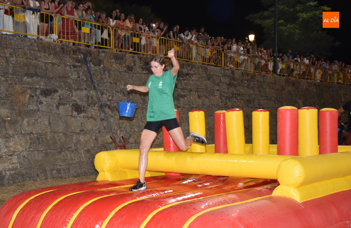 Tras unas palabras de bienvenida de la delegada de Juventud, Ana María Castaño, los equipos hicieron su entrada en el foso desde la Rúa del Sol mientras sonaba la intro de presentación, enfrentándose rápidamente al primer juego, compuesto por tres hinchables que tenían que superar manteniendo la mayor cantidad de agua posible en unos cubos. Tras ello hubo otros dos juegos con hinchables, y otro en el que a ciegas intentaron explotar unos globos colgados de un arco.