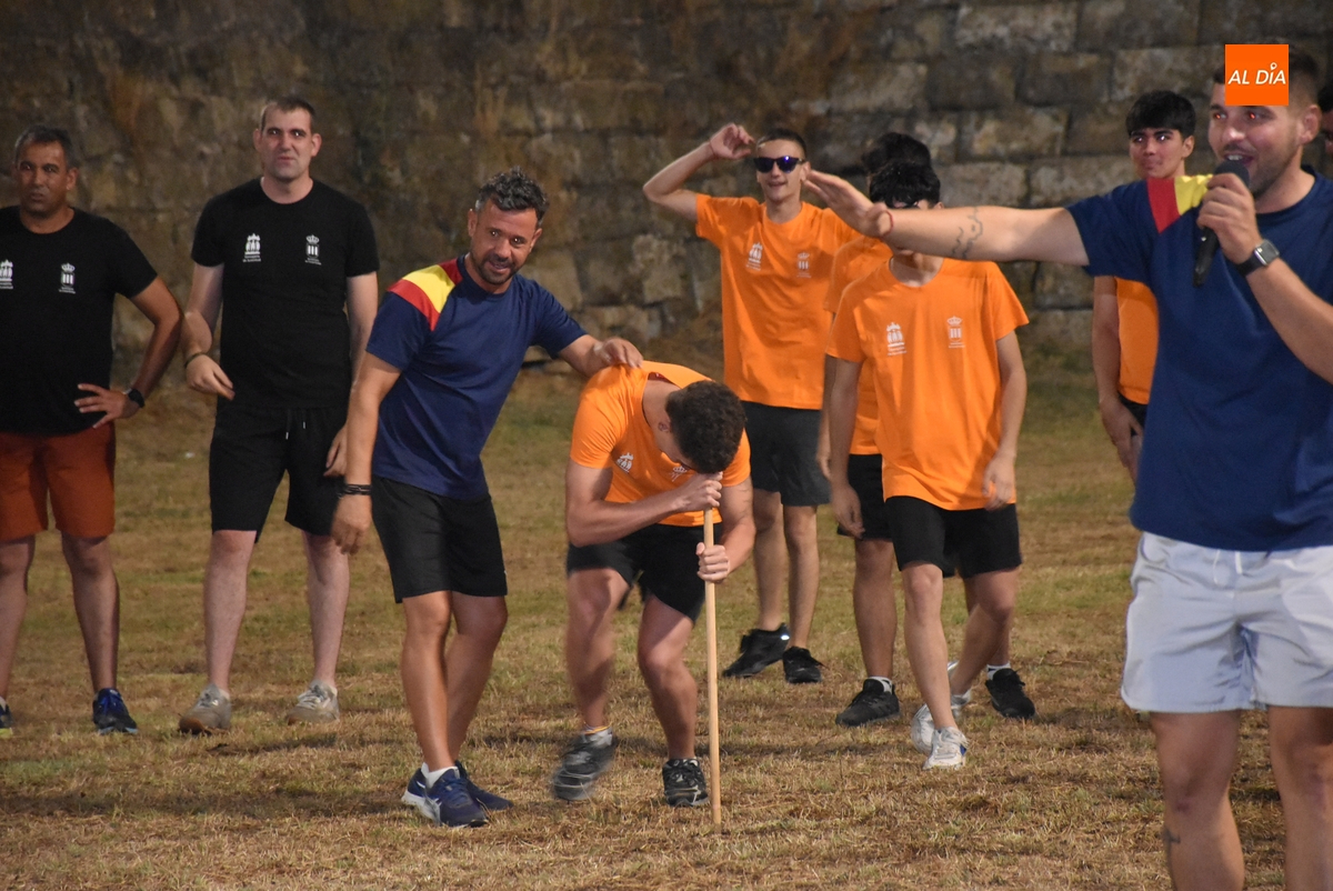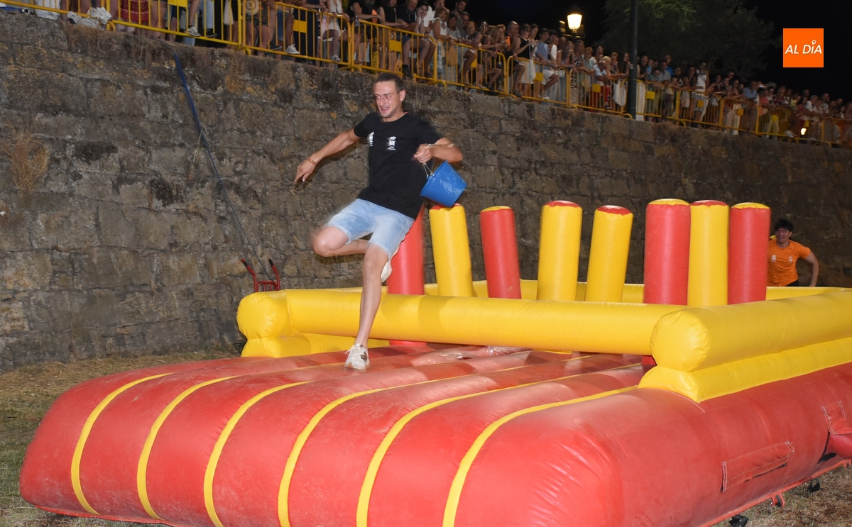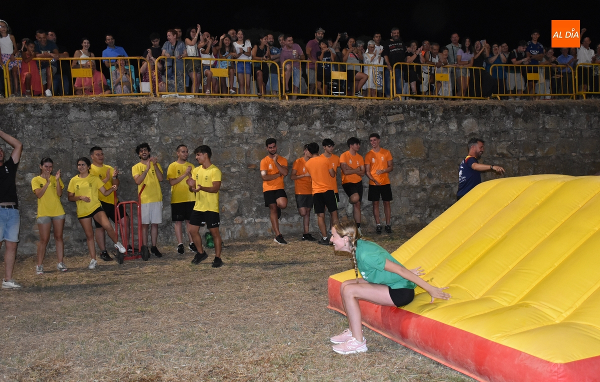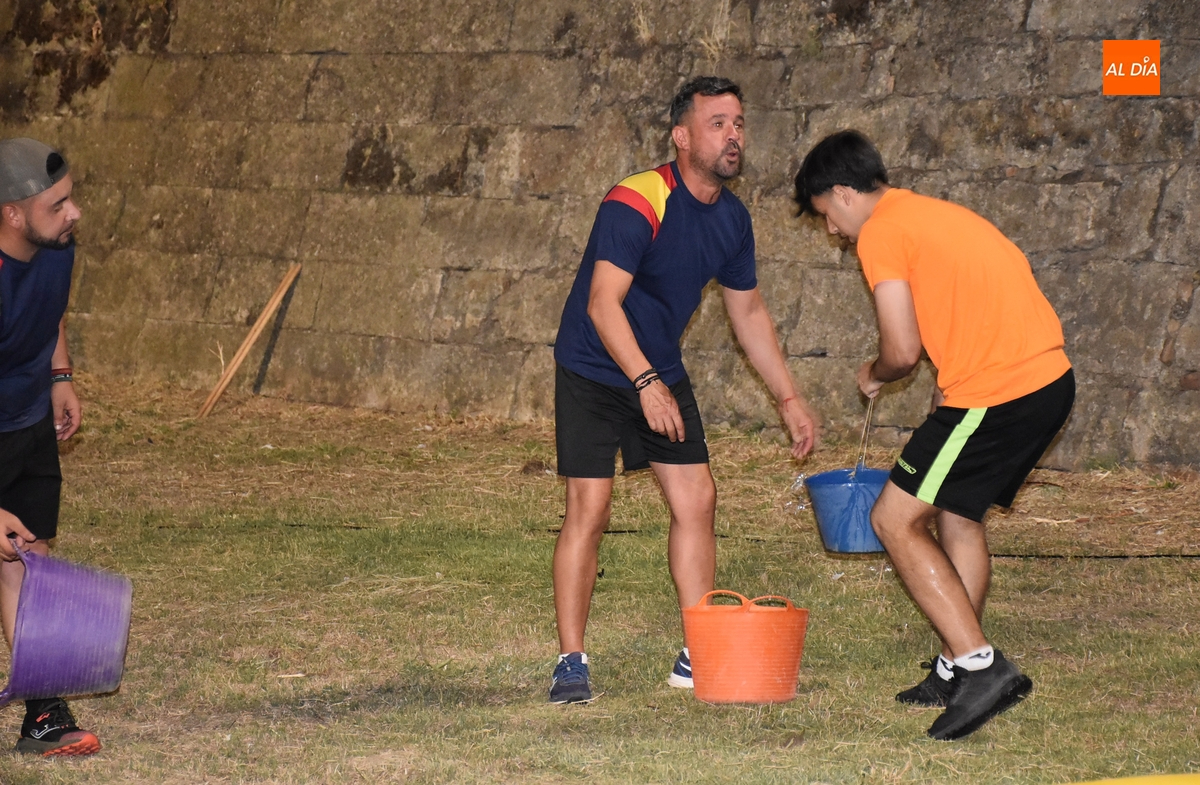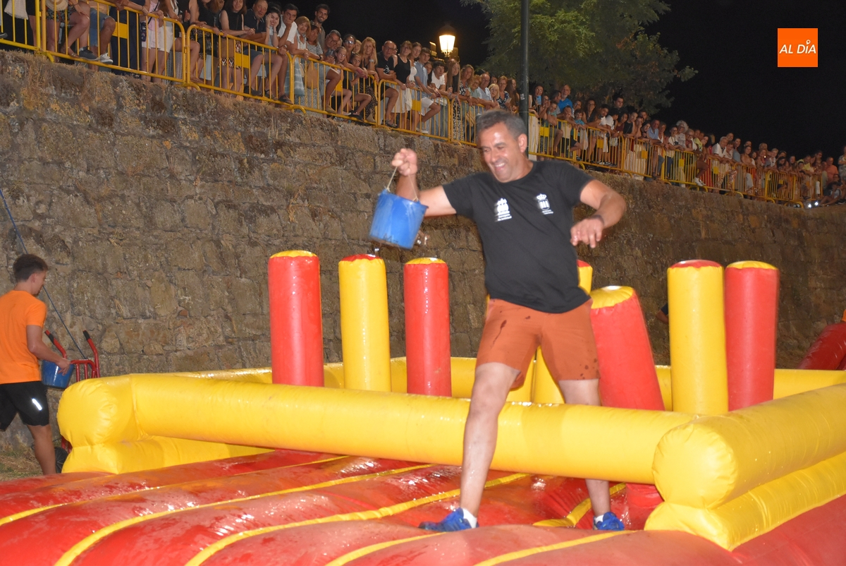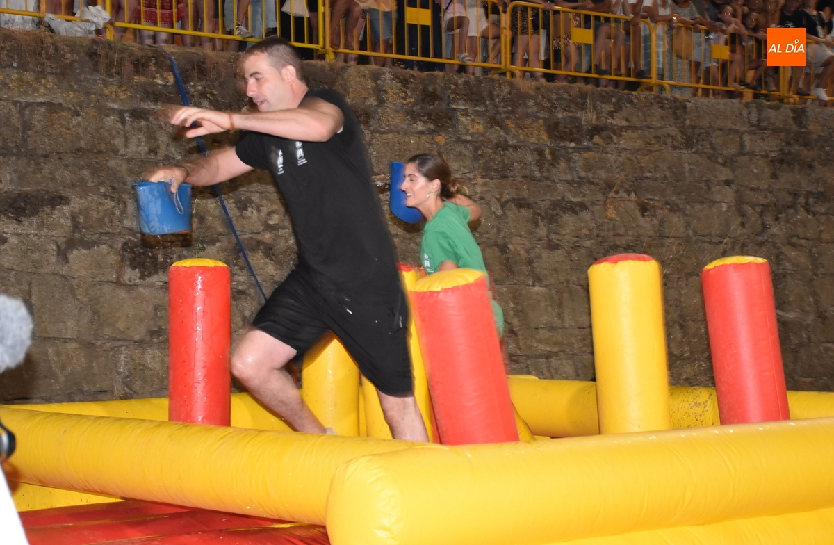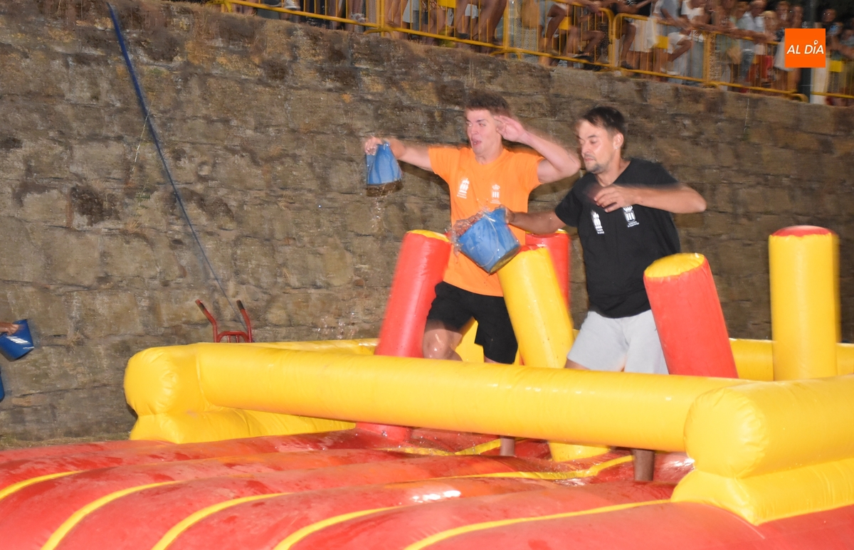 Tras unas palabras de bienvenida de la delegada de Juventud, Ana María Castaño, los equipos hicieron su entrada en el foso desde la Rúa del Sol mientras sonaba la intro de presentación, enfrentándose rápidamente al primer juego, compuesto por tres hinchables que tenían que superar manteniendo la mayor cantidad de agua posible en unos cubos. Tras ello hubo otros dos juegos con hinchables, y otro en el que a ciegas intentaron explotar unos globos colgados de un arco.