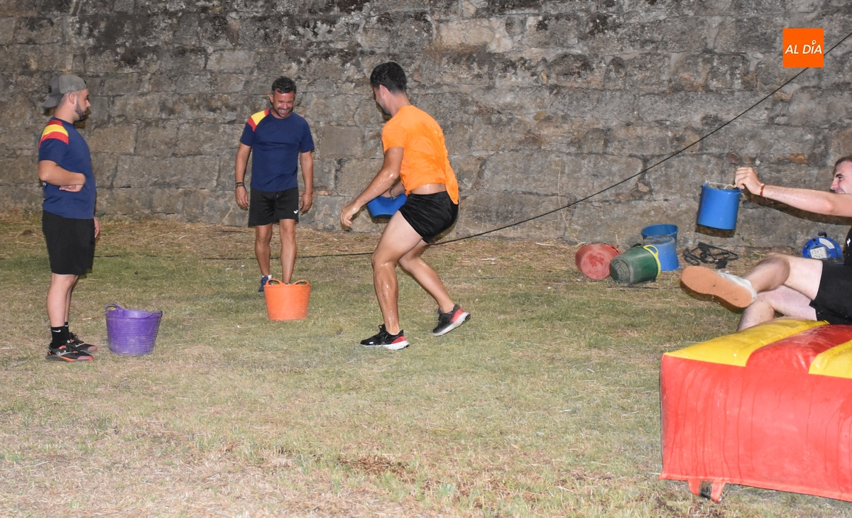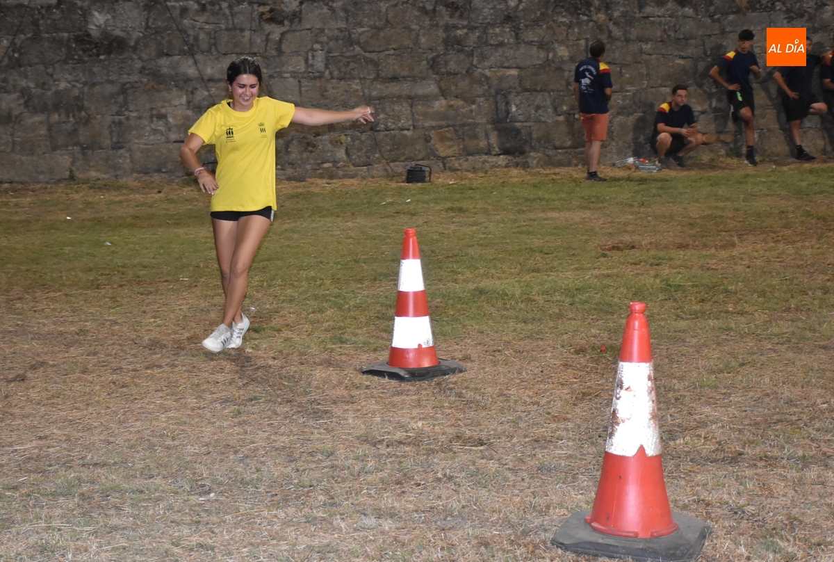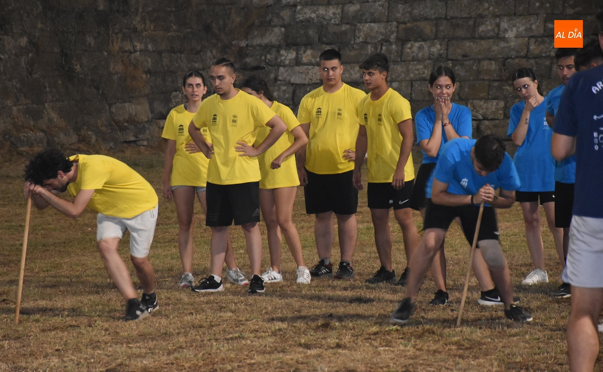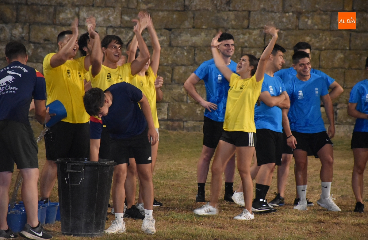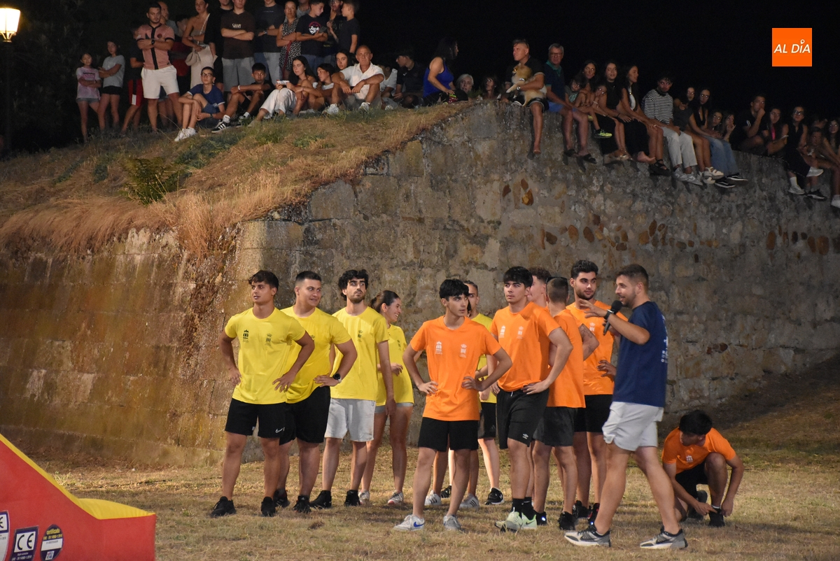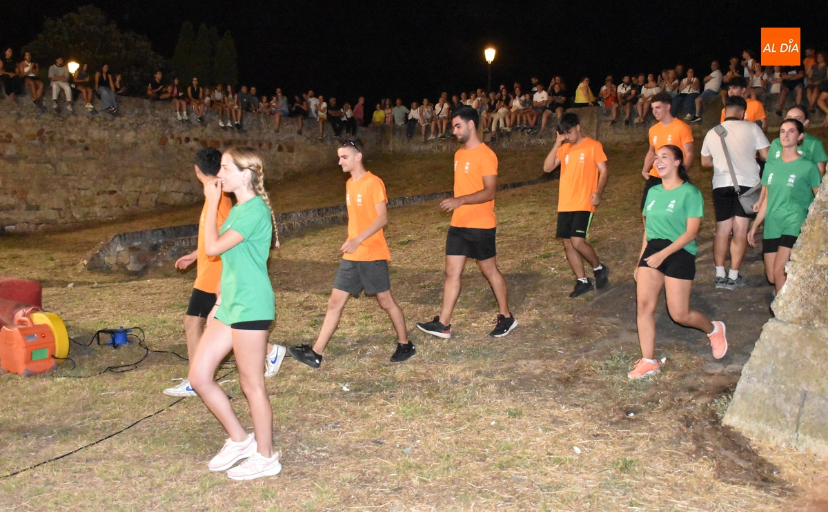 Tras unas palabras de bienvenida de la delegada de Juventud, Ana María Castaño, los equipos hicieron su entrada en el foso desde la Rúa del Sol mientras sonaba la intro de presentación, enfrentándose rápidamente al primer juego, compuesto por tres hinchables que tenían que superar manteniendo la mayor cantidad de agua posible en unos cubos. Tras ello hubo otros dos juegos con hinchables, y otro en el que a ciegas intentaron explotar unos globos colgados de un arco.