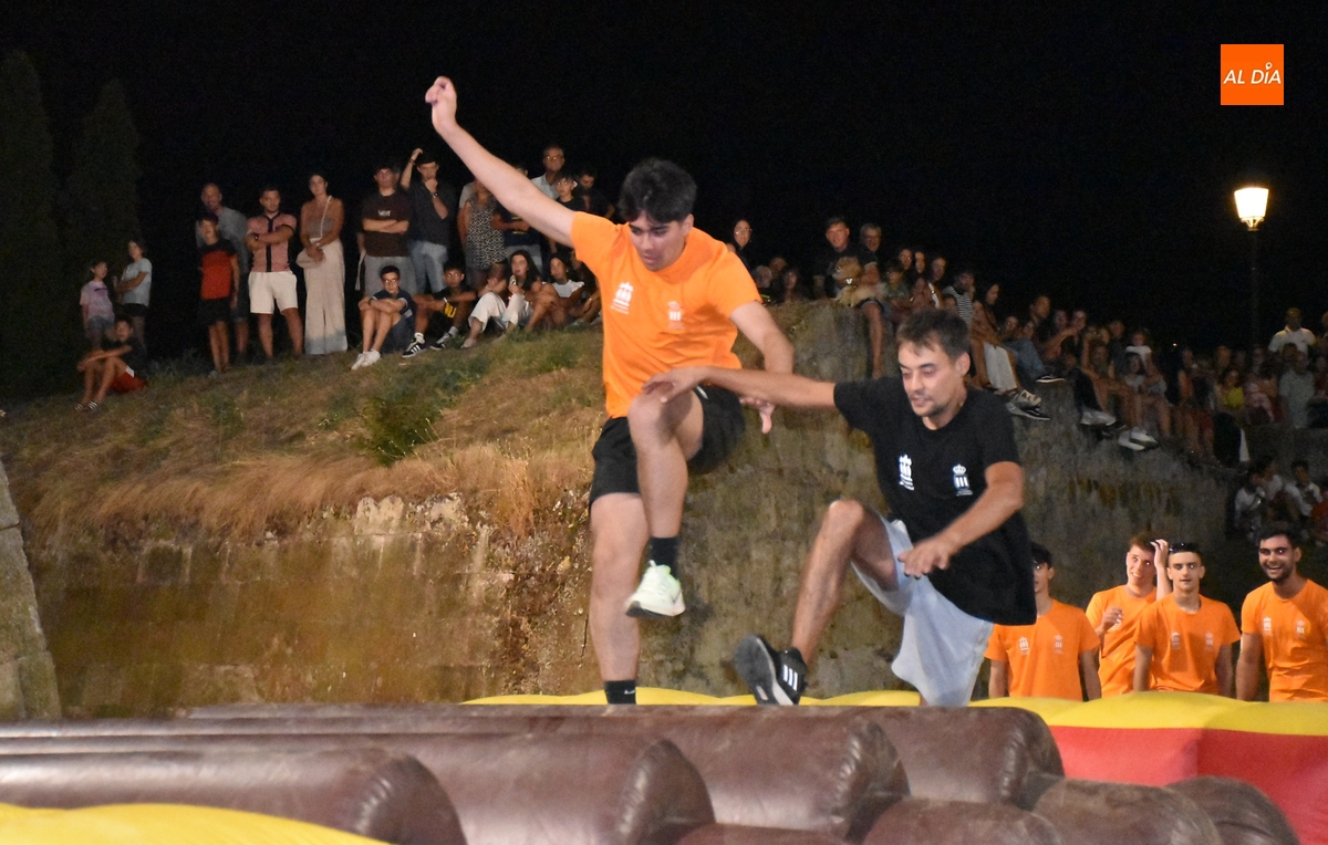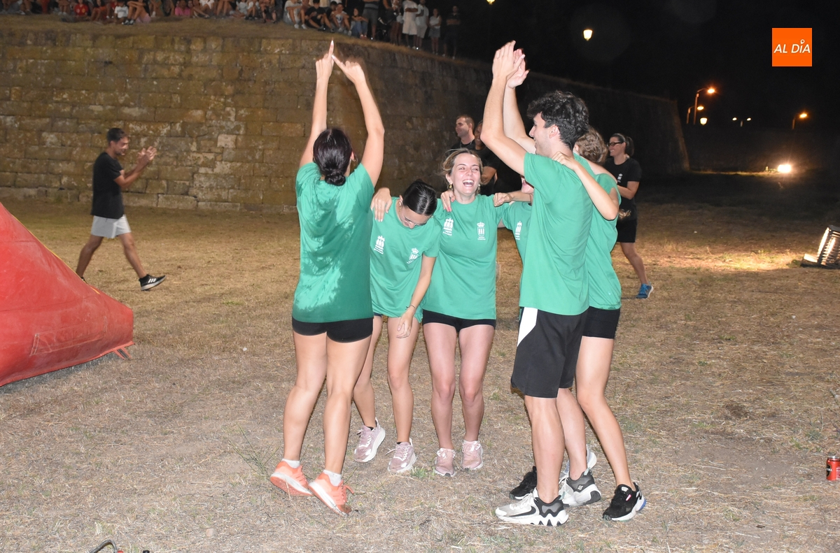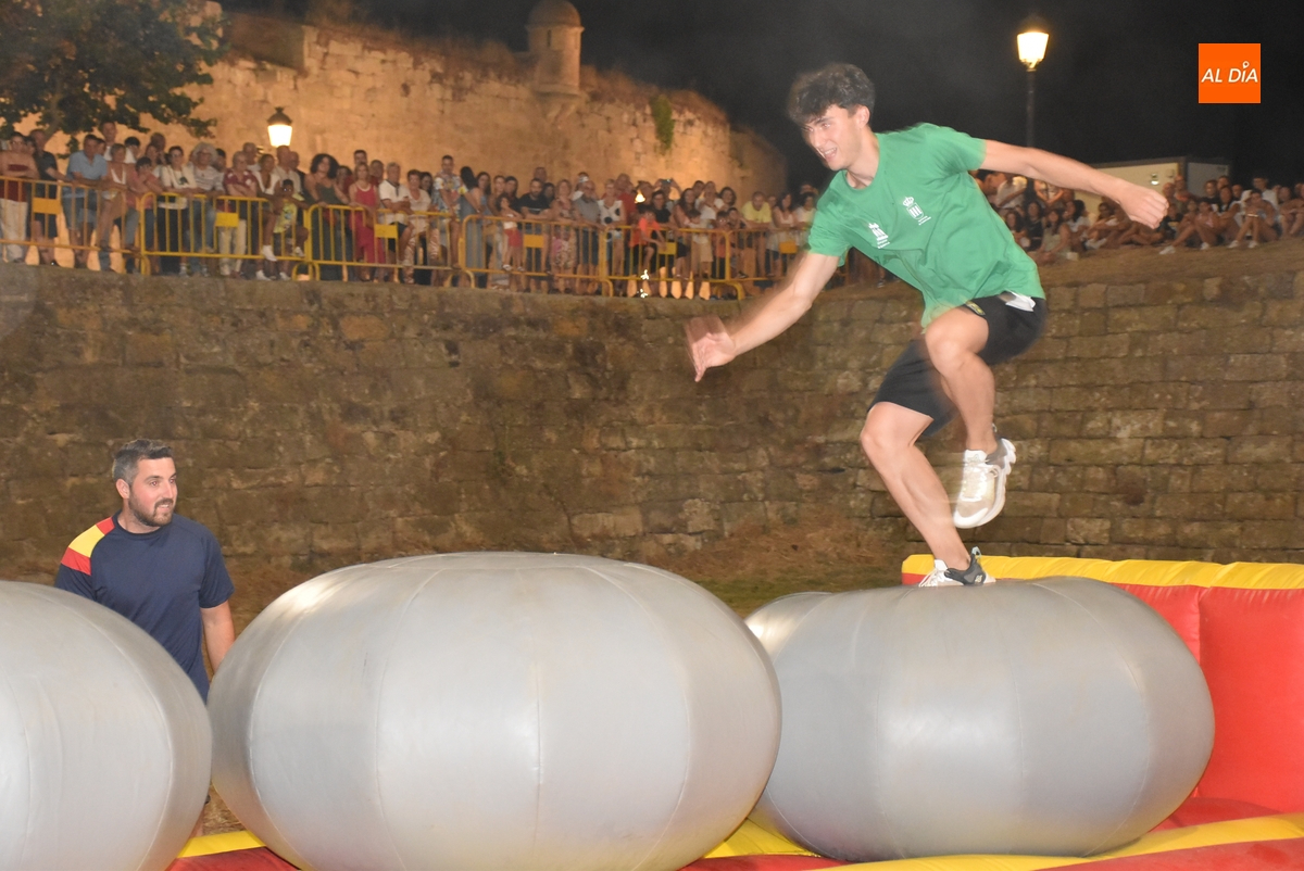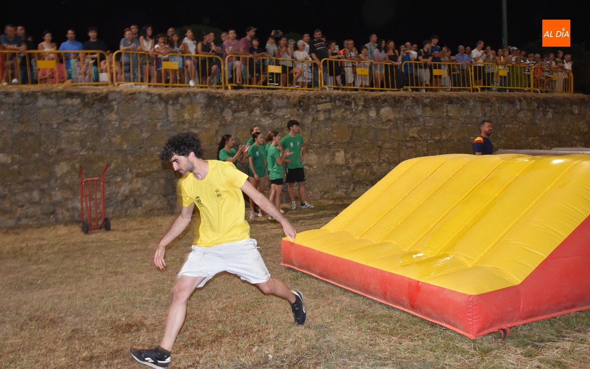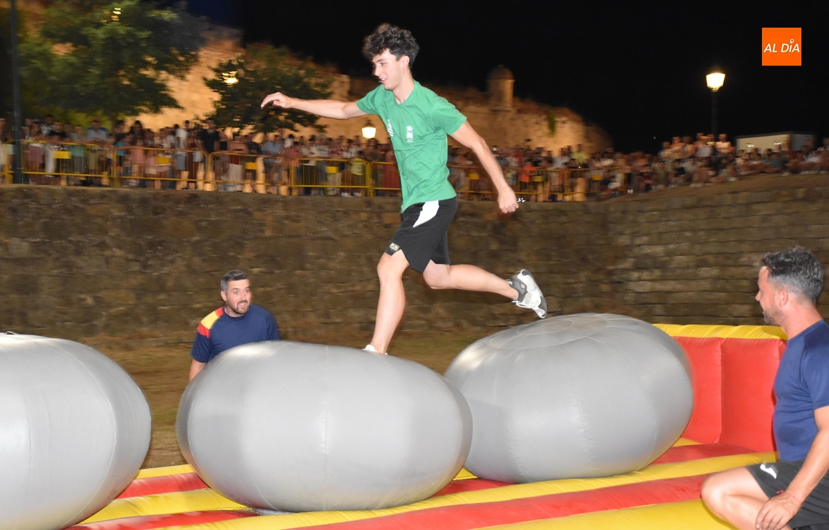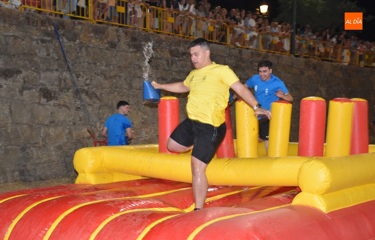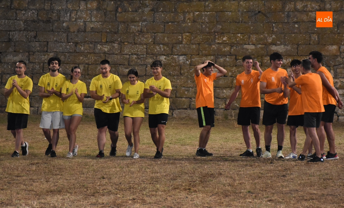 Tras unas palabras de bienvenida de la delegada de Juventud, Ana María Castaño, los equipos hicieron su entrada en el foso desde la Rúa del Sol mientras sonaba la intro de presentación, enfrentándose rápidamente al primer juego, compuesto por tres hinchables que tenían que superar manteniendo la mayor cantidad de agua posible en unos cubos. Tras ello hubo otros dos juegos con hinchables, y otro en el que a ciegas intentaron explotar unos globos colgados de un arco.