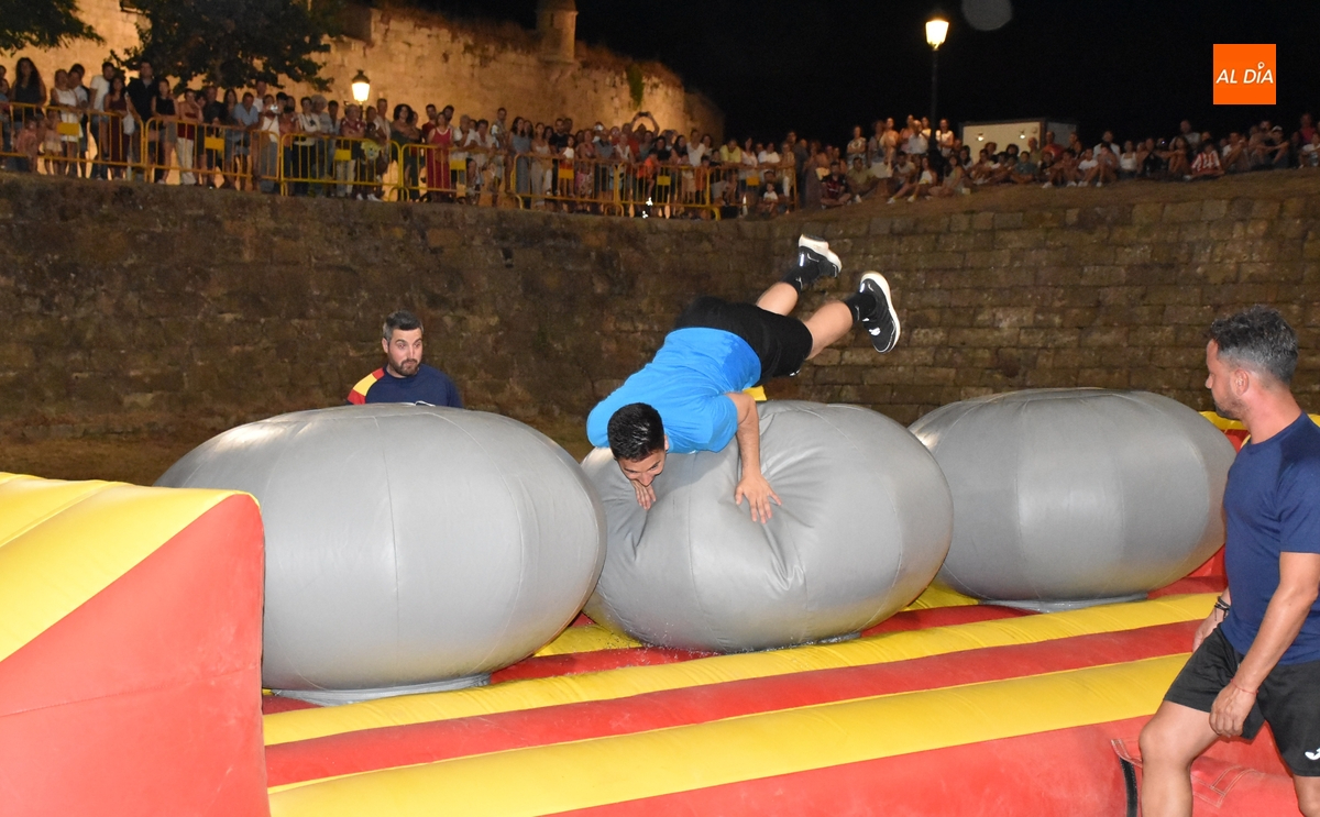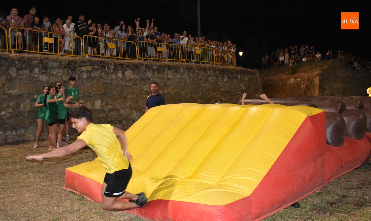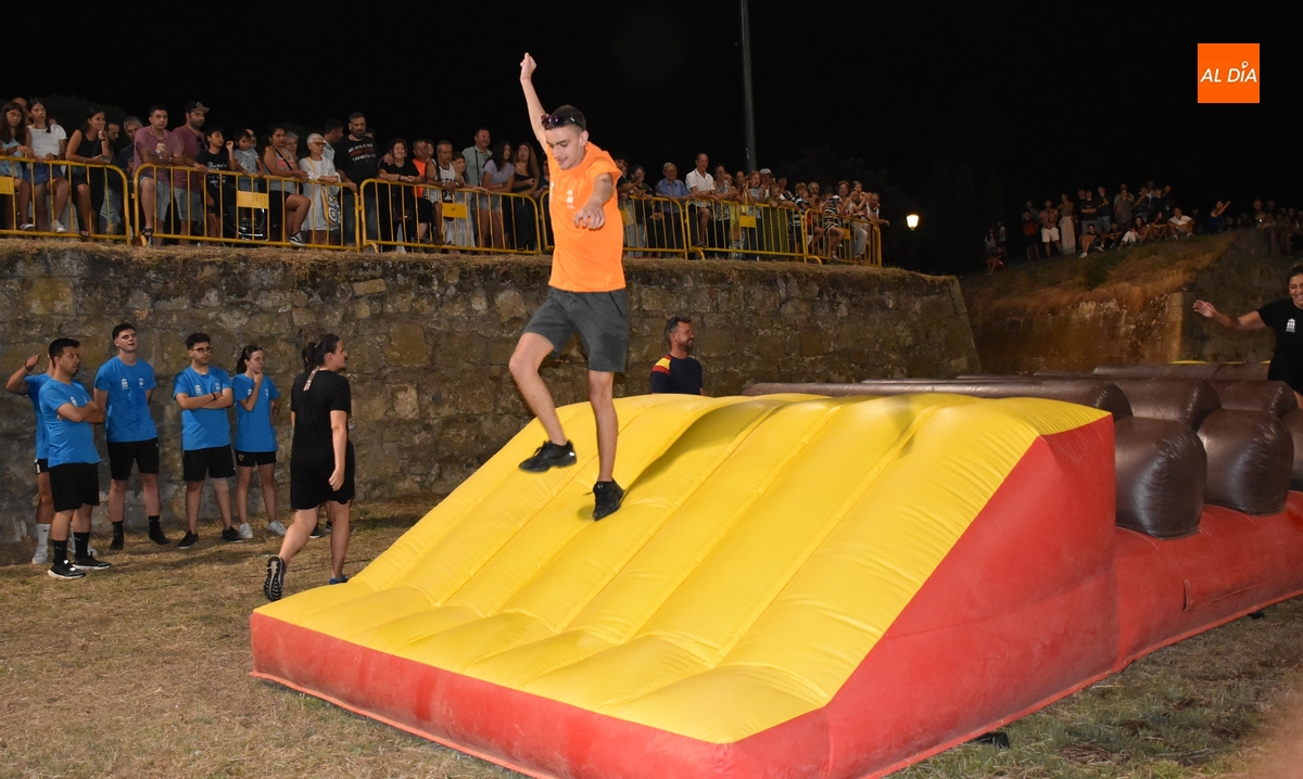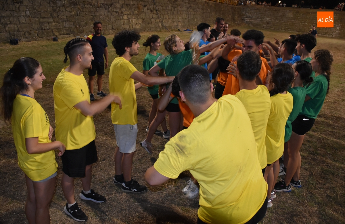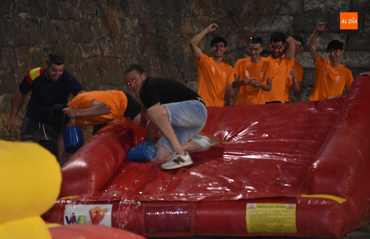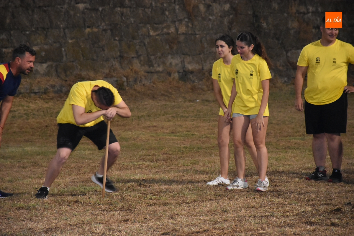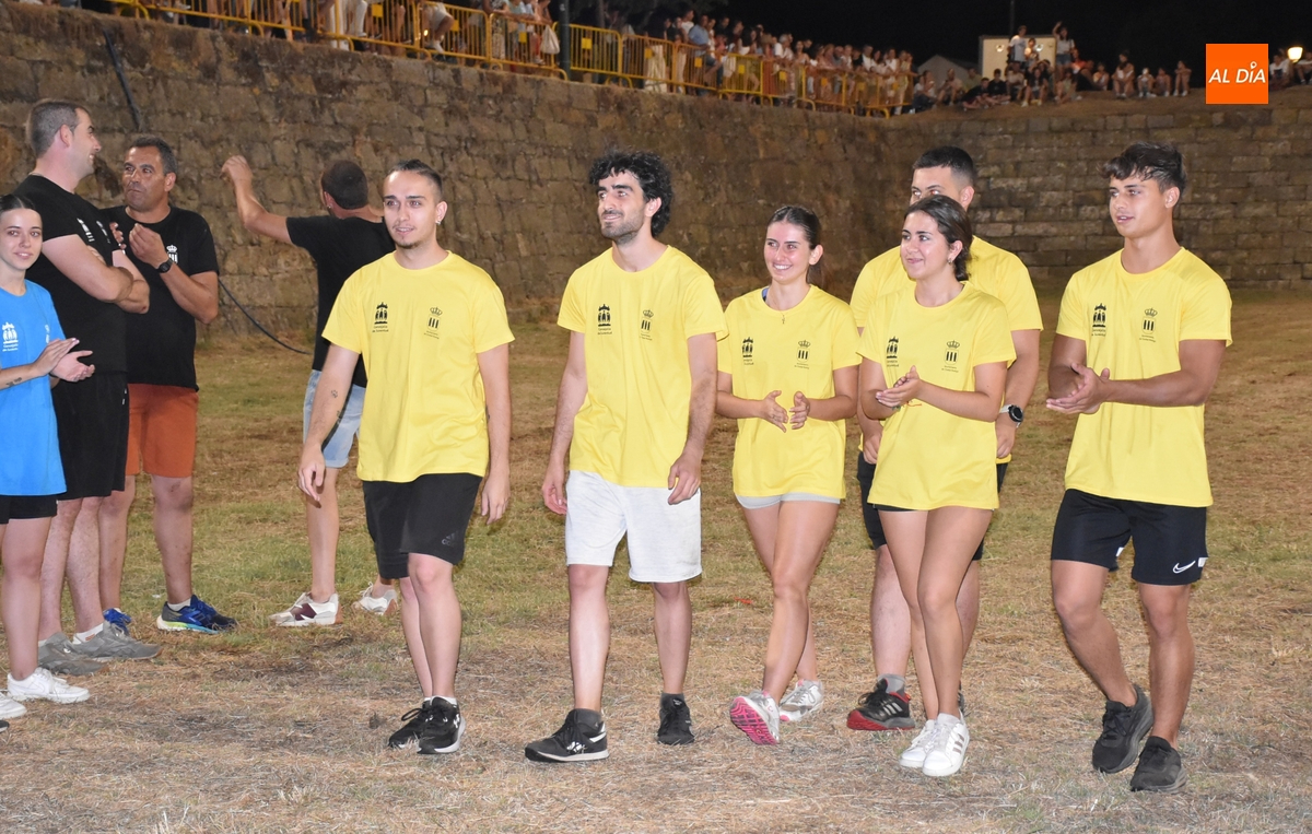 Tras unas palabras de bienvenida de la delegada de Juventud, Ana María Castaño, los equipos hicieron su entrada en el foso desde la Rúa del Sol mientras sonaba la intro de presentación, enfrentándose rápidamente al primer juego, compuesto por tres hinchables que tenían que superar manteniendo la mayor cantidad de agua posible en unos cubos. Tras ello hubo otros dos juegos con hinchables, y otro en el que a ciegas intentaron explotar unos globos colgados de un arco.