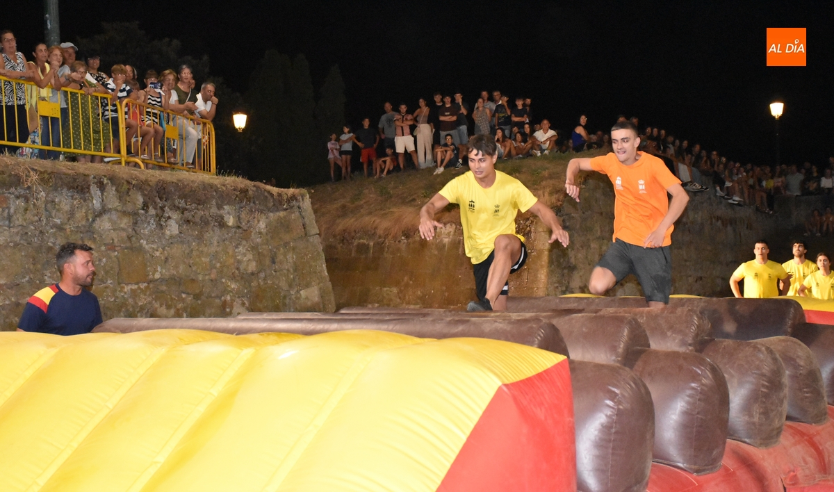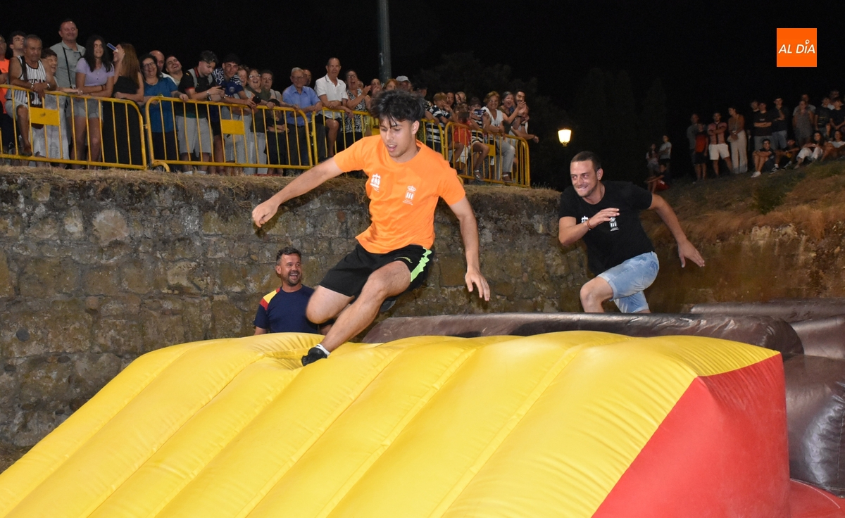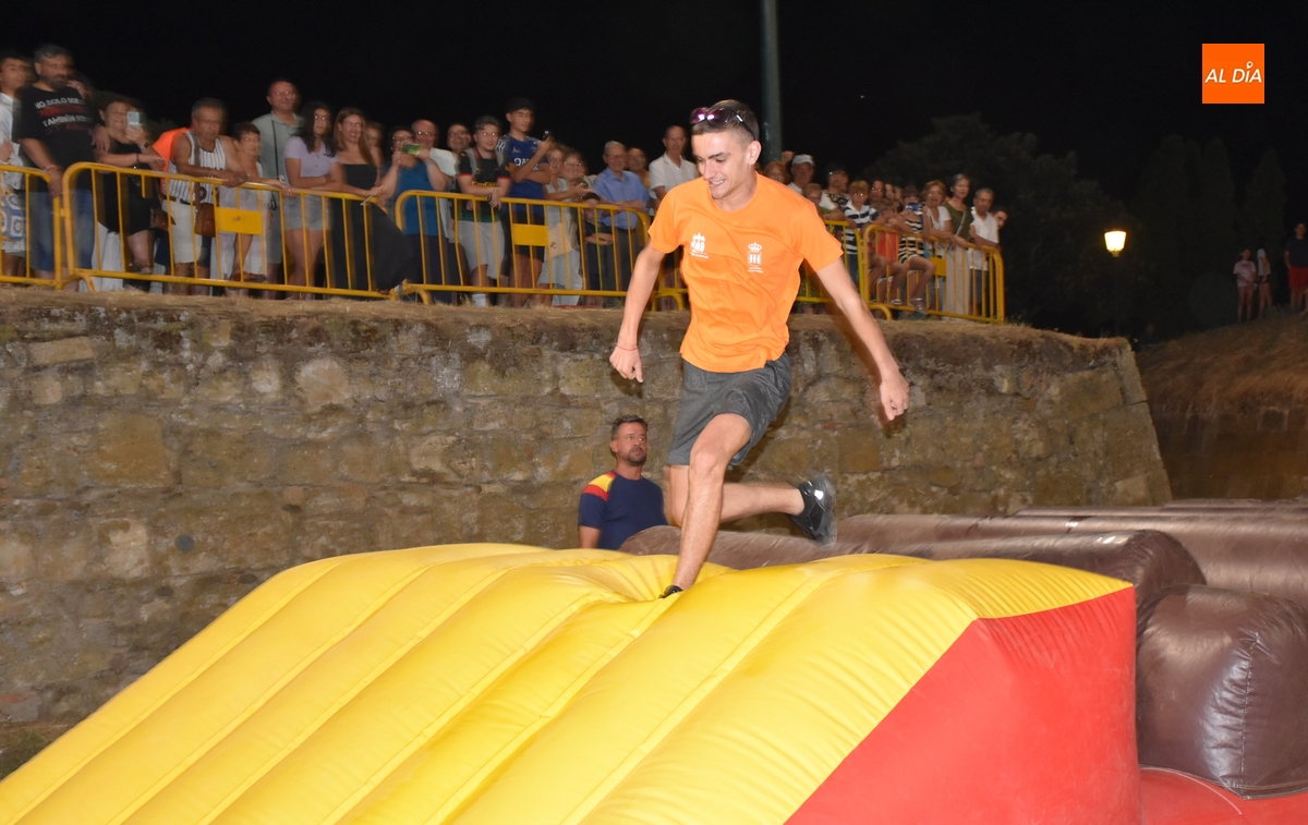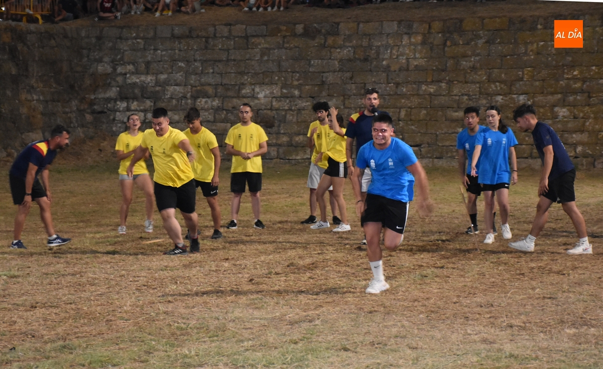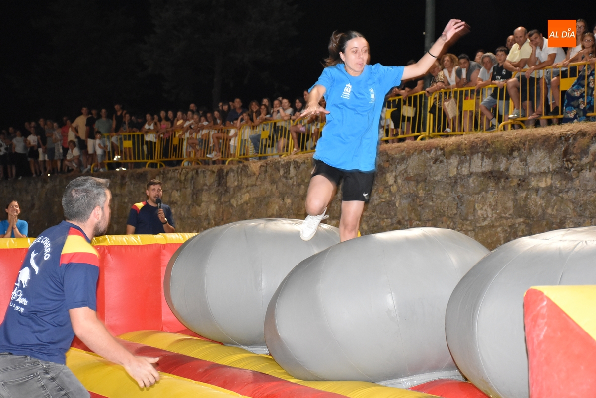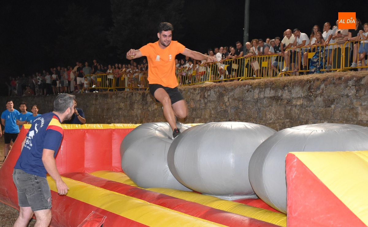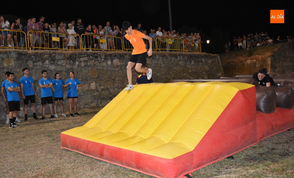 Tras unas palabras de bienvenida de la delegada de Juventud, Ana María Castaño, los equipos hicieron su entrada en el foso desde la Rúa del Sol mientras sonaba la intro de presentación, enfrentándose rápidamente al primer juego, compuesto por tres hinchables que tenían que superar manteniendo la mayor cantidad de agua posible en unos cubos. Tras ello hubo otros dos juegos con hinchables, y otro en el que a ciegas intentaron explotar unos globos colgados de un arco.