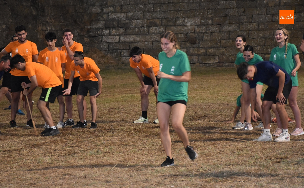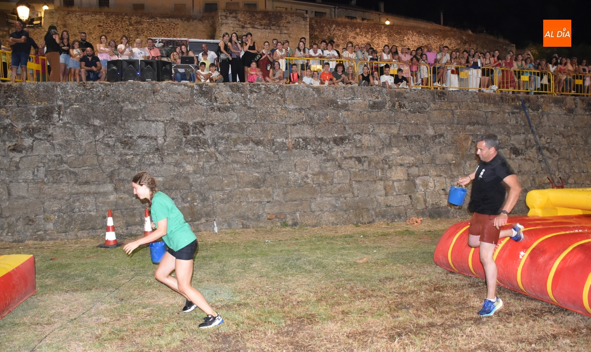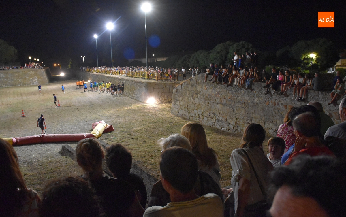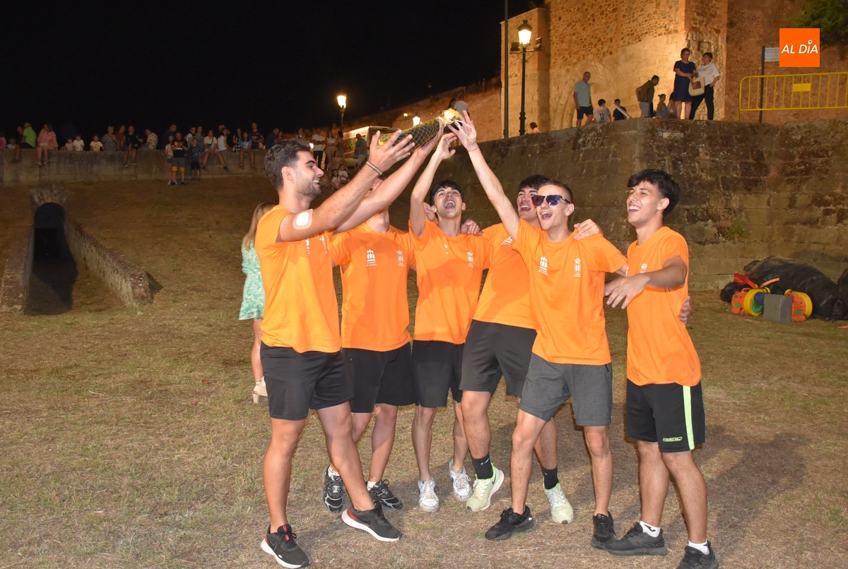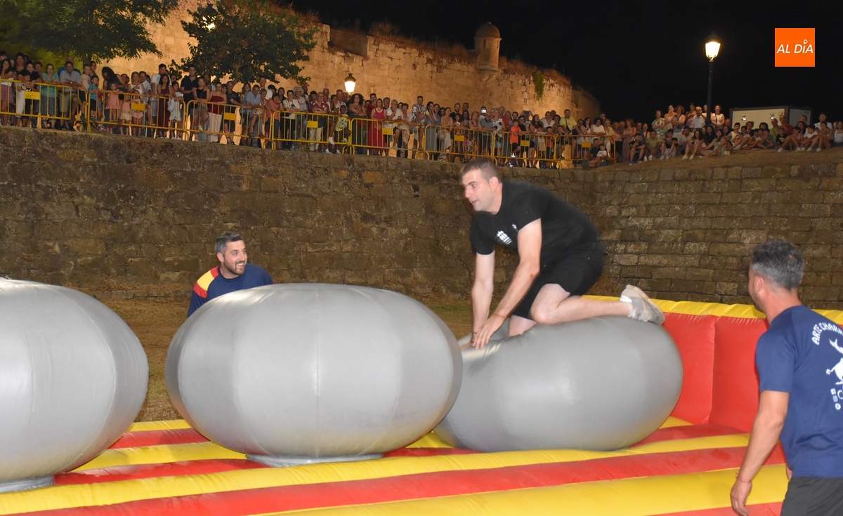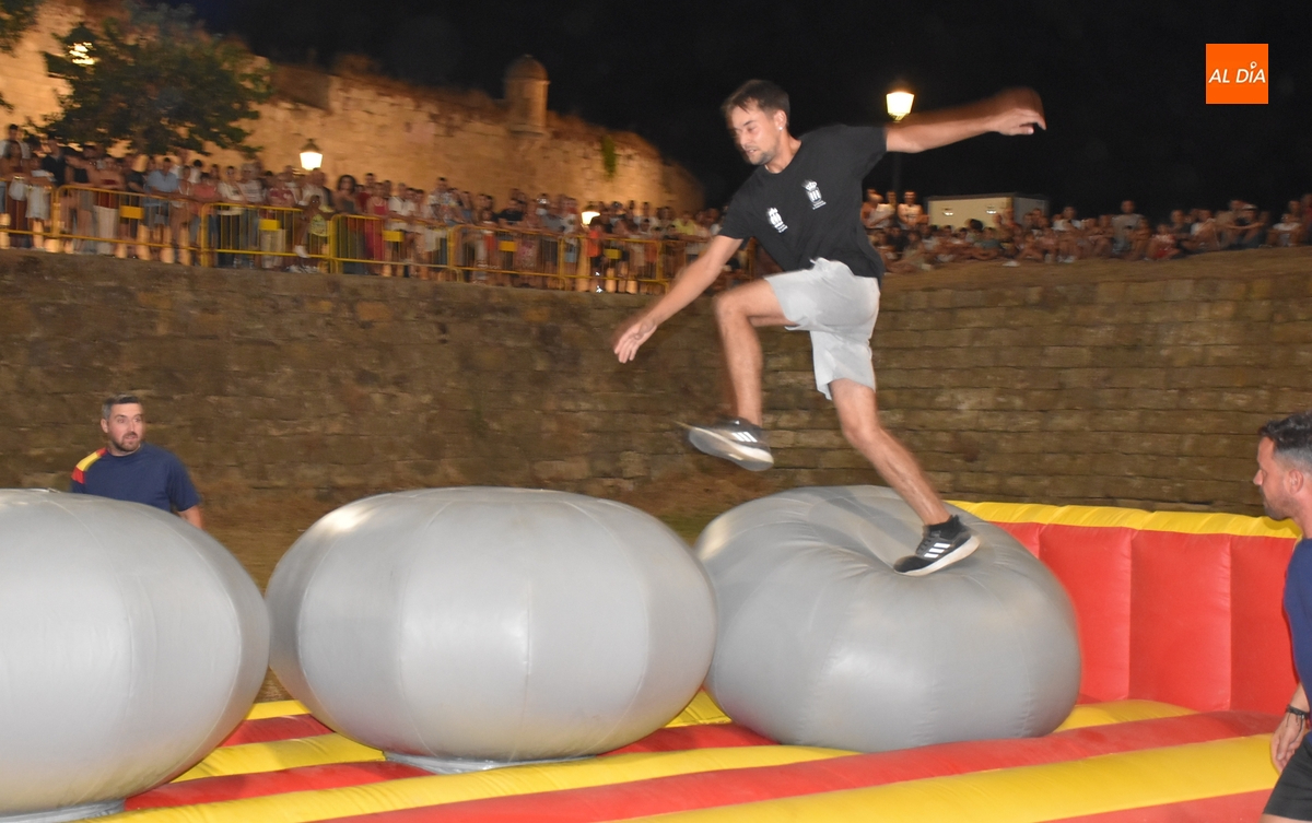 Tras unas palabras de bienvenida de la delegada de Juventud, Ana María Castaño, los equipos hicieron su entrada en el foso desde la Rúa del Sol mientras sonaba la intro de presentación, enfrentándose rápidamente al primer juego, compuesto por tres hinchables que tenían que superar manteniendo la mayor cantidad de agua posible en unos cubos. Tras ello hubo otros dos juegos con hinchables, y otro en el que a ciegas intentaron explotar unos globos colgados de un arco.