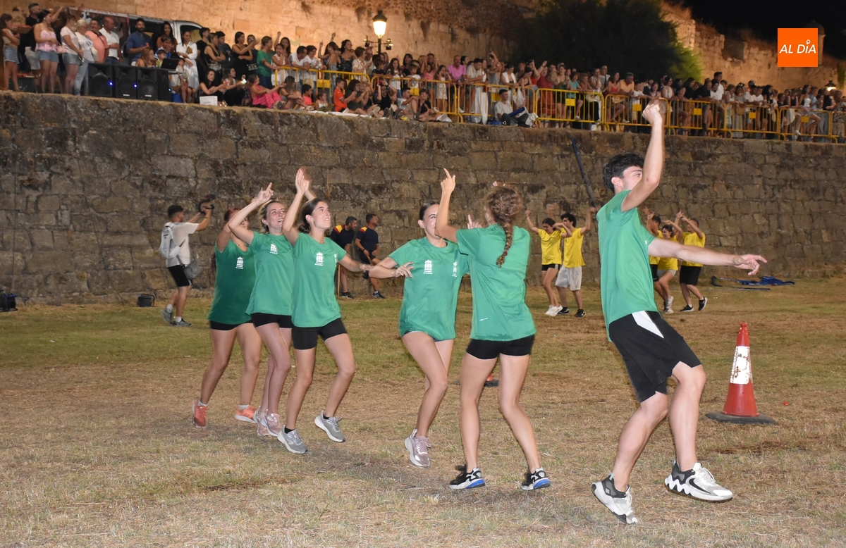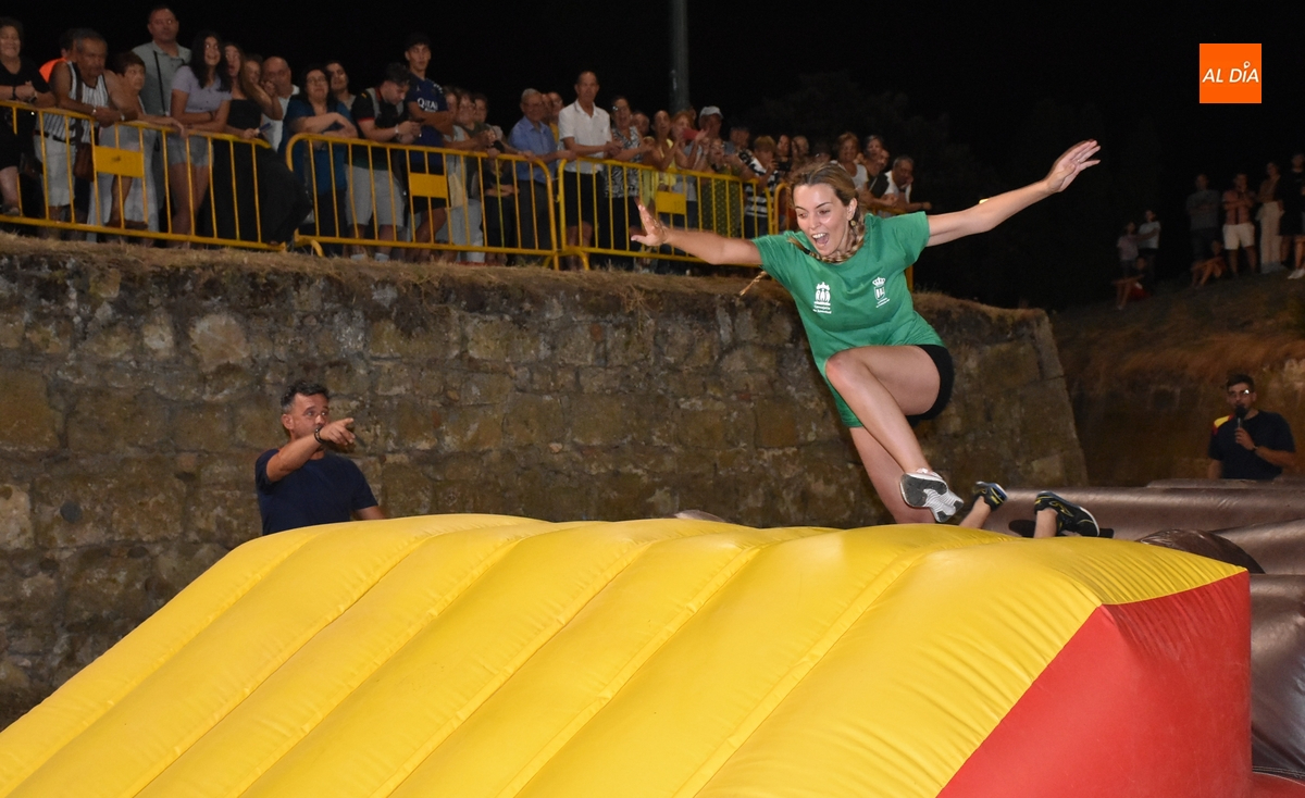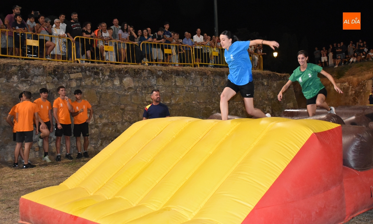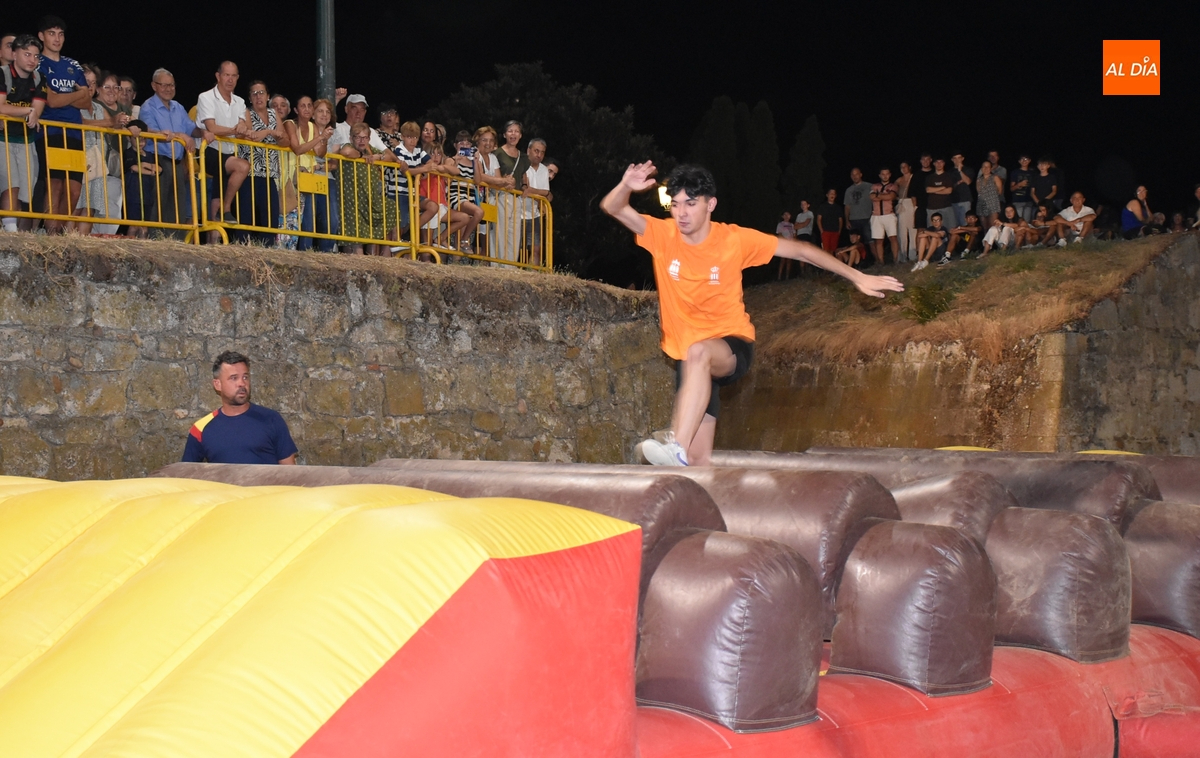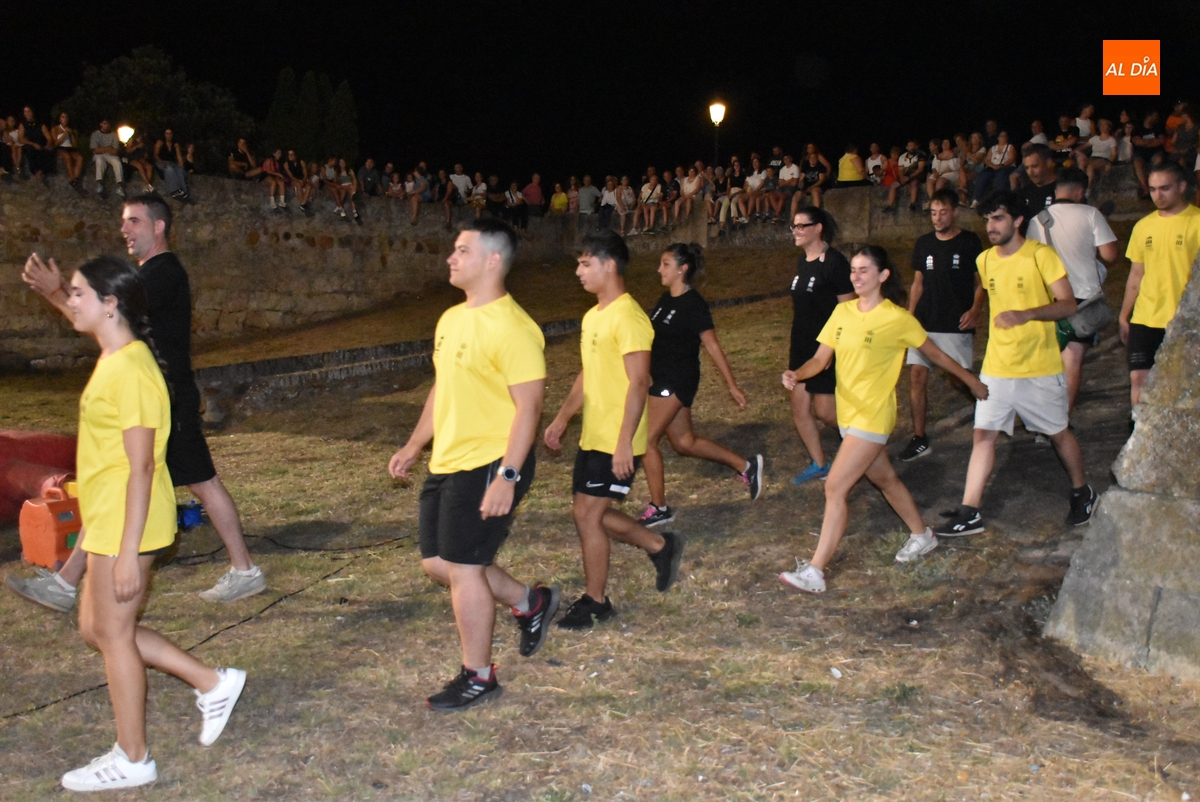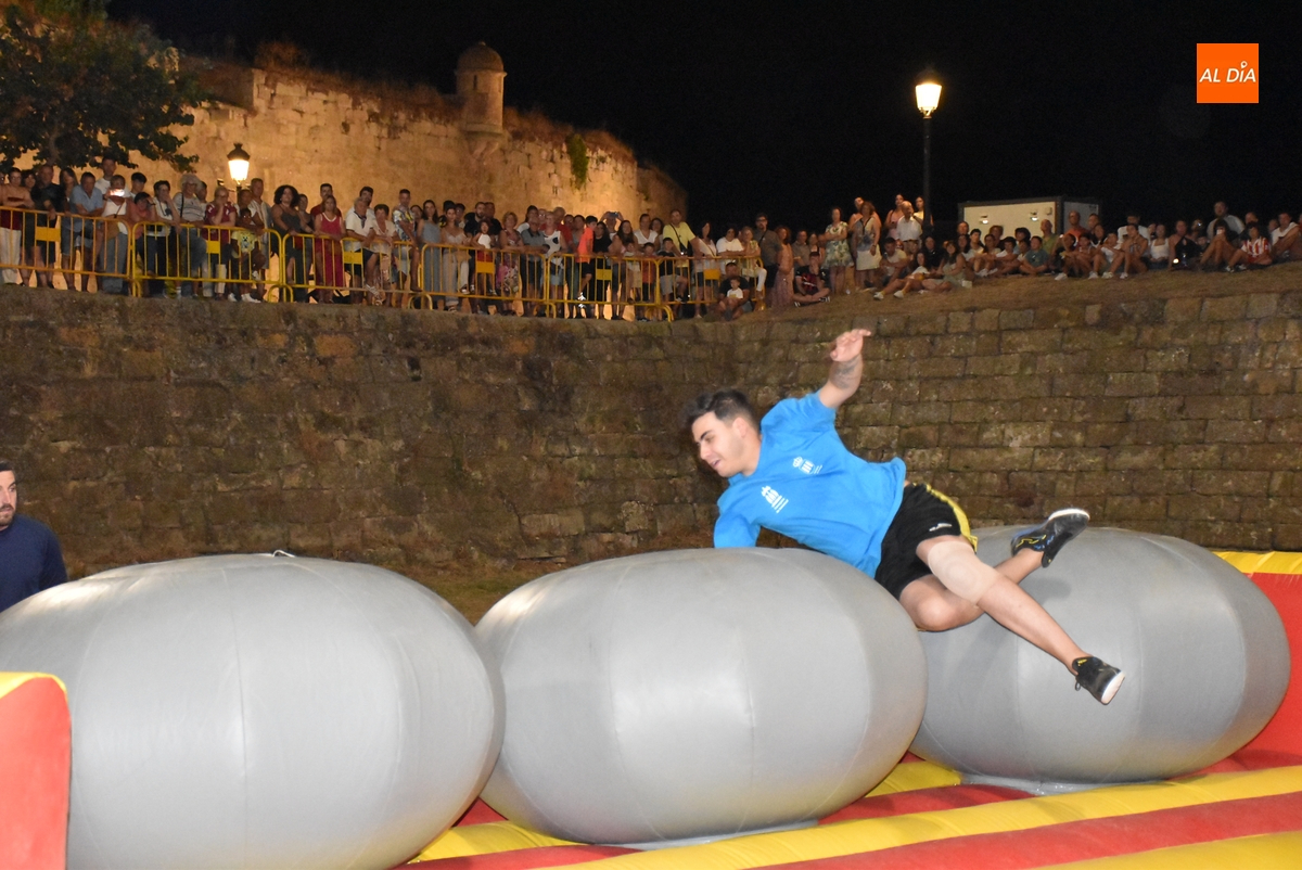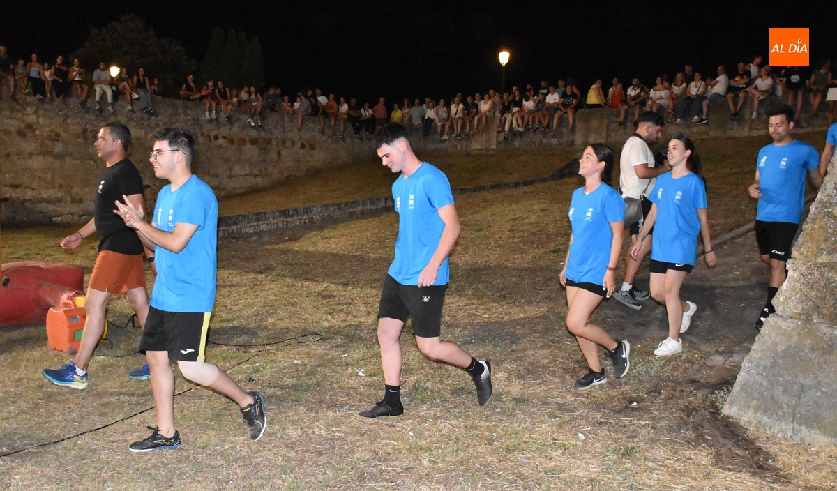 Tras unas palabras de bienvenida de la delegada de Juventud, Ana María Castaño, los equipos hicieron su entrada en el foso desde la Rúa del Sol mientras sonaba la intro de presentación, enfrentándose rápidamente al primer juego, compuesto por tres hinchables que tenían que superar manteniendo la mayor cantidad de agua posible en unos cubos. Tras ello hubo otros dos juegos con hinchables, y otro en el que a ciegas intentaron explotar unos globos colgados de un arco.